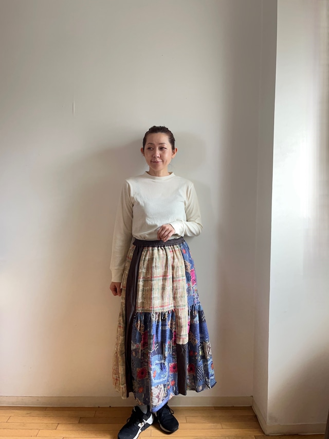 このパッチワークスカートは、個性的なデザインと快適な着心地を兼ね備えた、魅力あふれるアイテムです! このスカートは、様々なカラーと柄のパッチワーク生地を使用しており、一枚でコーディネートの主役になります。ユニークなデザインが、あなたの個性を引き立て、どんなシーンでもオシャレに決まるのが特徴です。また、軽やかで肌触りの良い素材が、動きやすく、毎日のスタイルをより楽しくしてくれます。 ウエスト部分はゴム仕様で、フィット感も調整しやすく、リラックスした着用感を実現。カジュアルからフォーマルまで、合わせるトップスや靴によって様々なスタイルにアレンジできる万能アイテムです。 ### 素材とサイズ 本体: ポリエステル65% 綿35% 別地①:綿100% 別地②綿100% - サイズ詳細 着丈:84cm ウエスト幅:66〜96cm(総ゴム、ヒモ付き) 腰回り:116cm 返品は不良のあった場合お受けしています。間違えて購入してしまった、思っていたのと違った等のお客様のご都合での返品はお受けしていません。 ※全て商品到着から5日以内のご連絡、未使用に限ります。