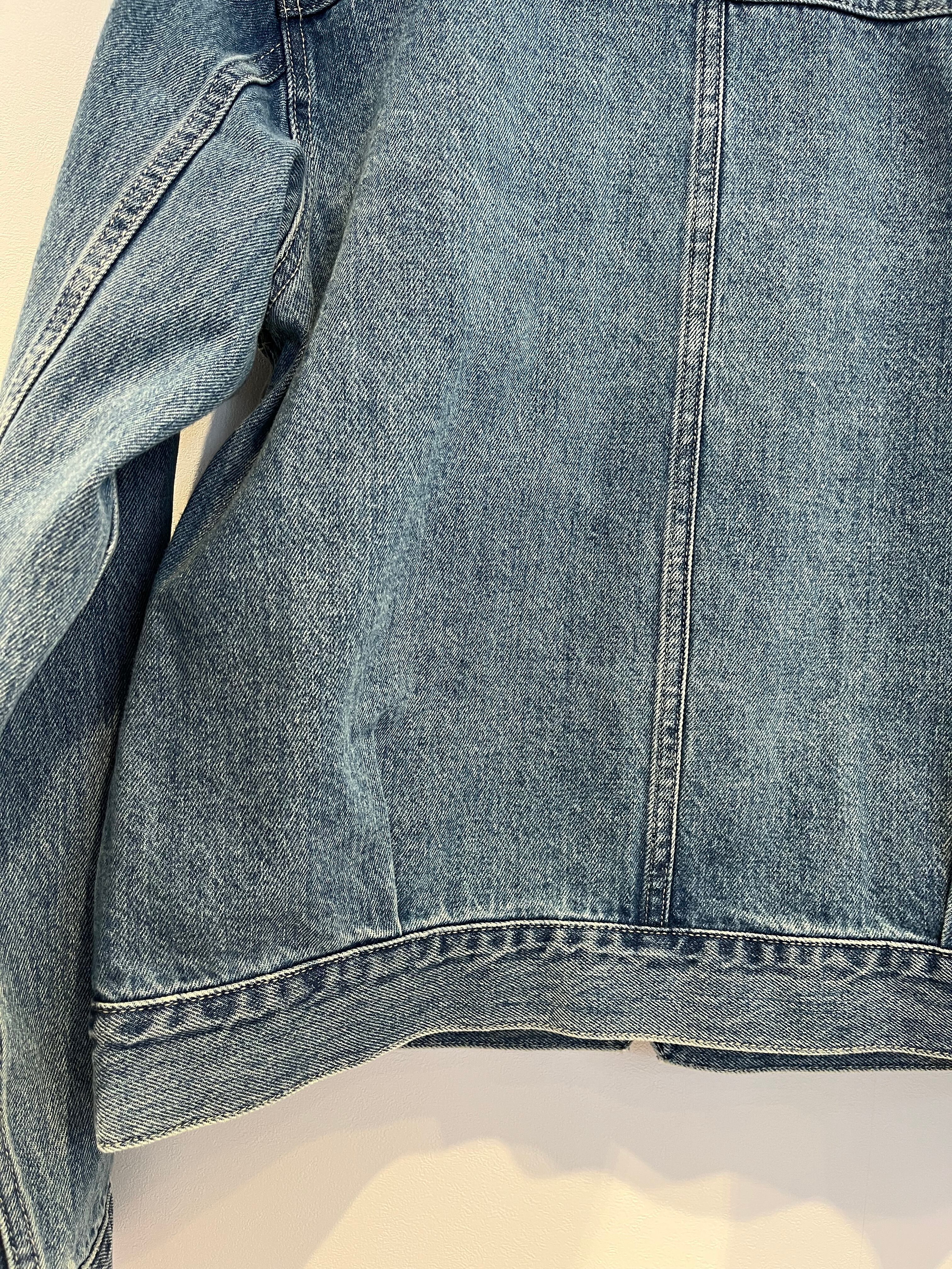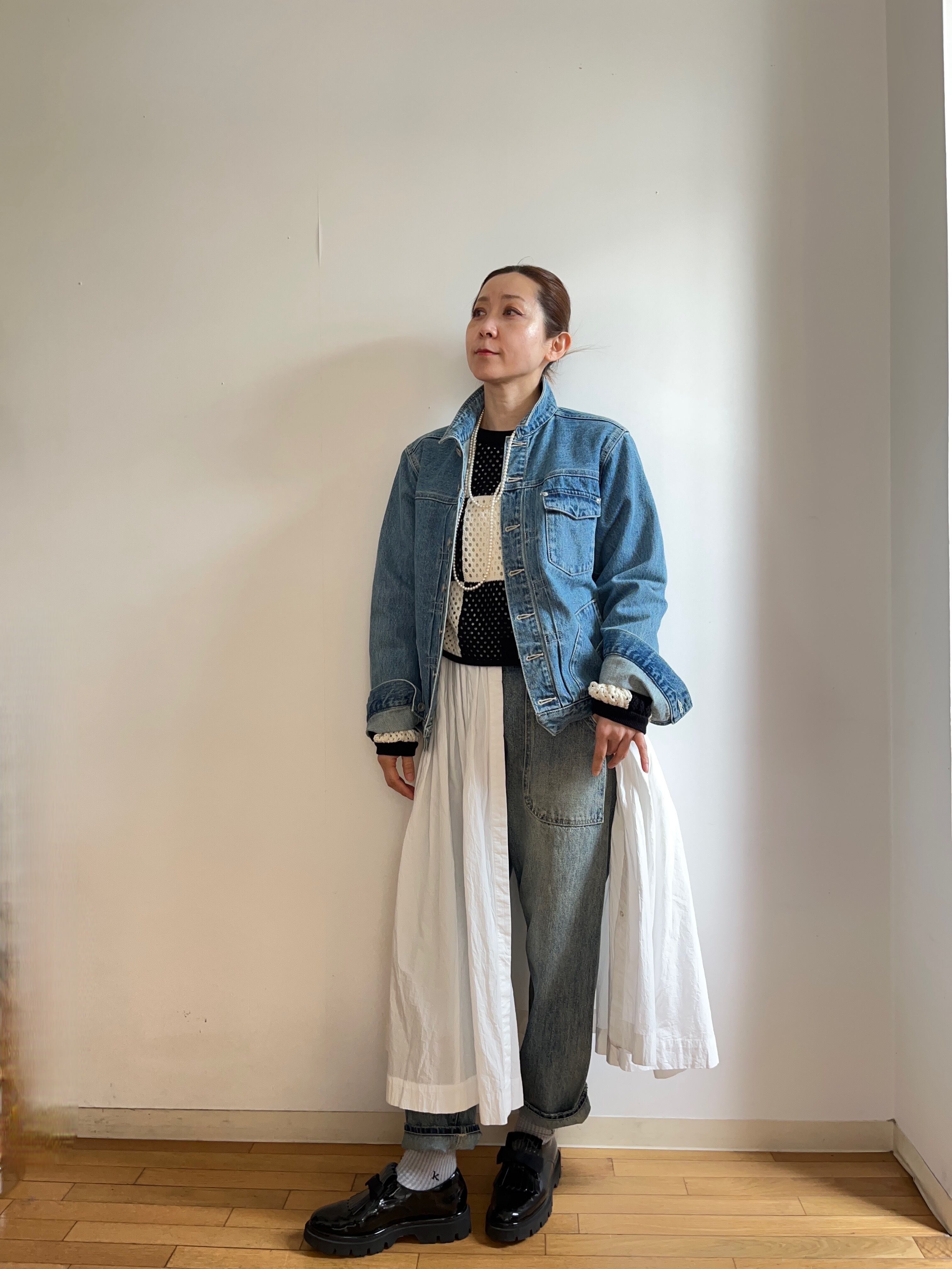 このジャケットは、程よい厚みの12ozデニムを使用しており、長く愛用できる耐久性があります。どんなコーディネートにも合わせやすいアイテムです。
