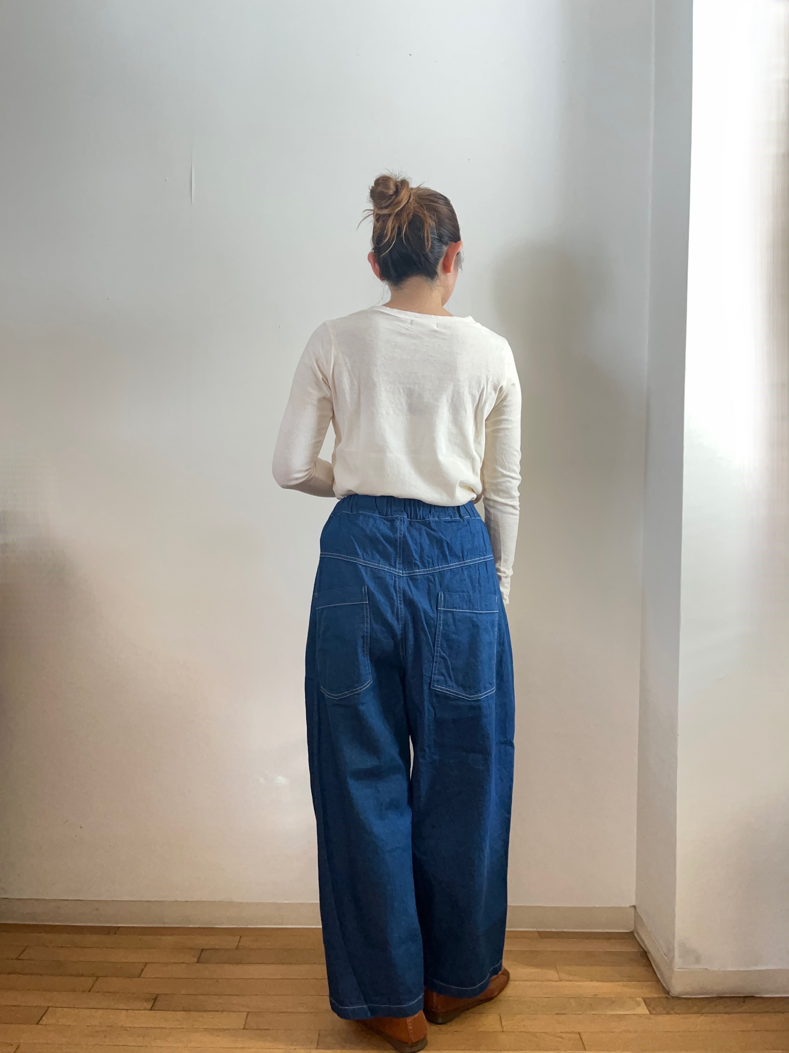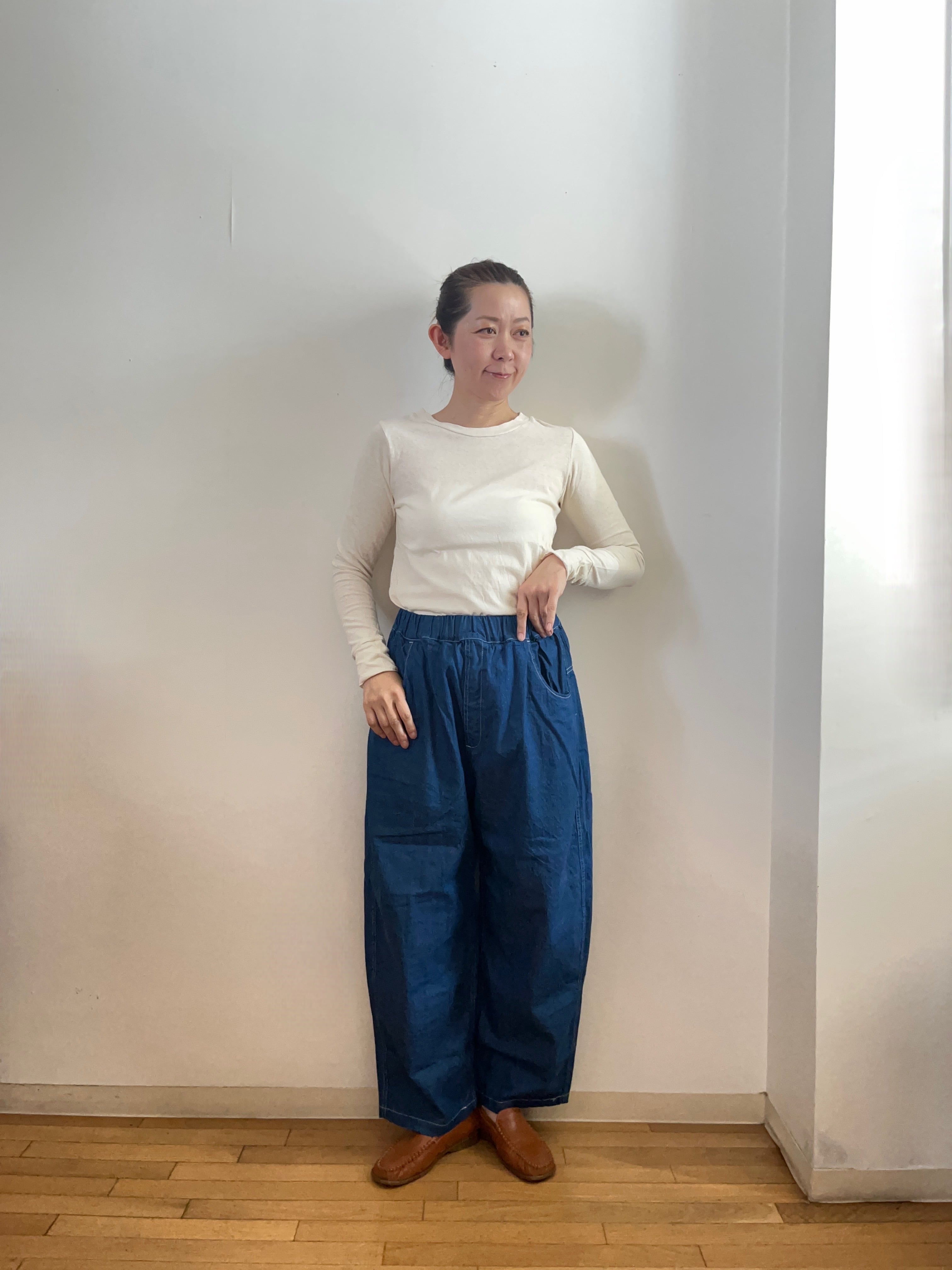 このデニムは、Tシャツやニットと合わせるだけで、シンプルでありながらもおしゃれなスタイルが完成します。特に、トップスをインしてもきれいなラインが引き立つので、コーディネートの幅がどんどん広がるアイテムです!どんなシーンにもフィットするデニムをぜひお楽しみください!