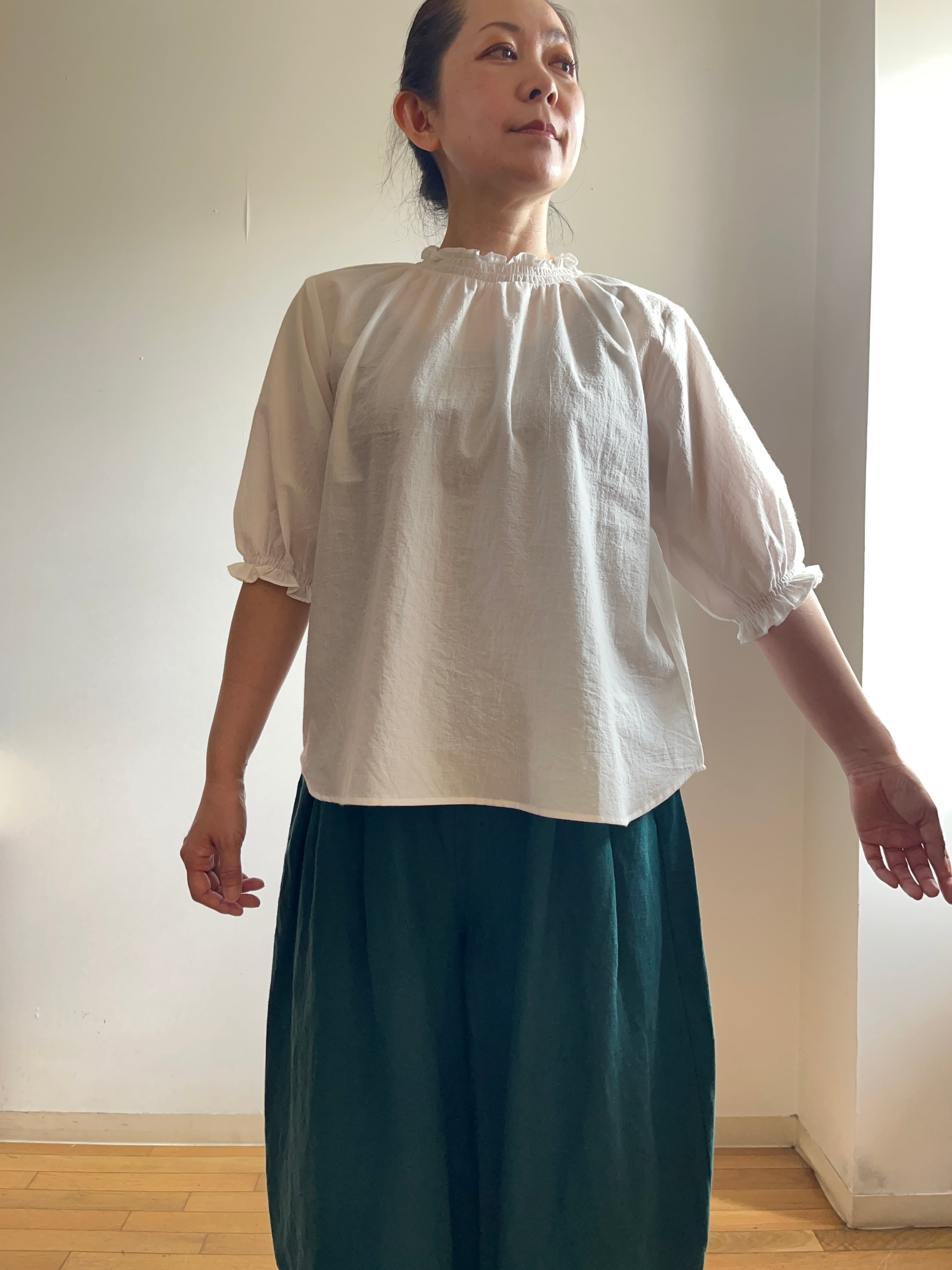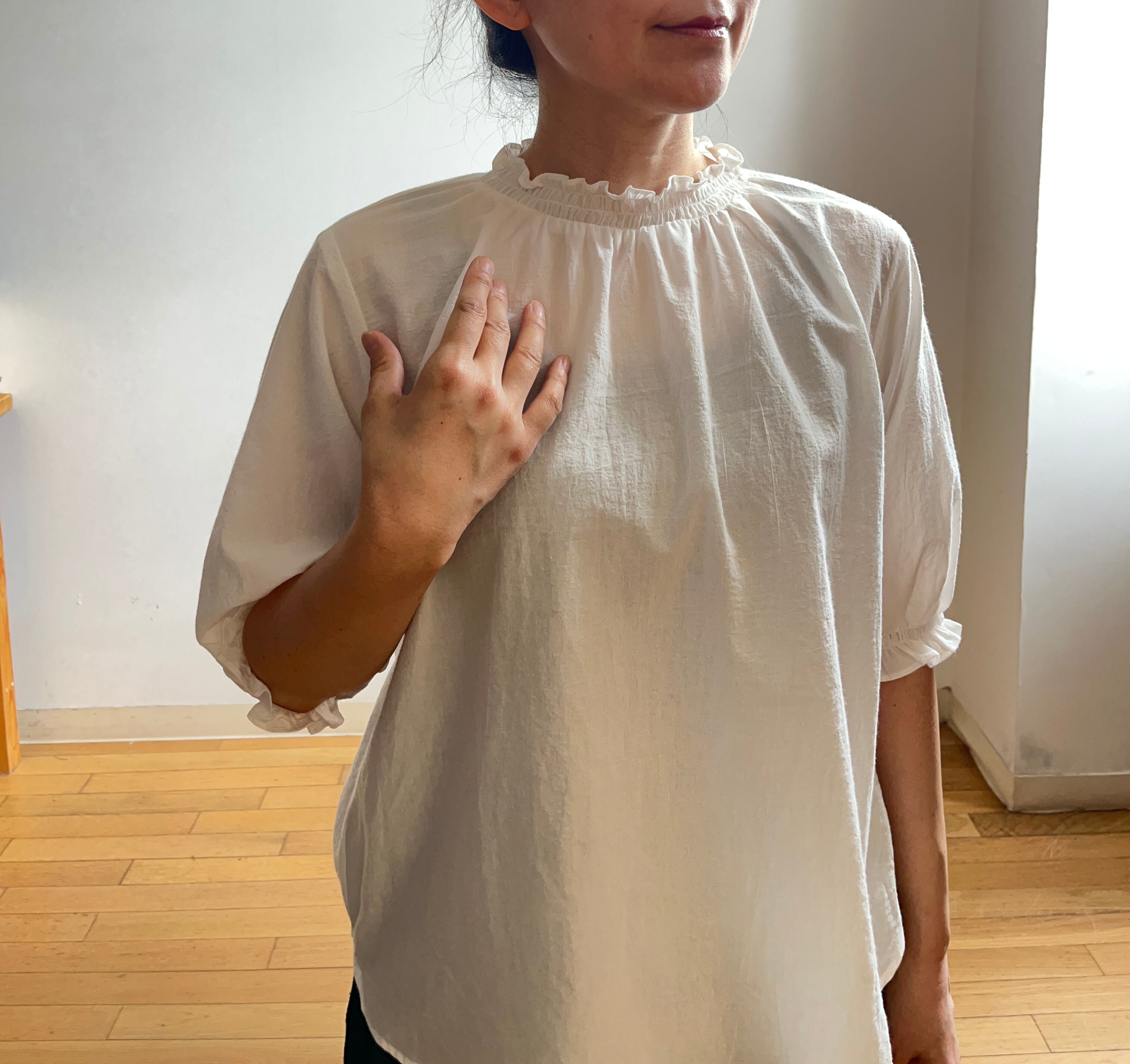 柔らかな風合いと通気性に優れた生地が、これからの季節にぴったりの着心地を実現します。シンプルでありながらも魅力的なデザインは、アクセサリーや羽織りものとの相性も良く、自由自在なスタイリングを楽しむことができます!自分らしいおしゃれを楽しみたい方に最適なブラウスです。