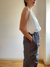 柔らかな質感が心地よく、通気性にも優れていますので、これからのシーズンに最適な一枚です。カジュアルな着こなしでも、少しモードなスタイリングでも、おしゃれを楽しみたい方におすすめのジョガーパンツです!