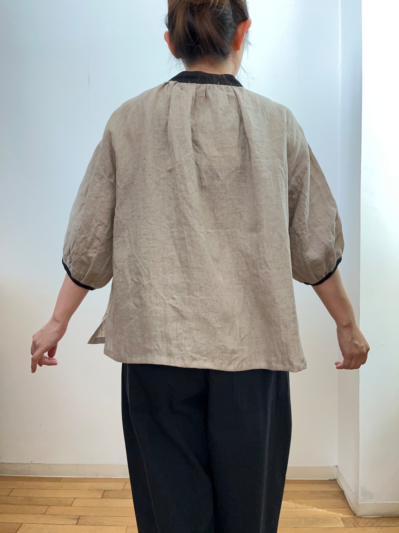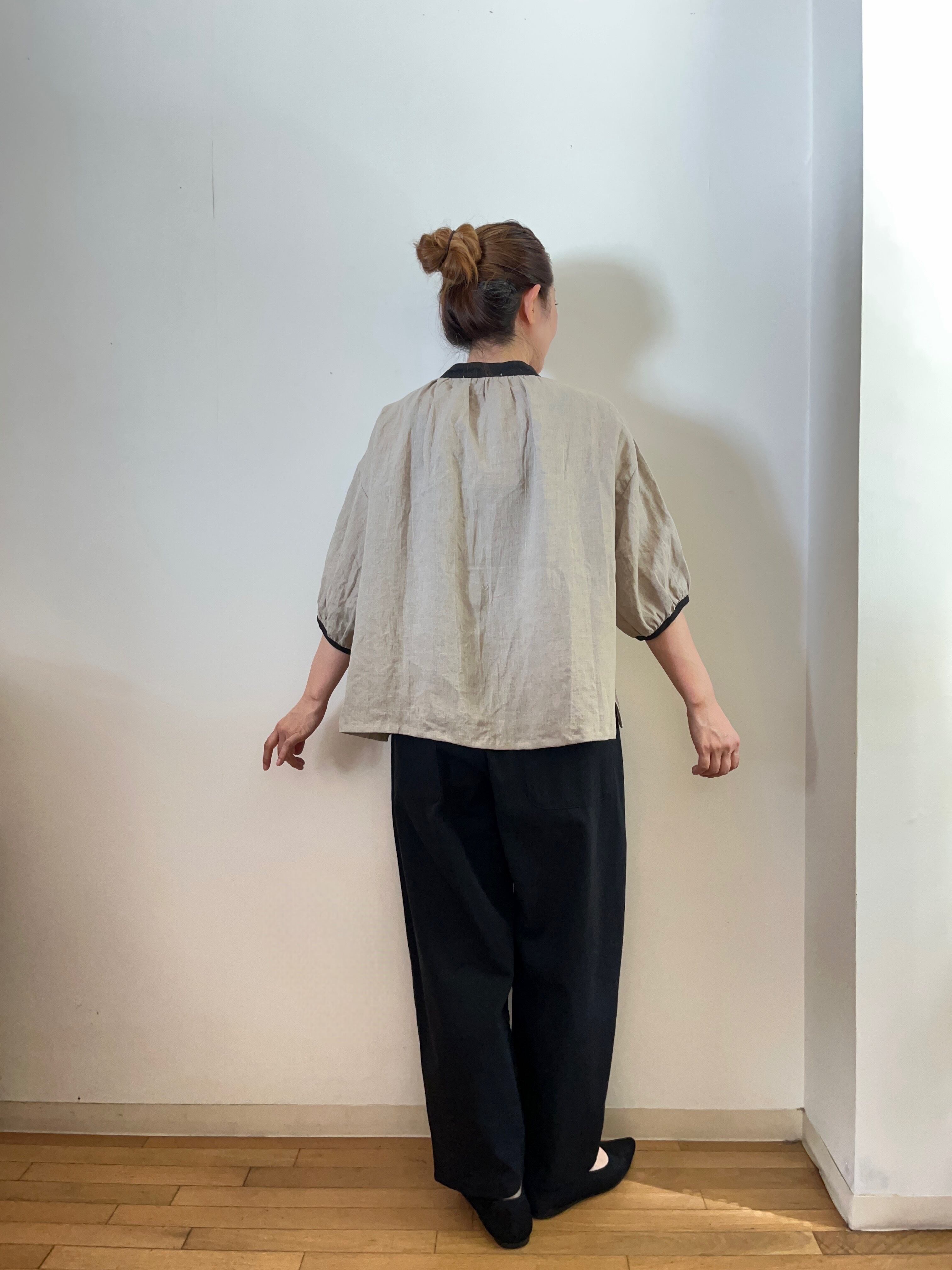 リネンバイカラーリボン付きブラウス