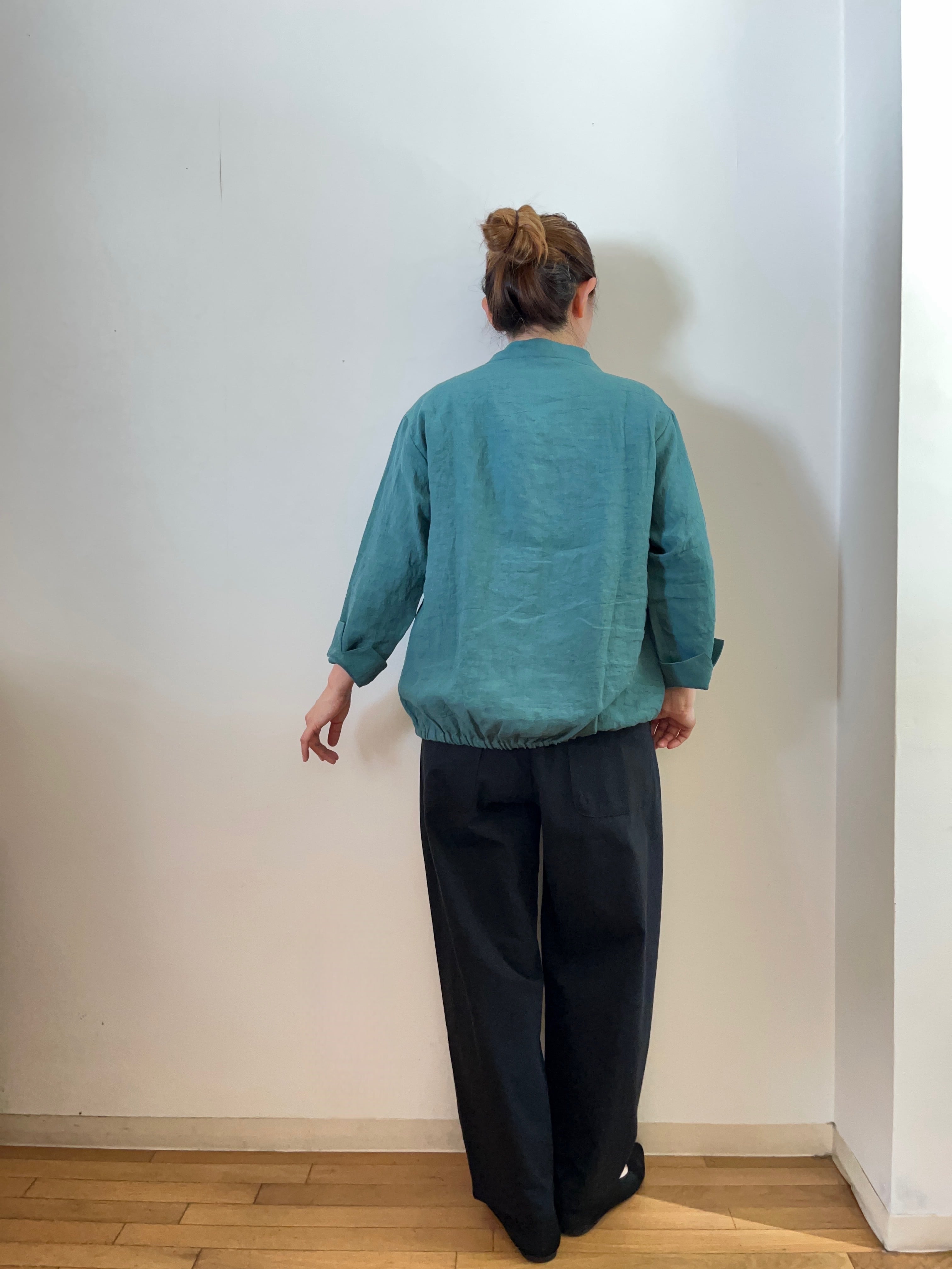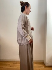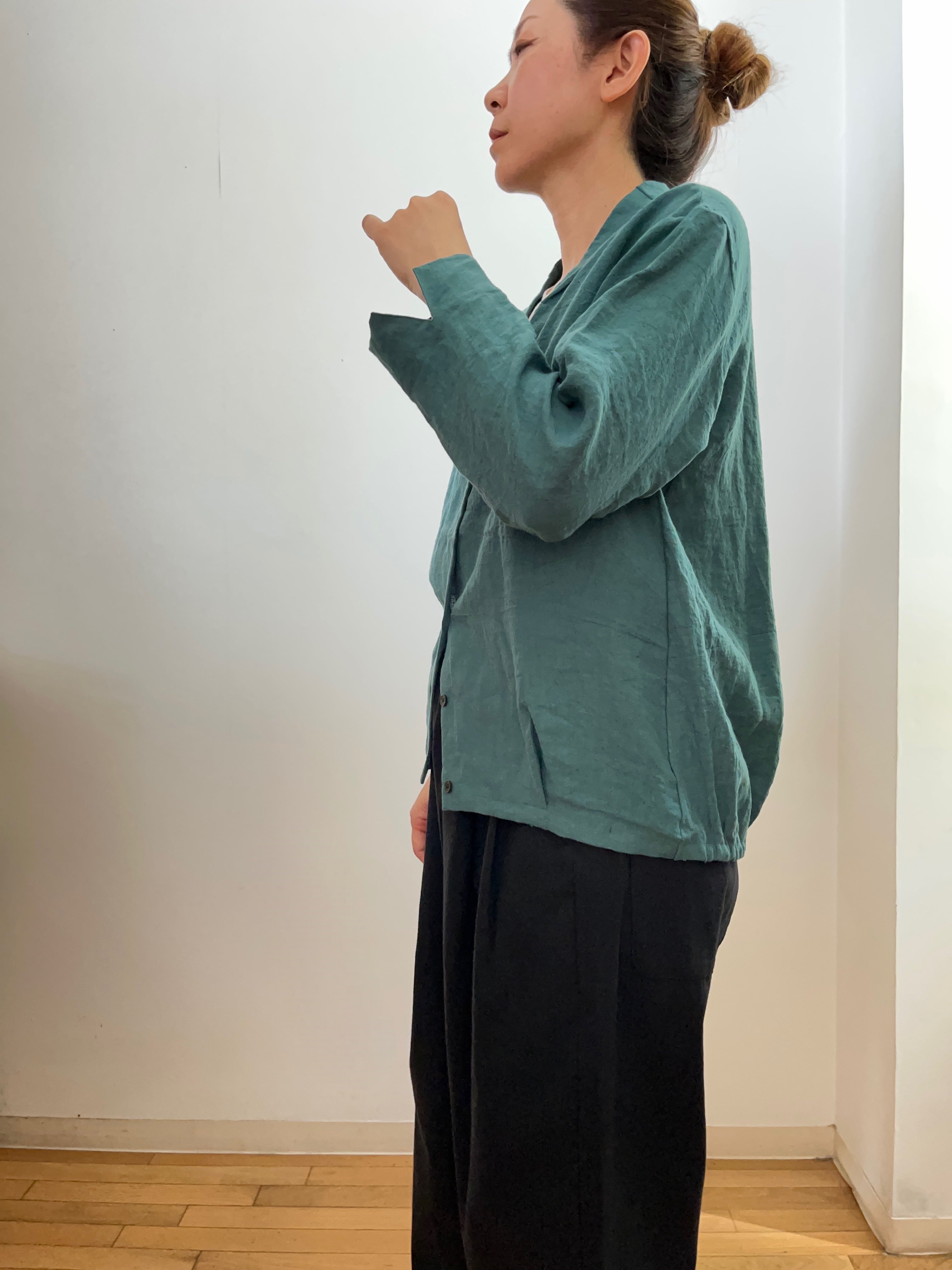 軽やかなデザインと独自のシルエットが魅力の長袖カーディガンです。このカーディガンは、柔らかなリネン素材を使用し、通気性に優れた着心地が特徴となっています!後ろのバルーンデザインが女性らしさを引き立て、シンプルながらもおしゃれな印象を与えます。