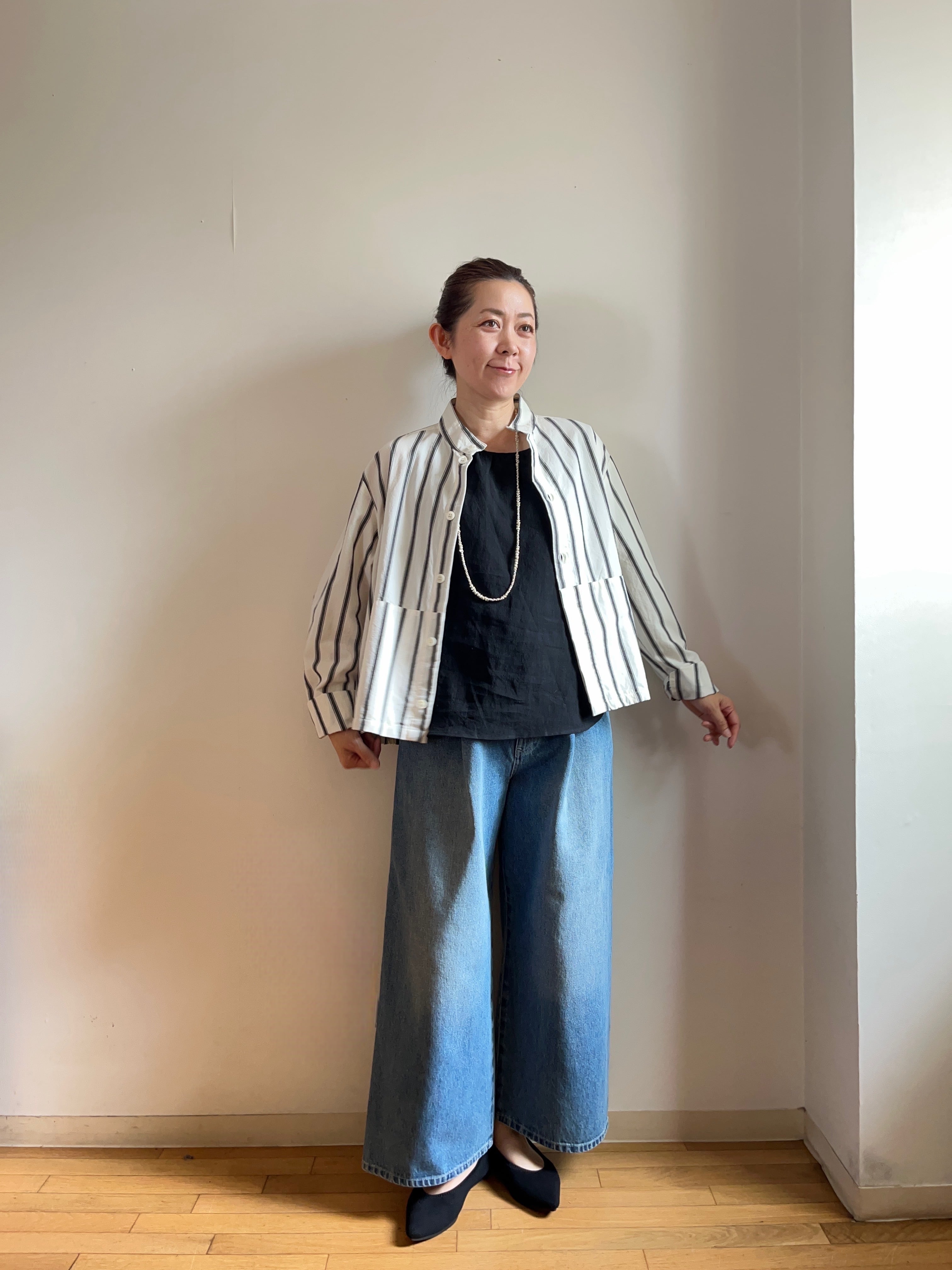 大人カジュアルな魅力を引き出すストライプジャケットです!ストライプ柄のデザインはシンプルながらも個性を演出し、ビジネスシーンからカジュアルな場面まで幅広く活躍します。軽やかな素材を使用しており、着心地も抜群。さらりと羽織るだけで、コーディネートが格上げされる一枚です。