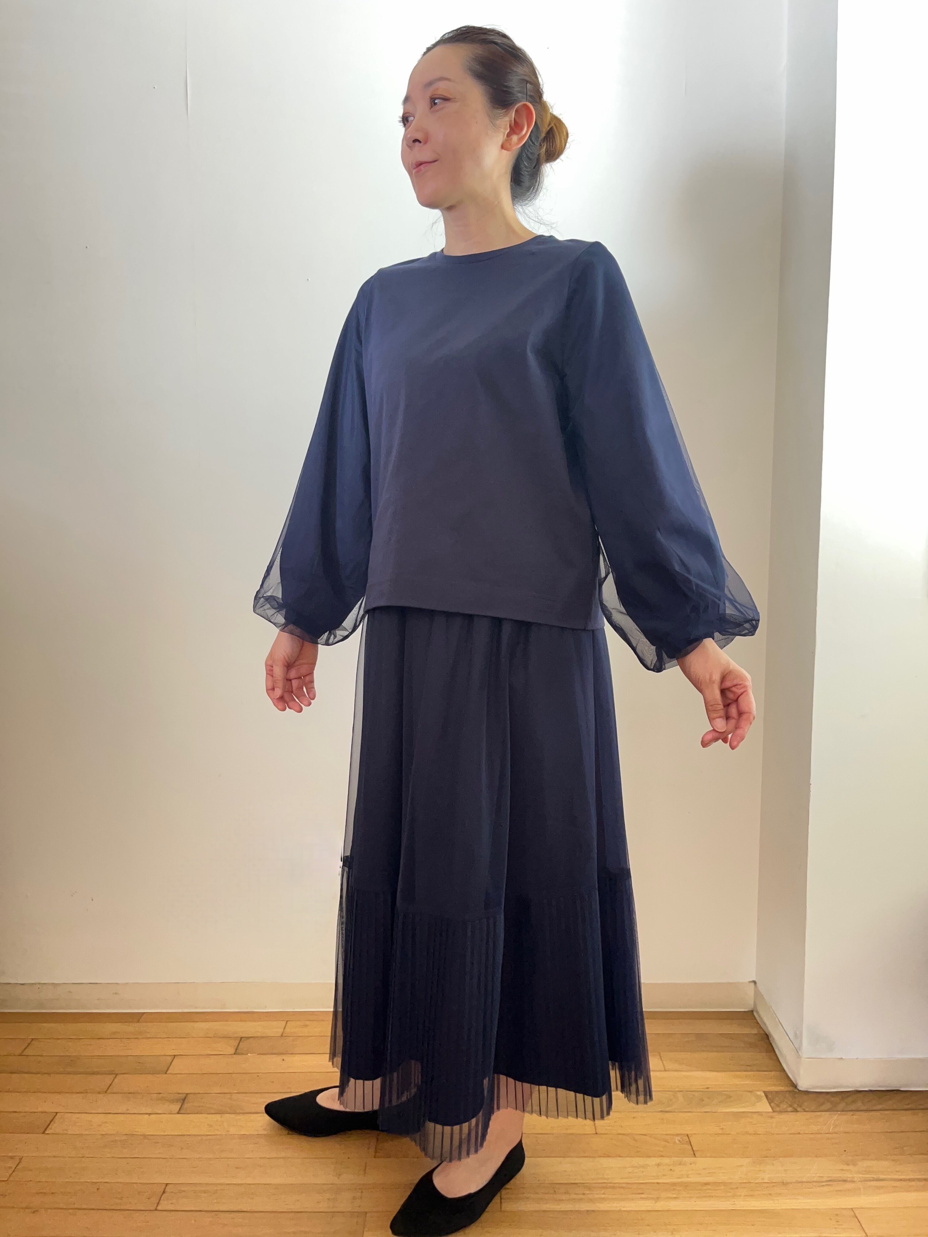 大人の女性にぴったりな、オールマイティな袖チュールロンTが登場です!