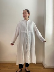 このワンピースは、前開きのデザインに加え、ピンタックが施されており、女性らしさを引き立てます。軽やかな素材感で、快適な着心地を提供し、ちょっとしたお出かけにもぴったりです。合わせるアイテムによって、カジュアルにもエレガントにもスタイルを変えることができるのも大きなポイントです。