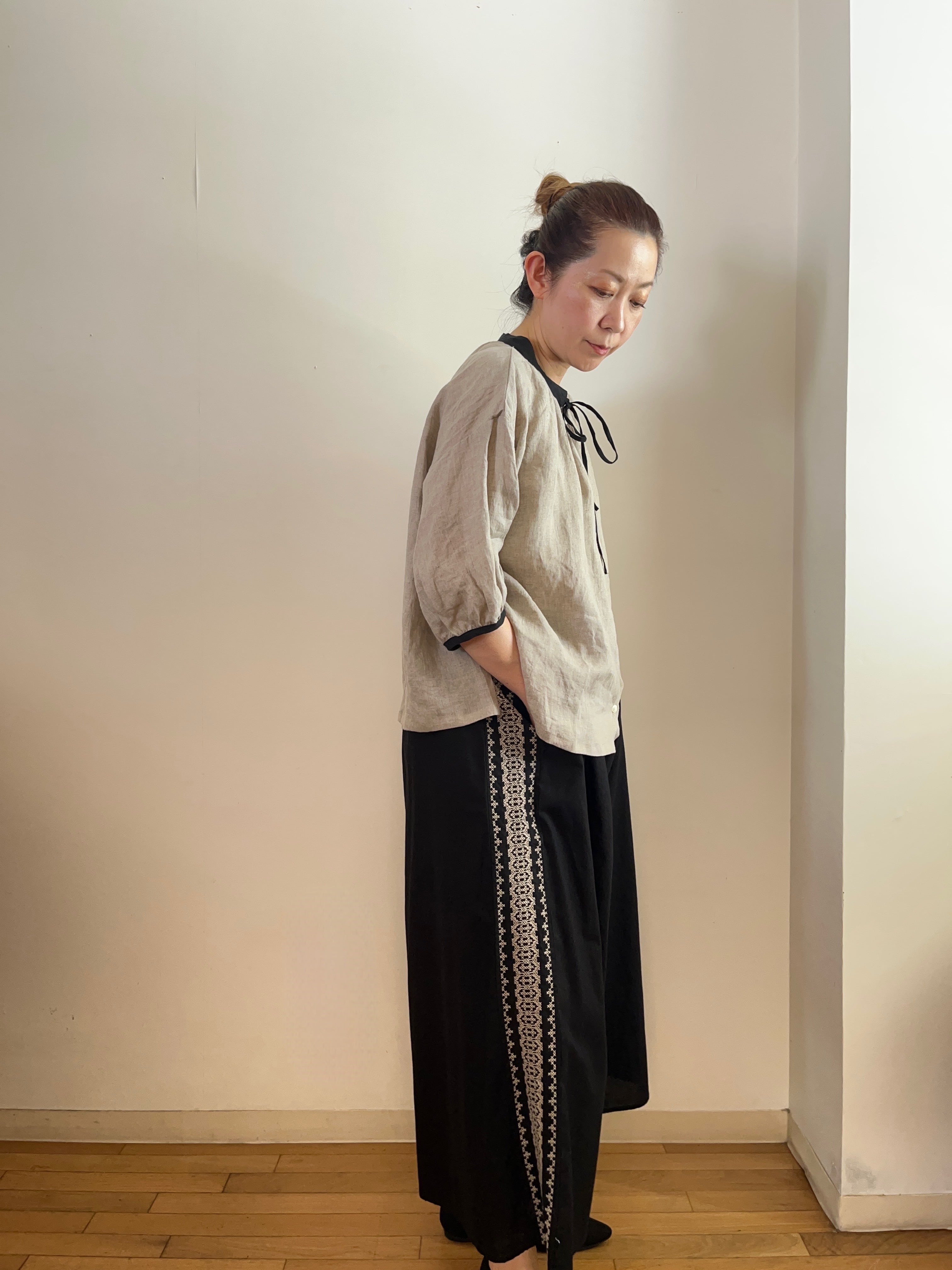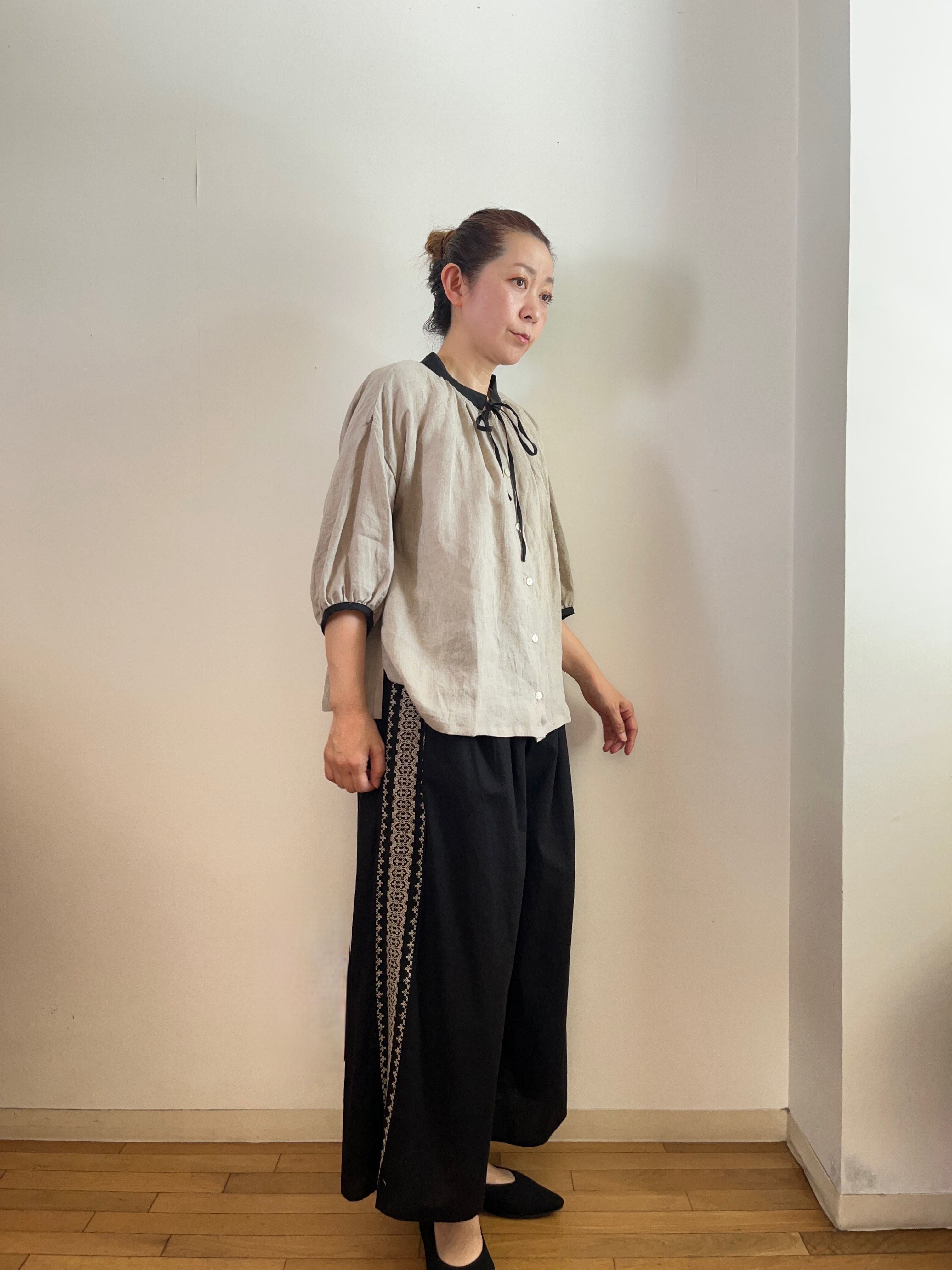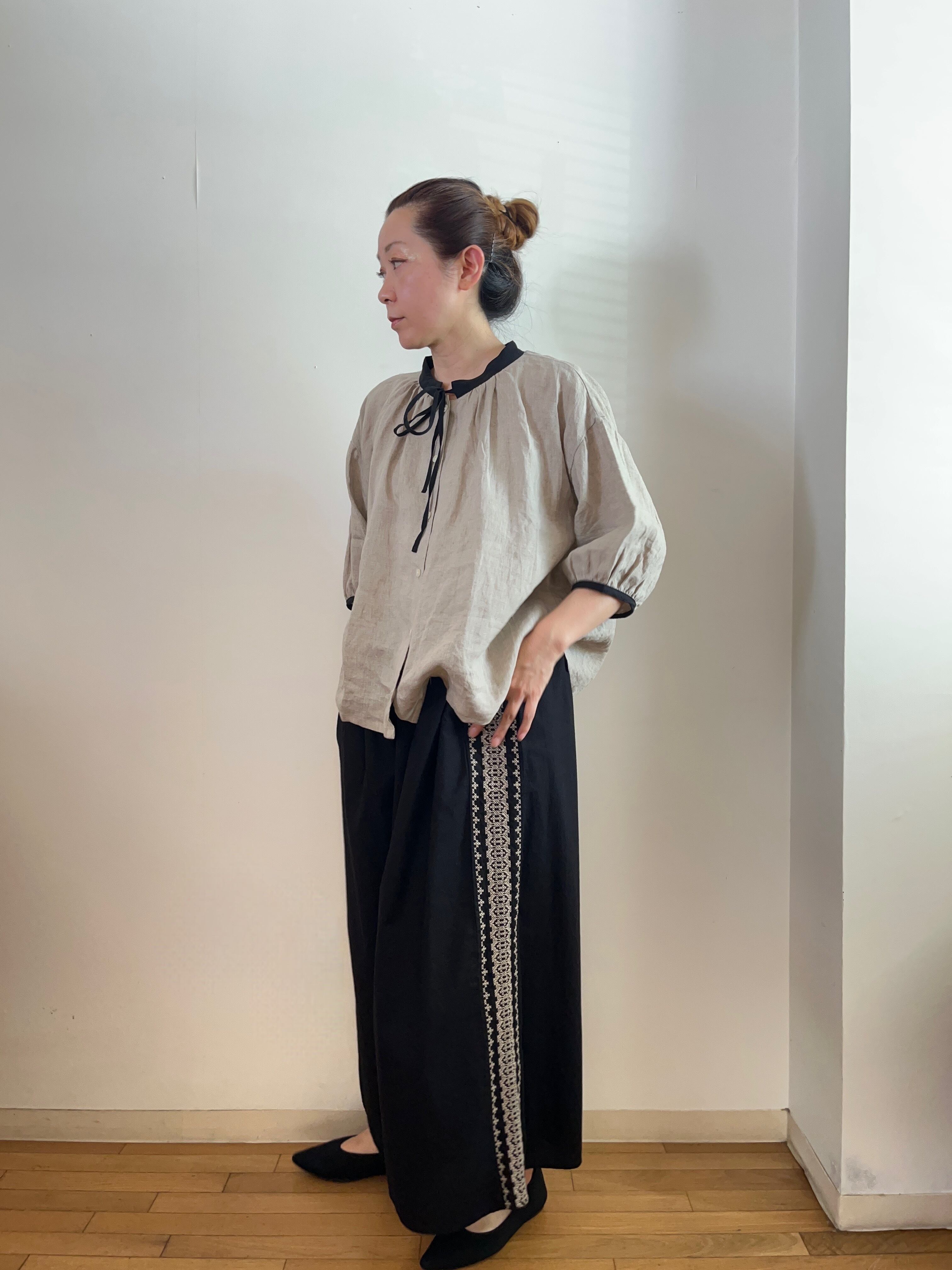 サイド刺繍 ワイドパンツ
