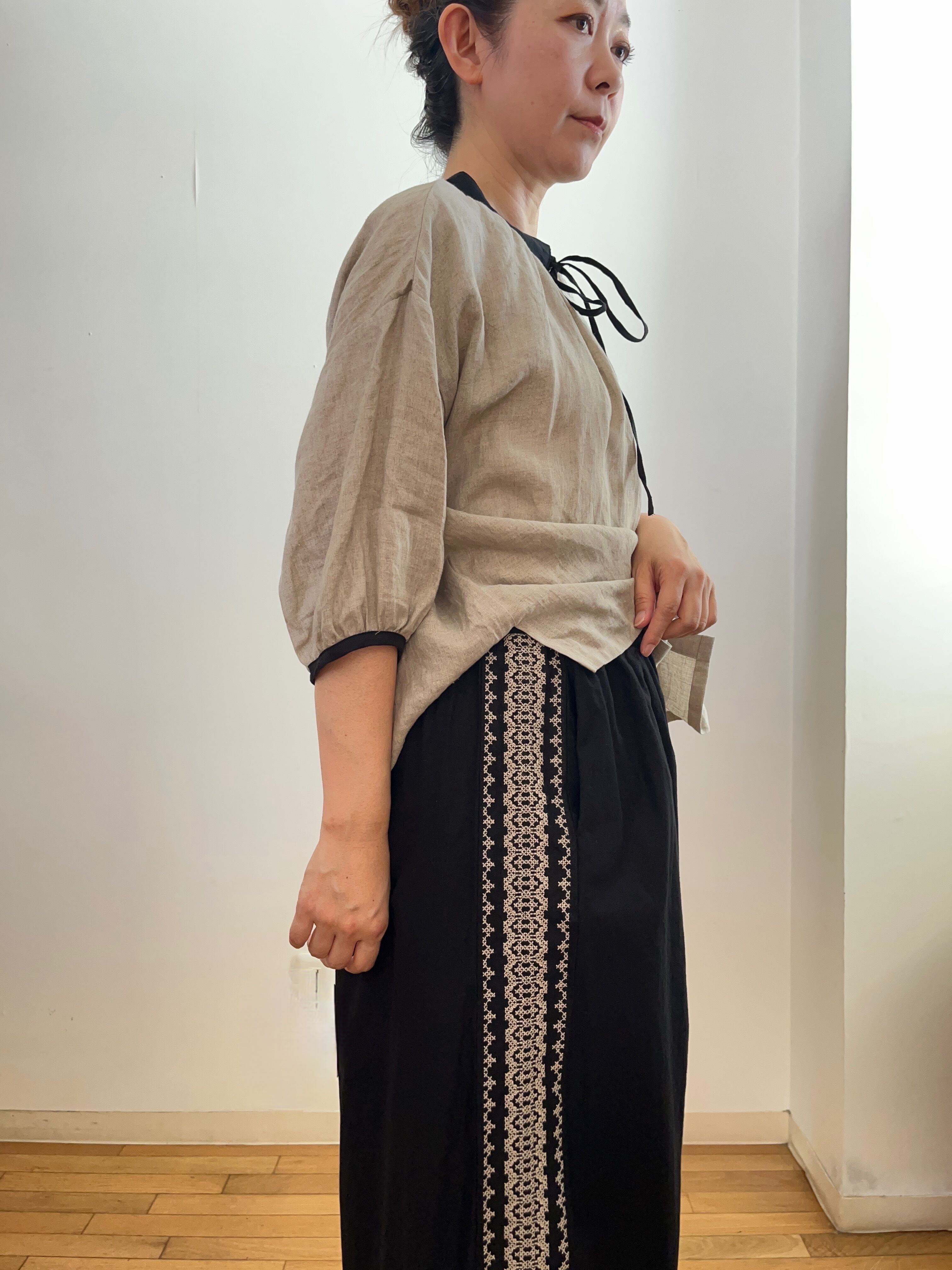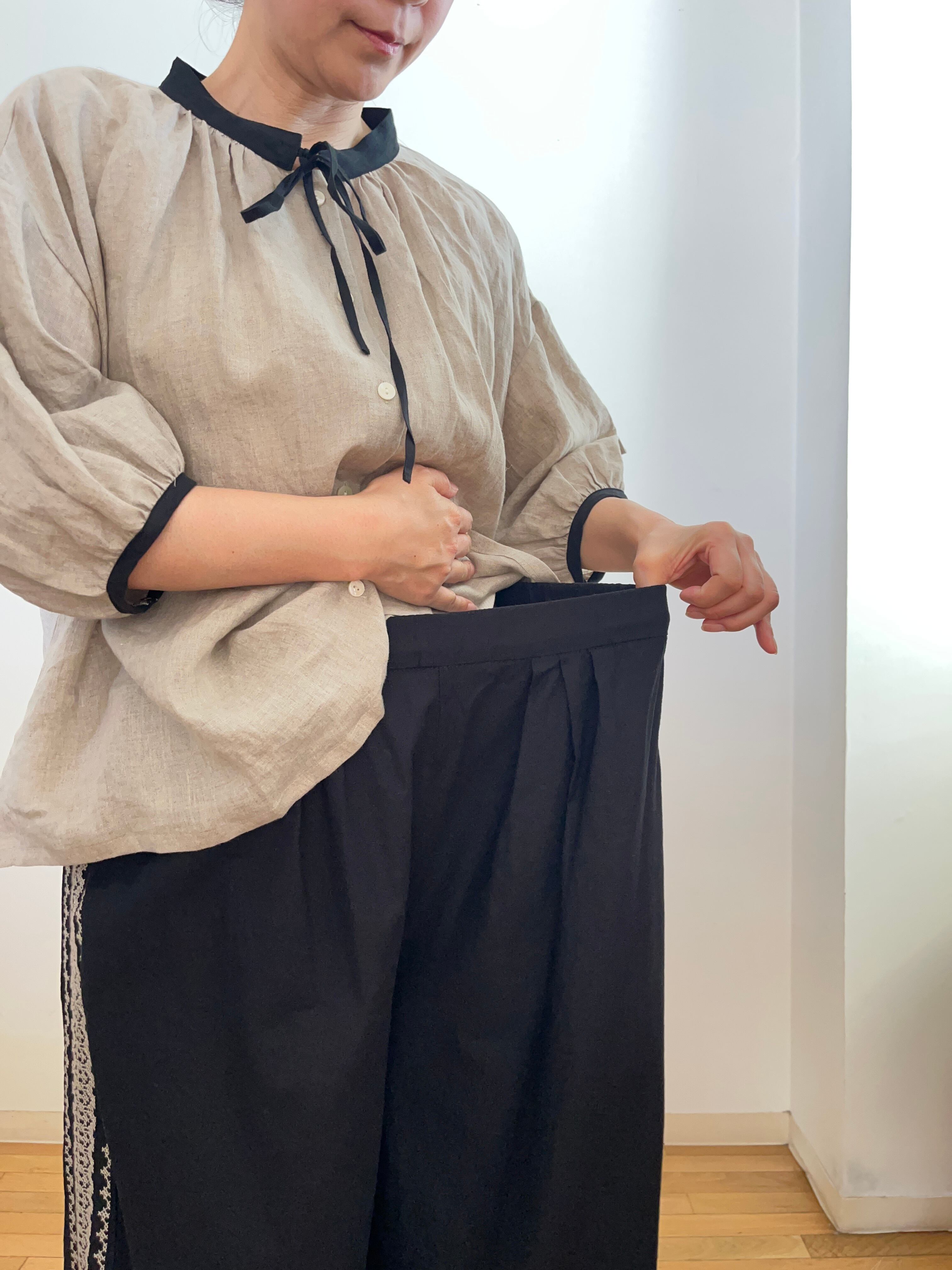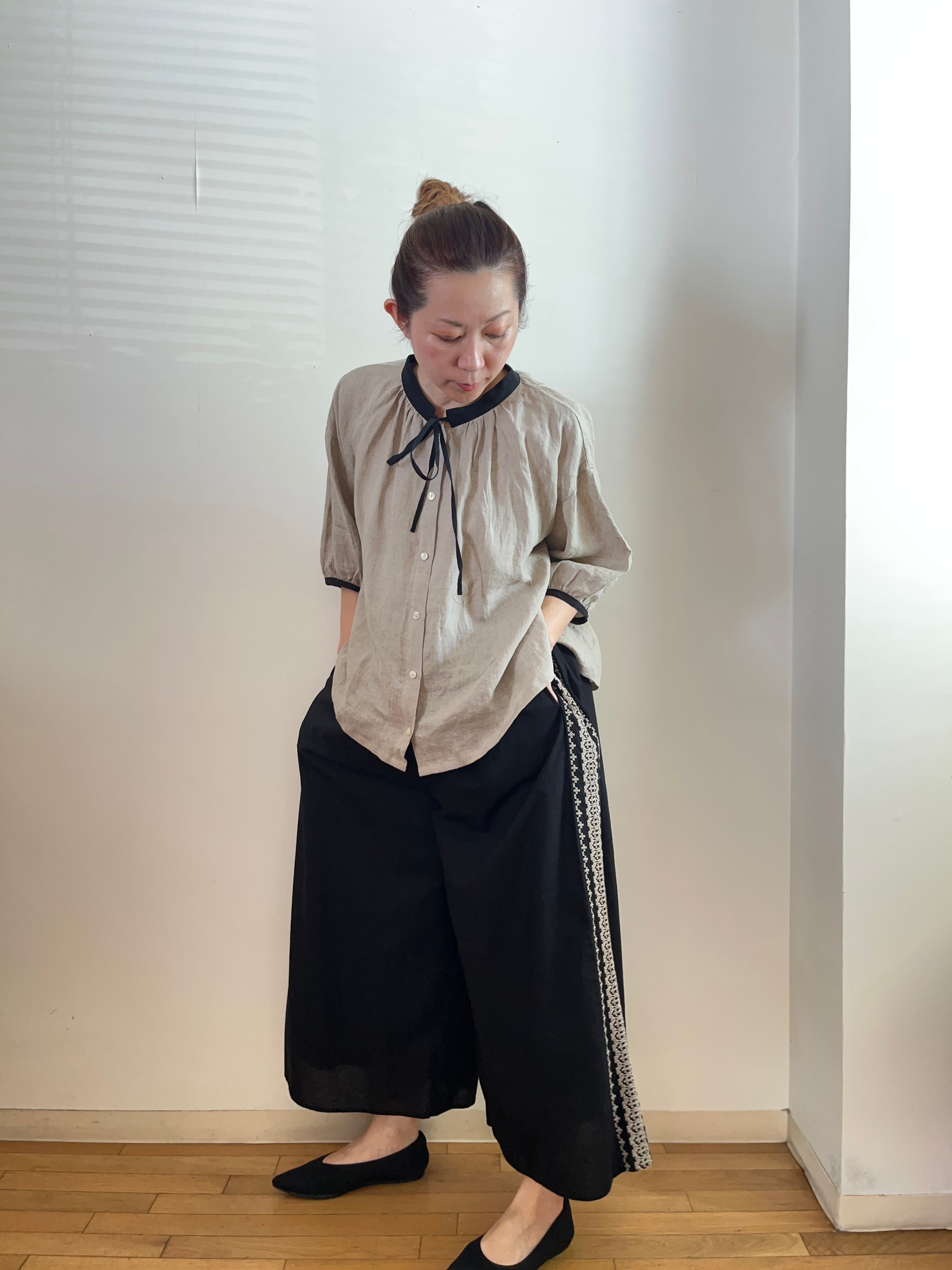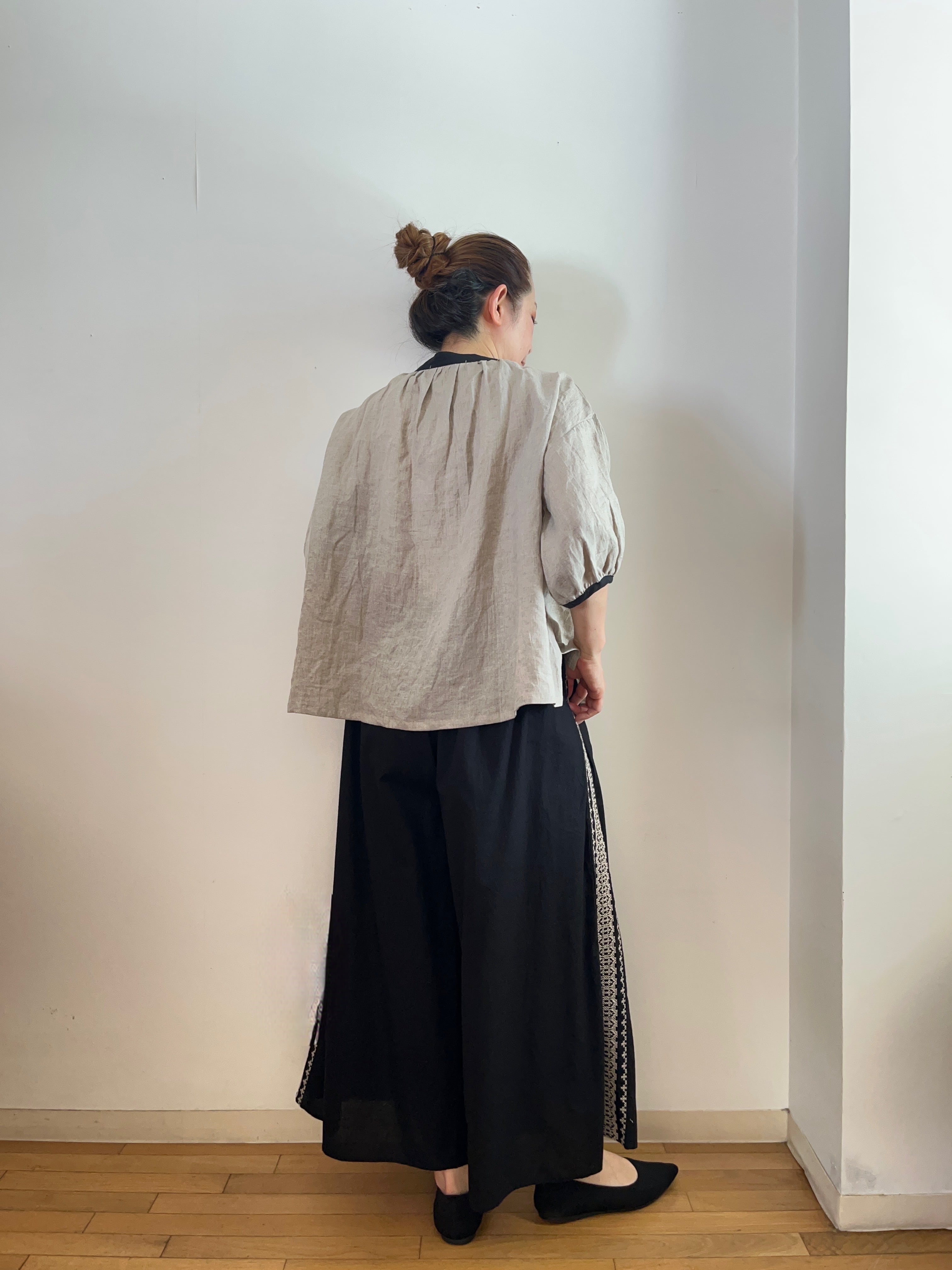 サイド刺繍 ワイドパンツ