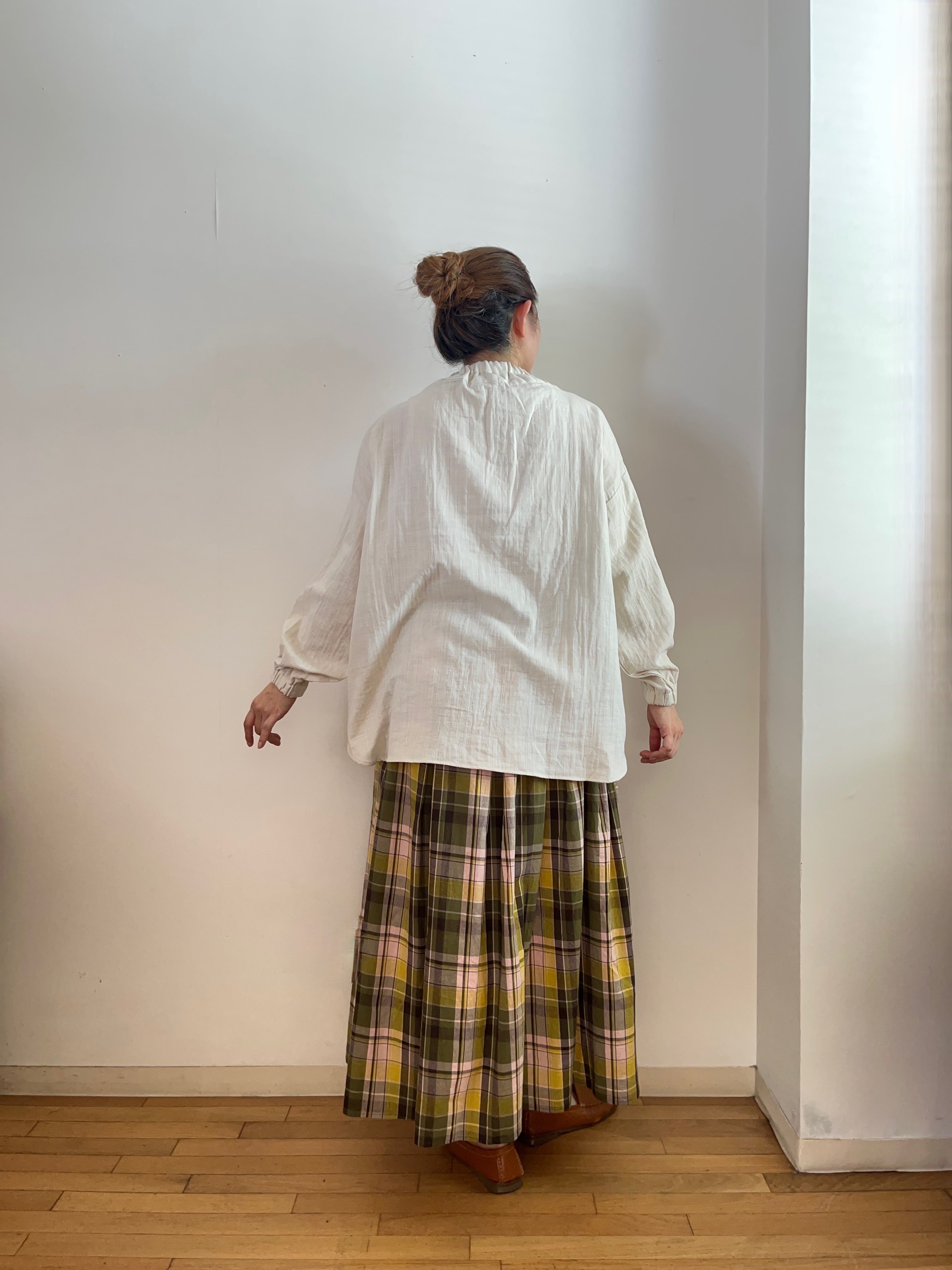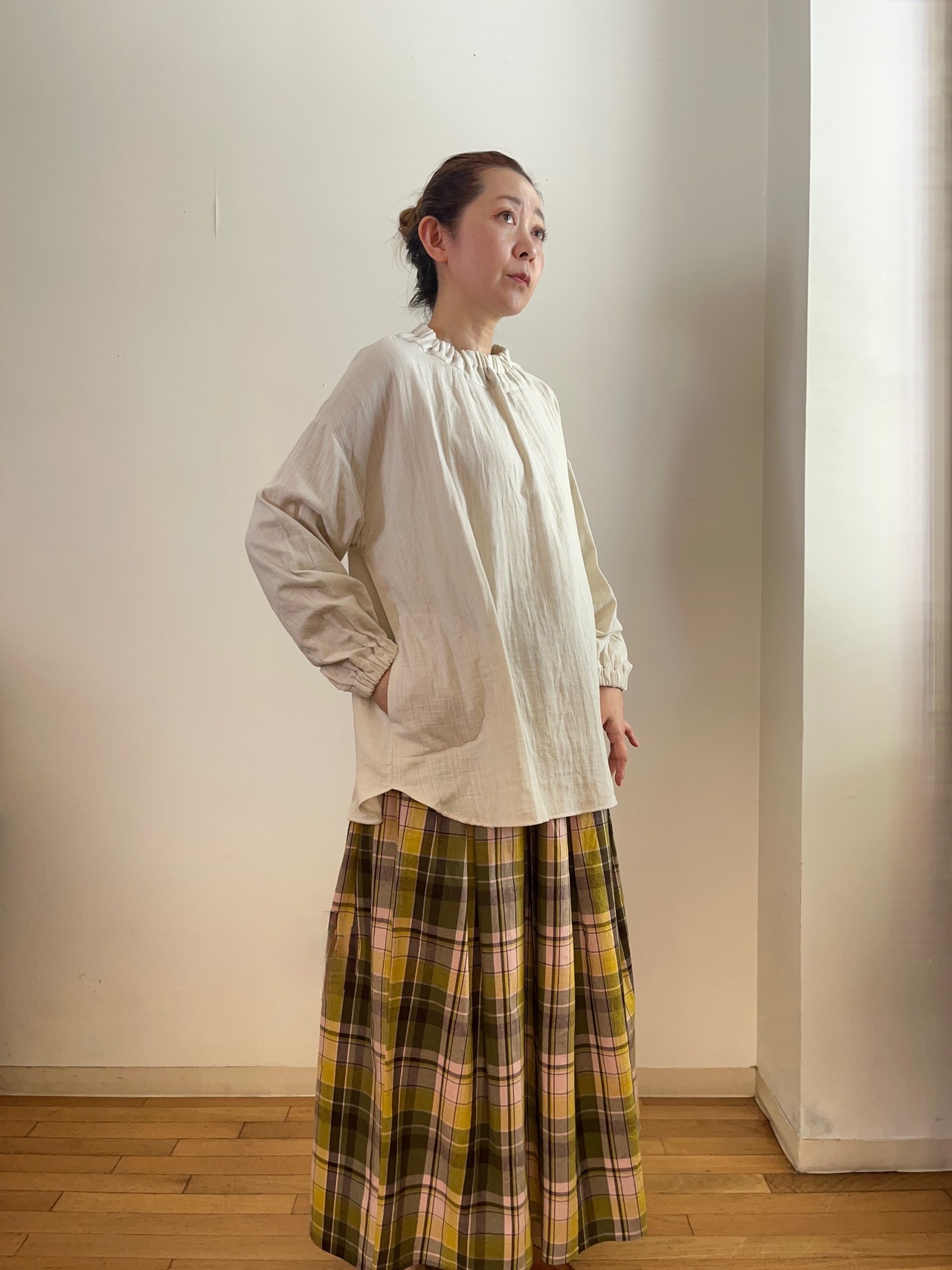 ゆったりとしたシルエットがリラックスした印象を与え、さまざまなボトムスと合わせやすいのも魅力の一つです!カジュアルなデニムやスカートと合わせるだけで、洗練されたコーディネートが完成します。また、デイリーユースからお出かけ、生地を重ねたスタイルにもぴったりですので、ぜひワードローブに加えてみてください。