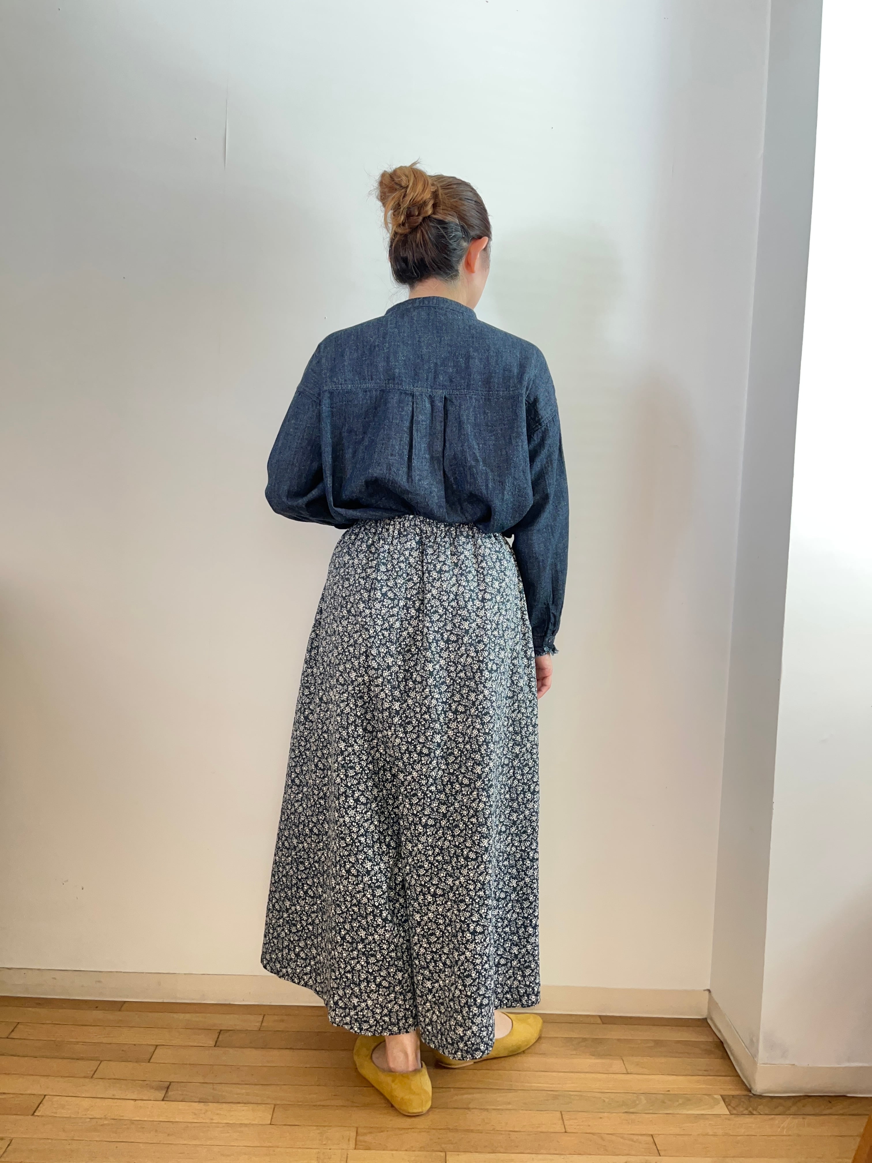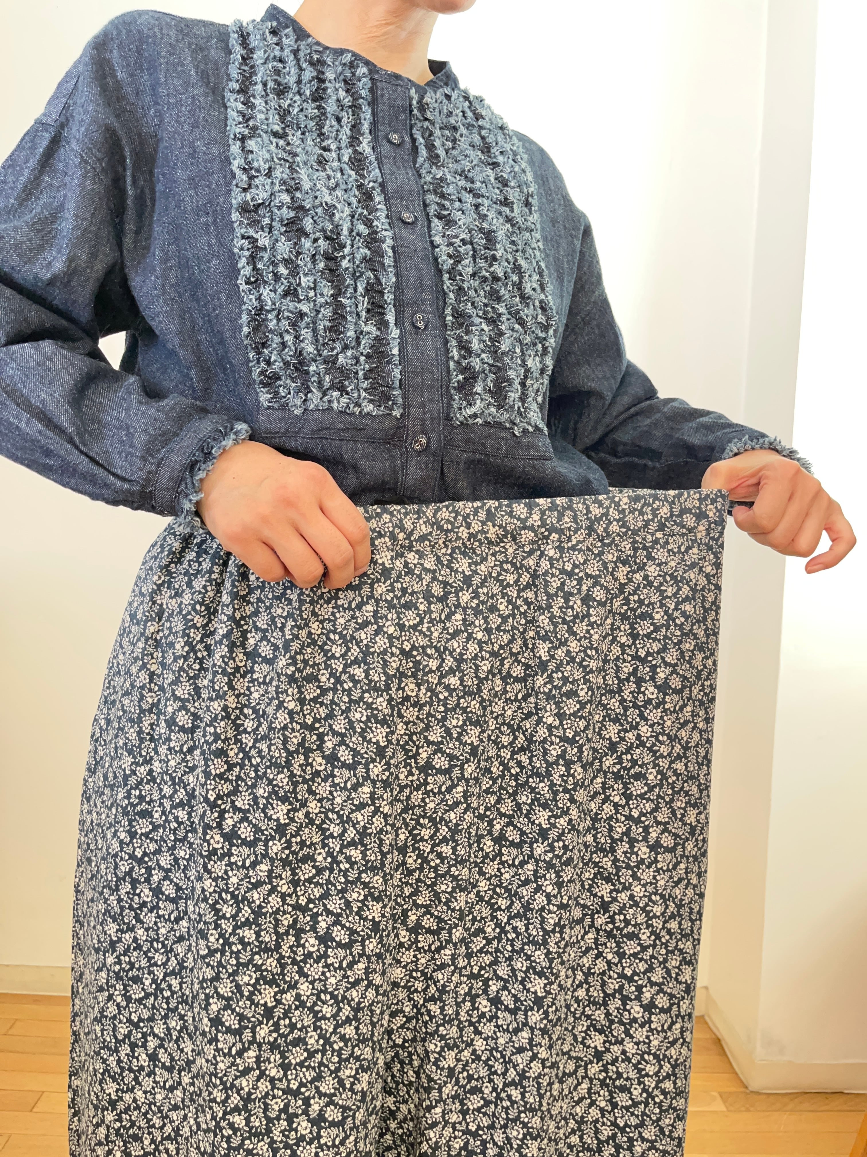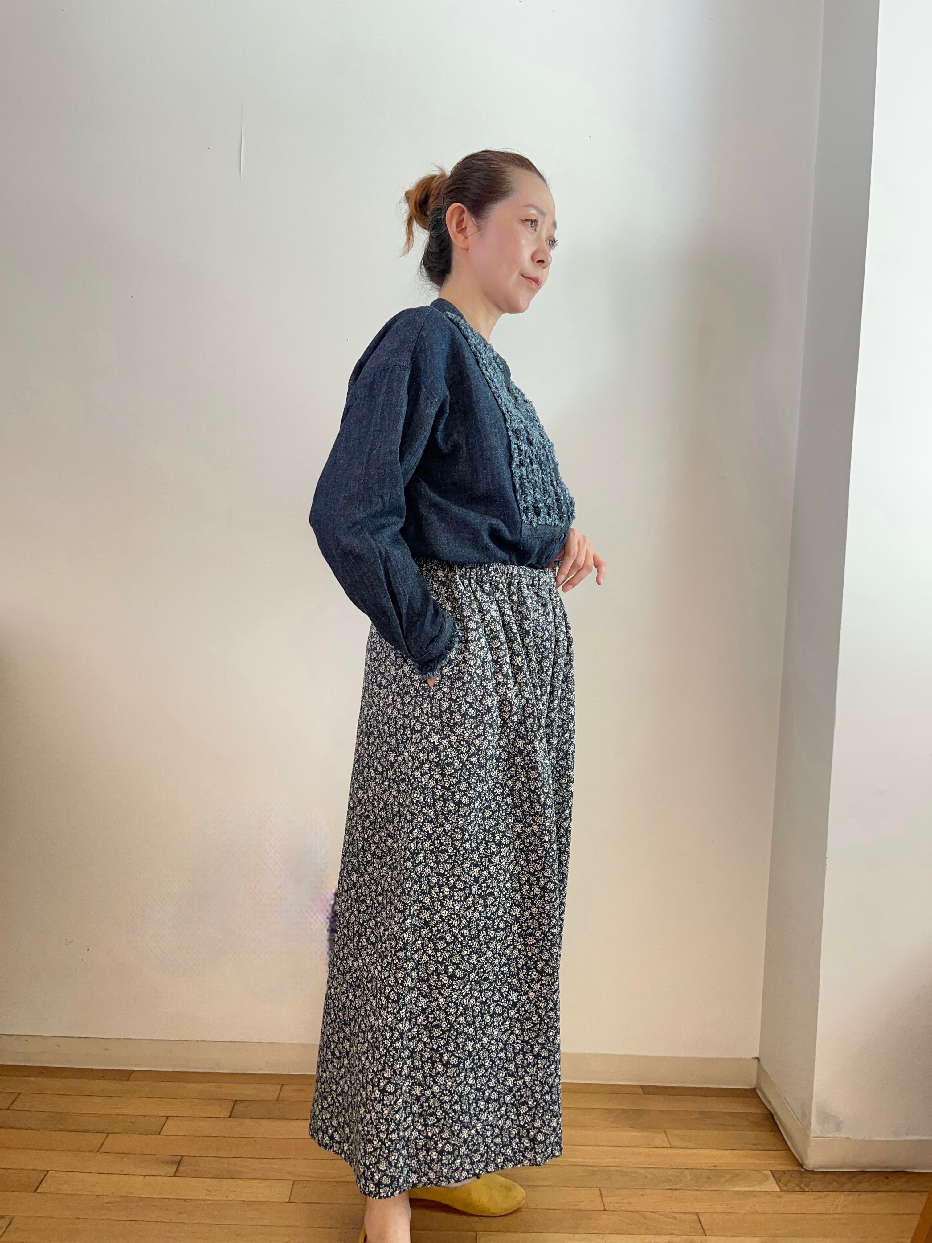 小花柄 ワイドパンツ(ネイビー)