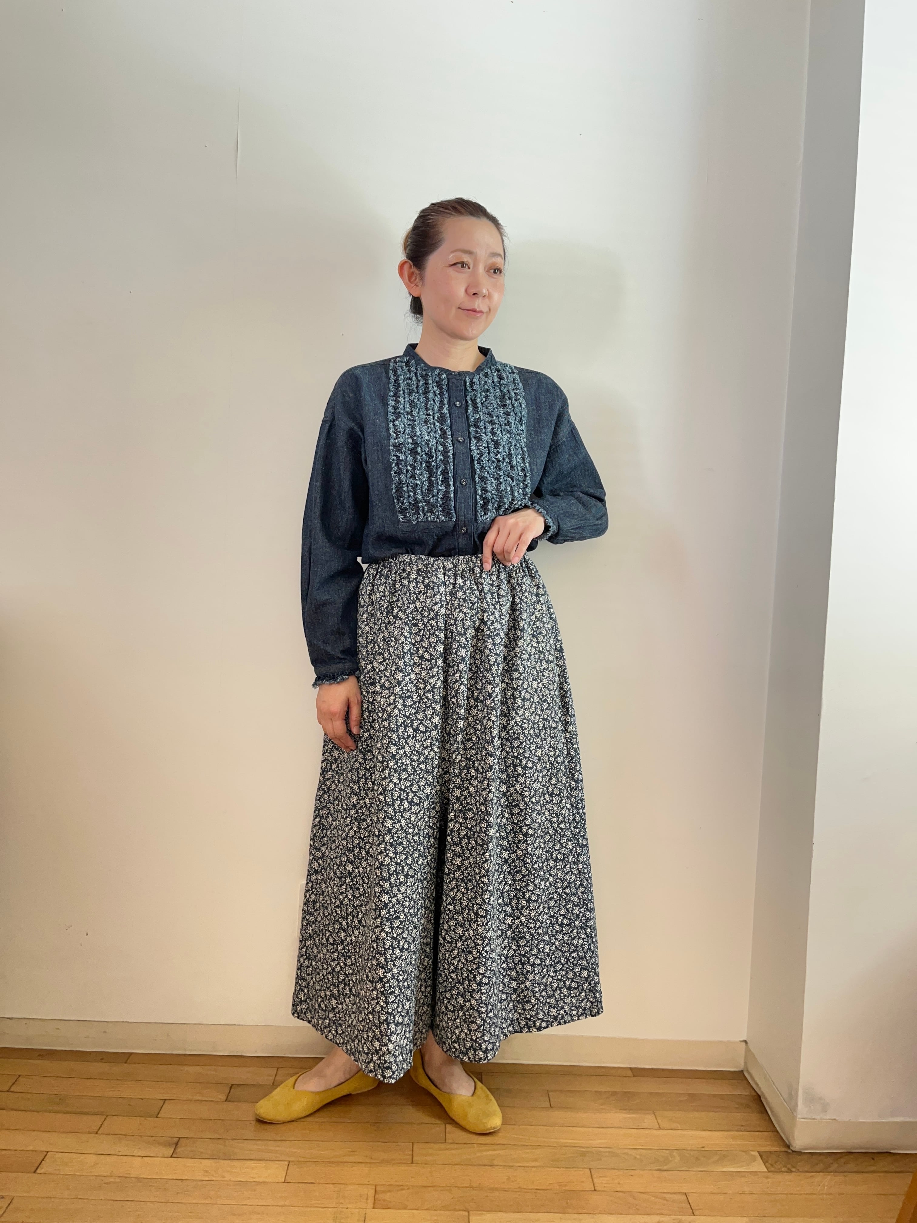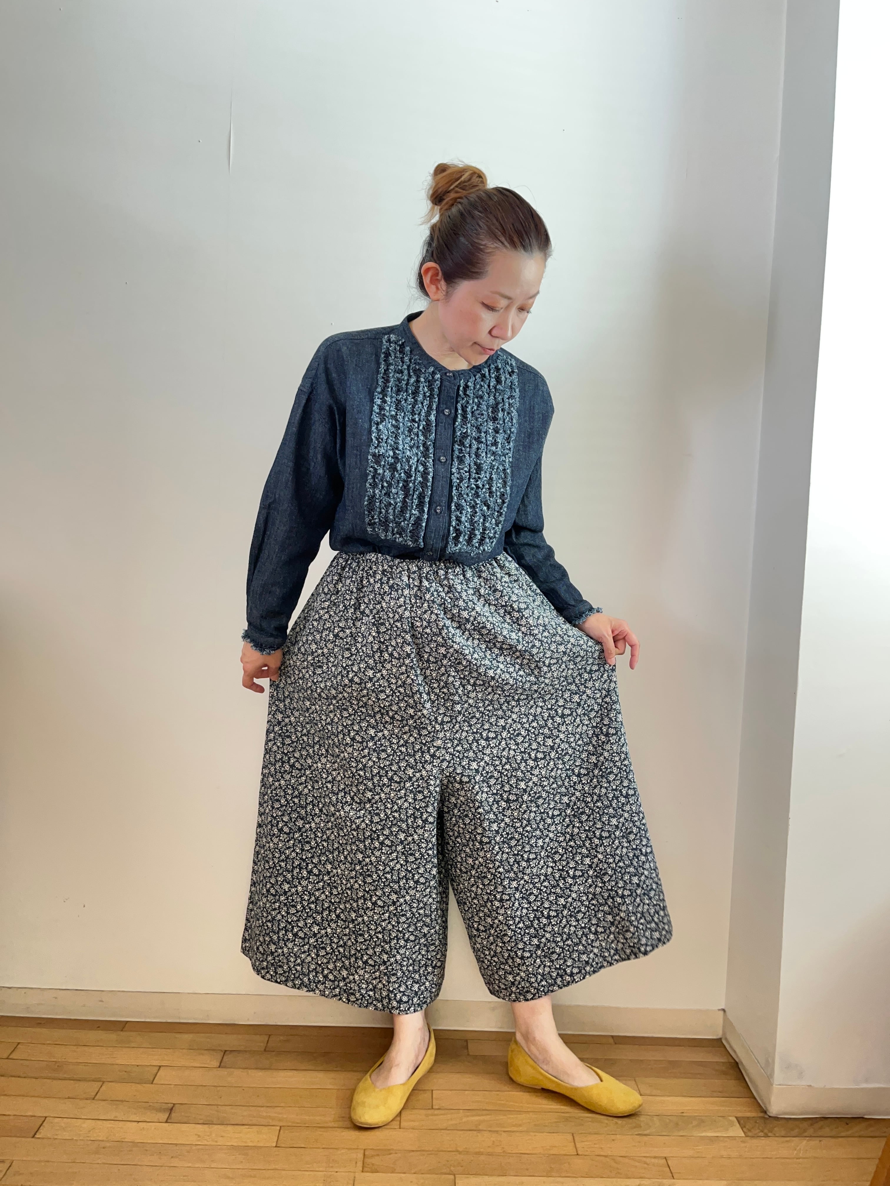 キュートな小花柄が特徴で、スカートとは違った動きのあるシルエットを楽しむことができます。軽やかで柔らかな素材感により、日常のコーディネートをより一層魅力的に演出してくれます。