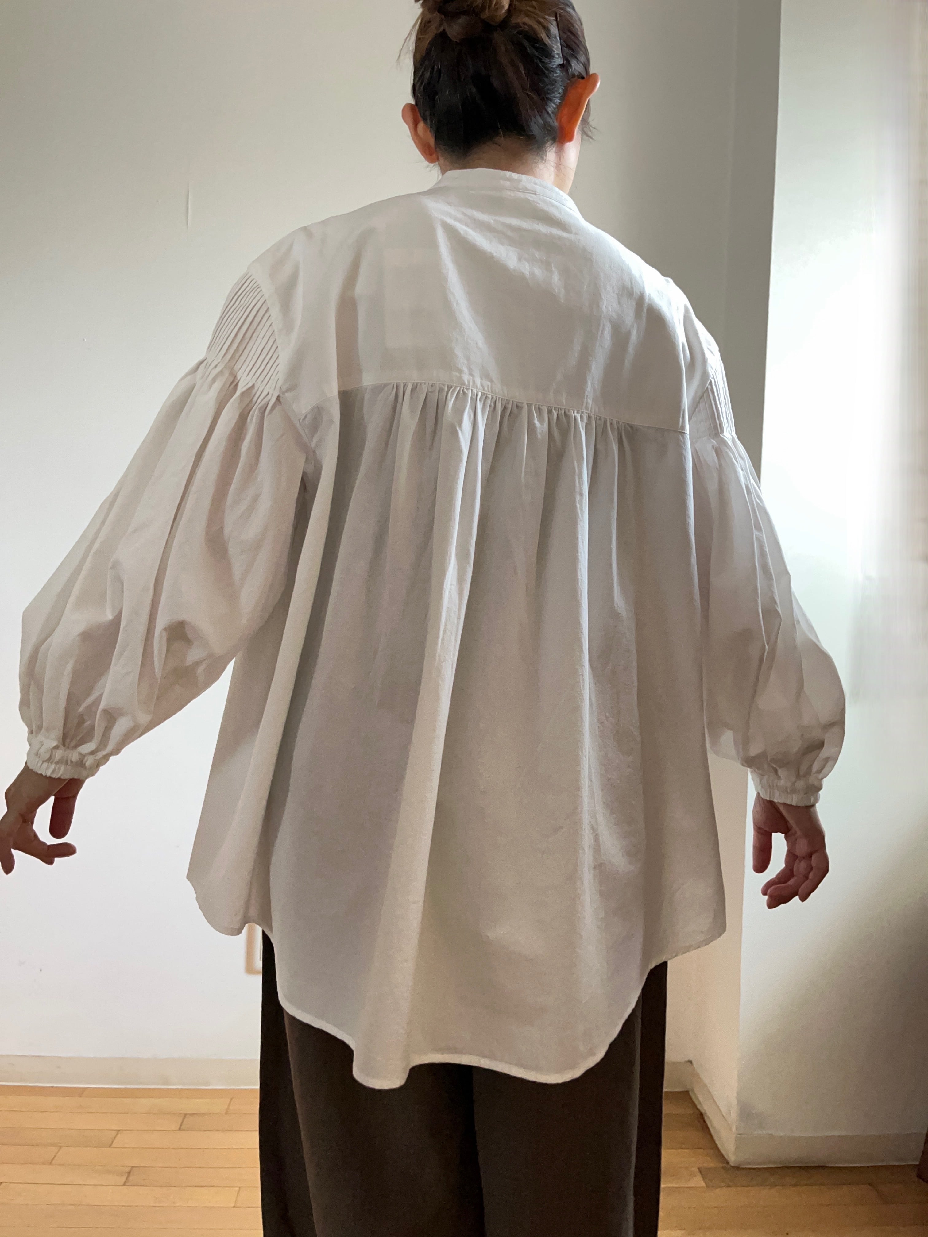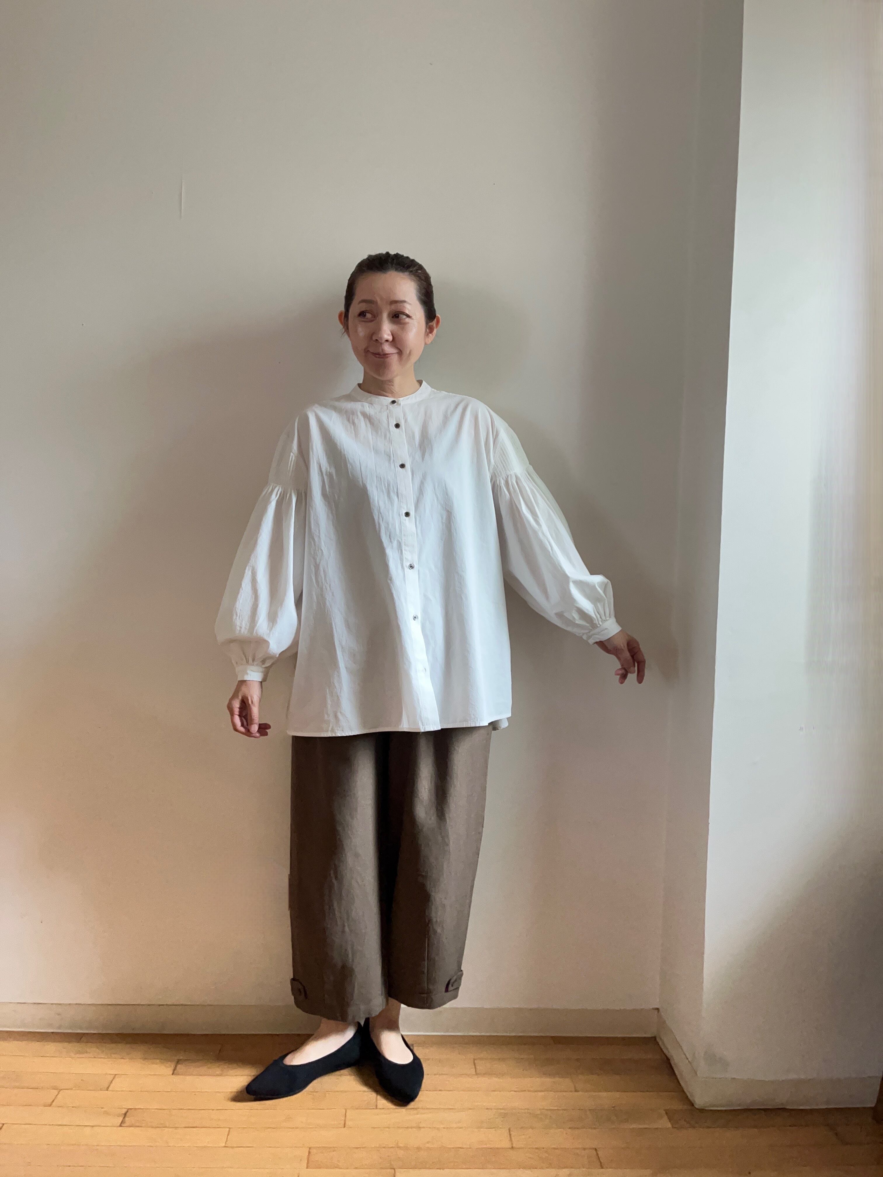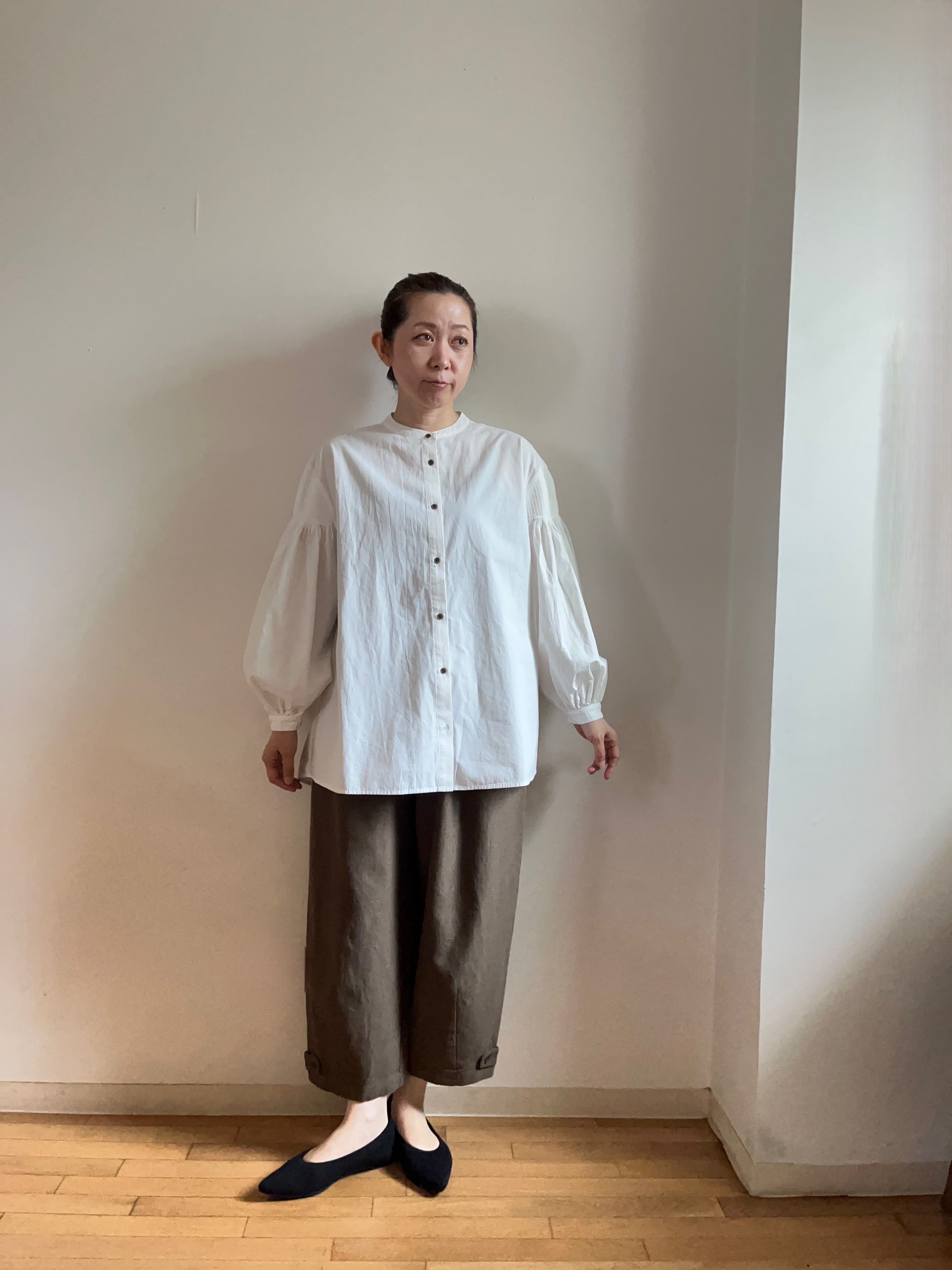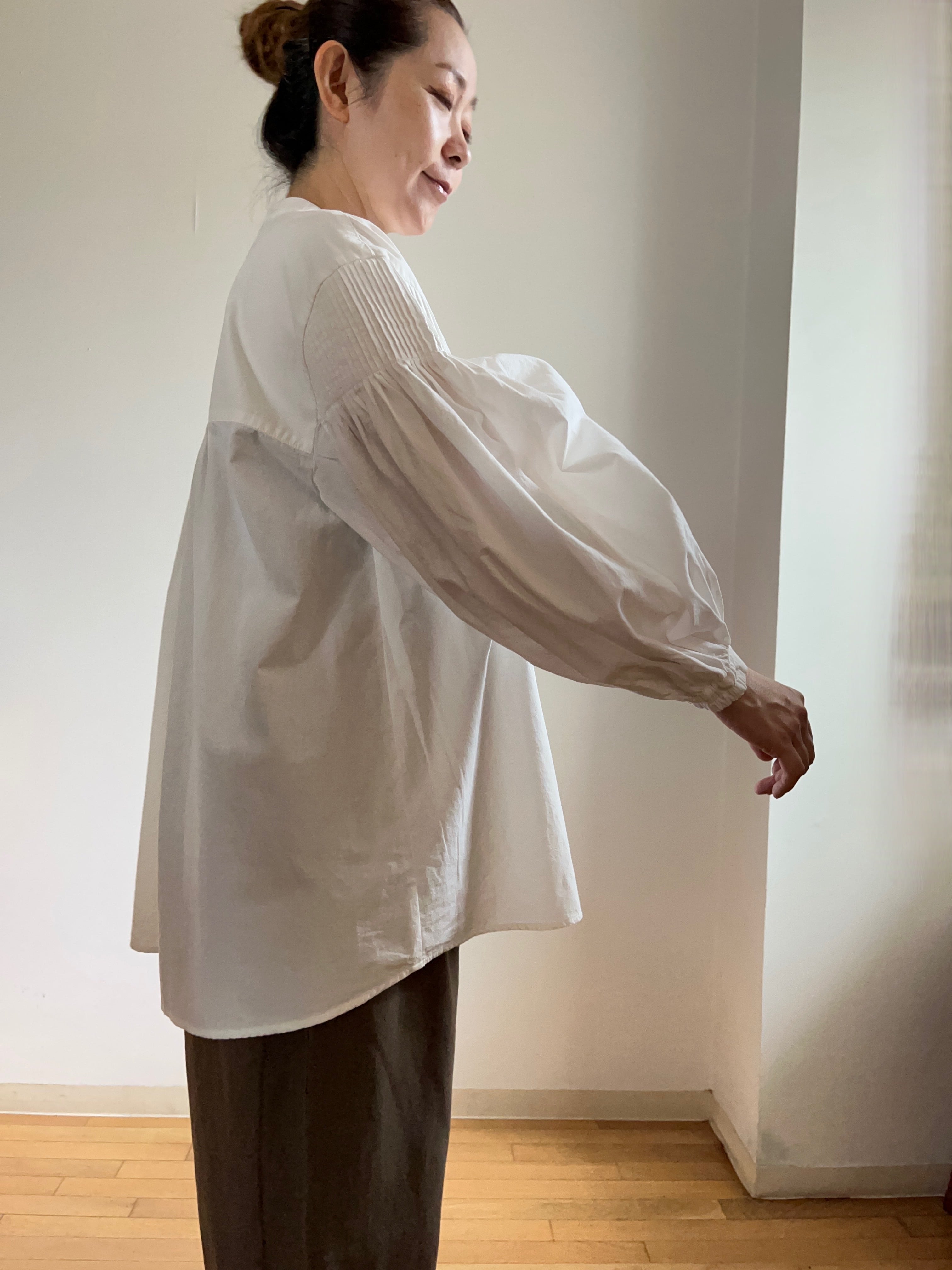 このブラウスは、ふんわりしたお袖と肩のピンタックが特徴的で、柔らかな生地とふんわりとした袖のデザインが特徴で、女性らしさを引き立てながらも快適さを追求しています。風通しの良い素材で、軽やかな着心地を実現しました。
