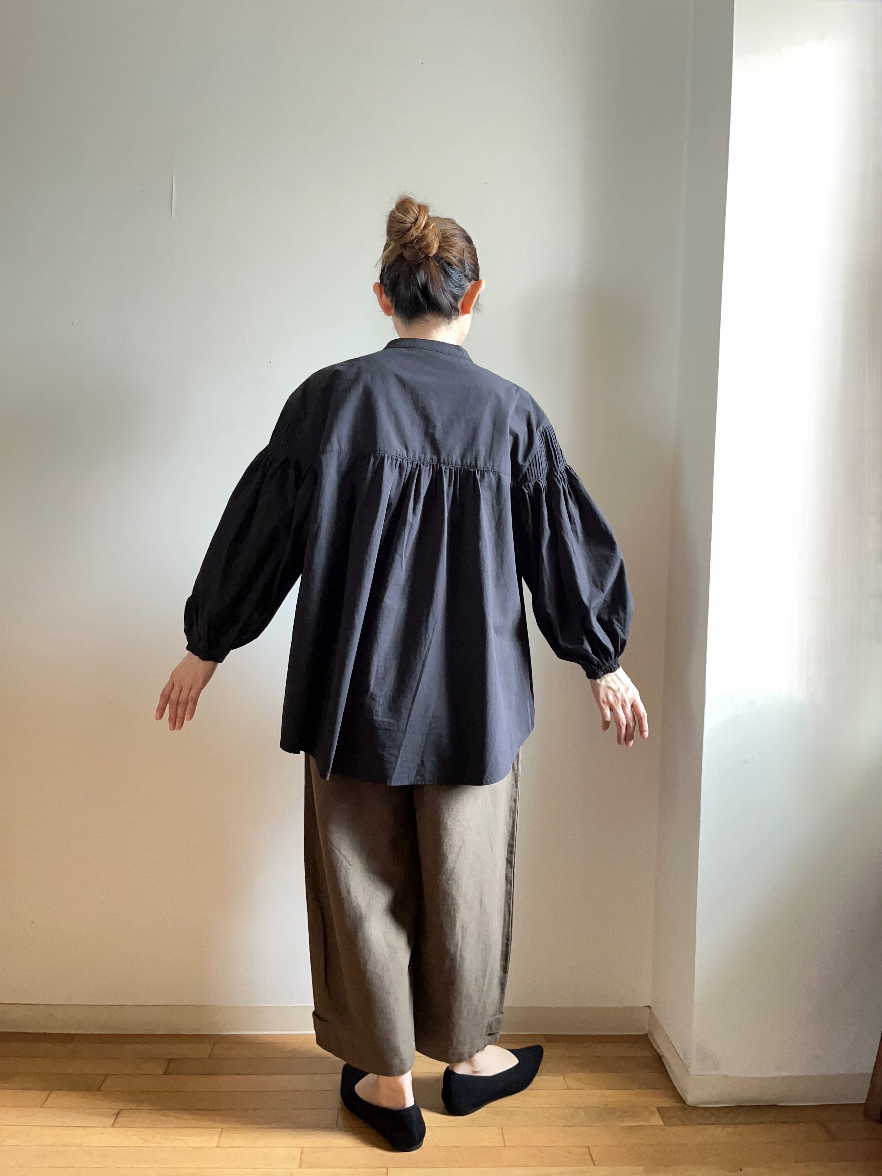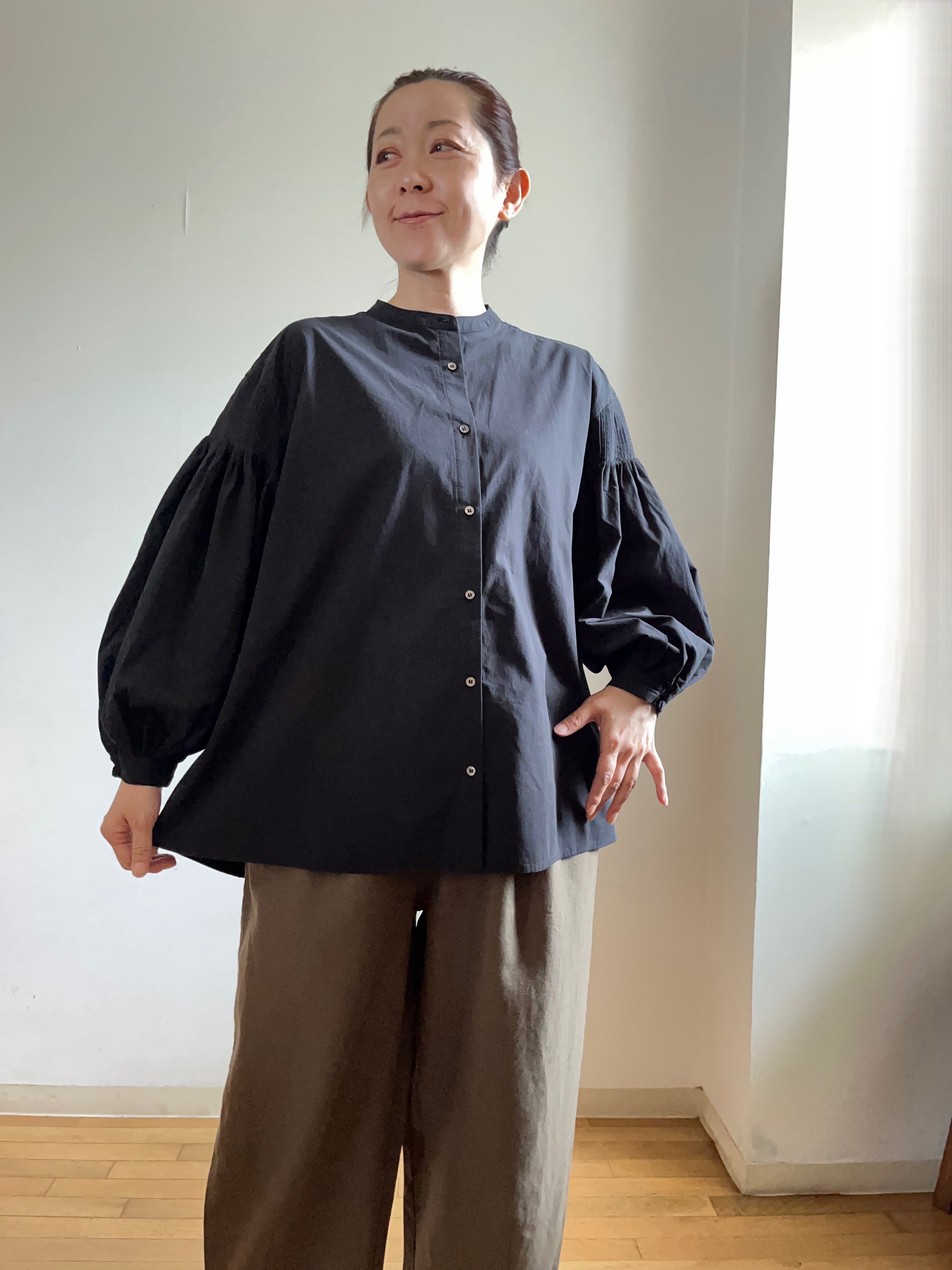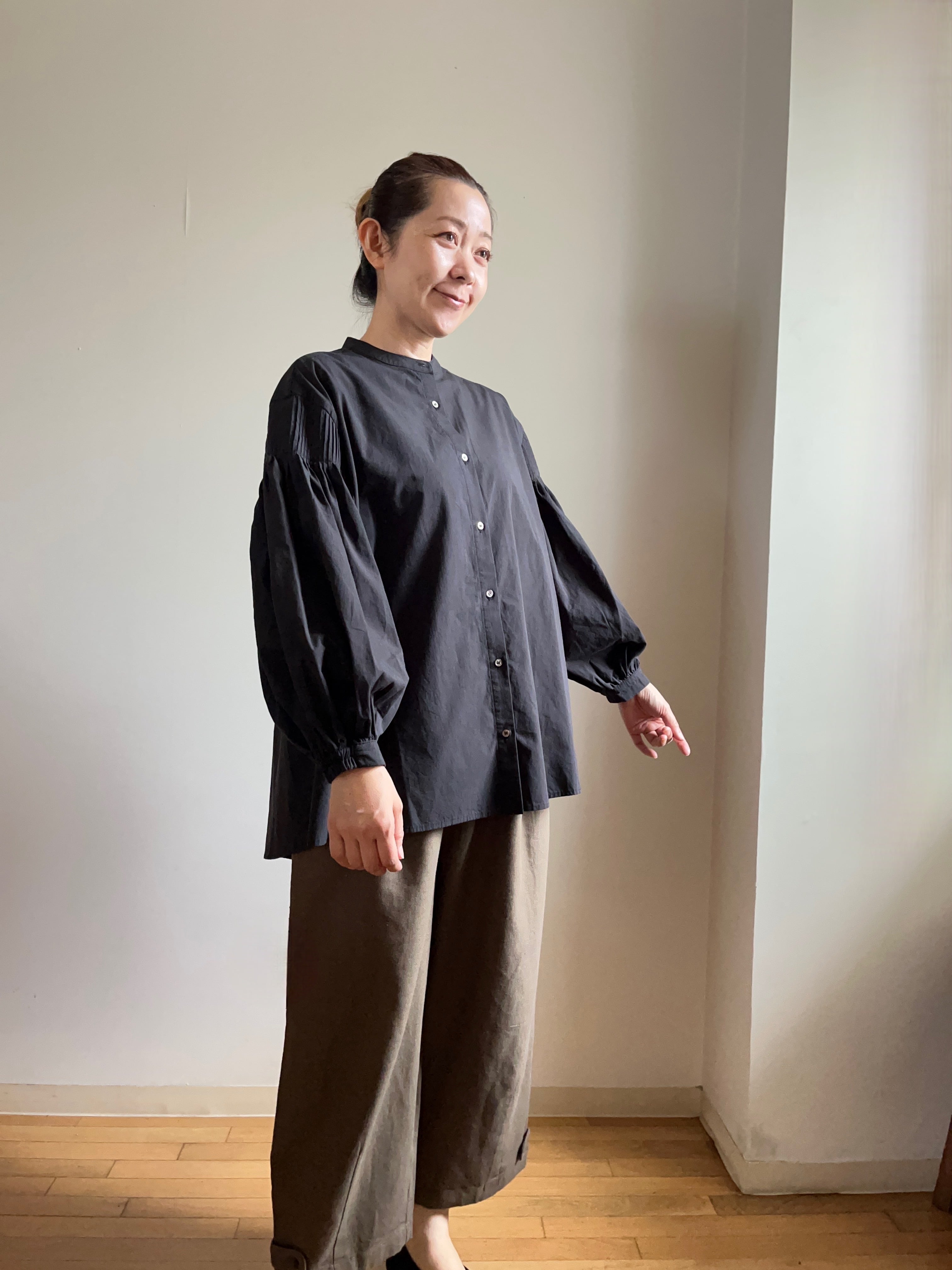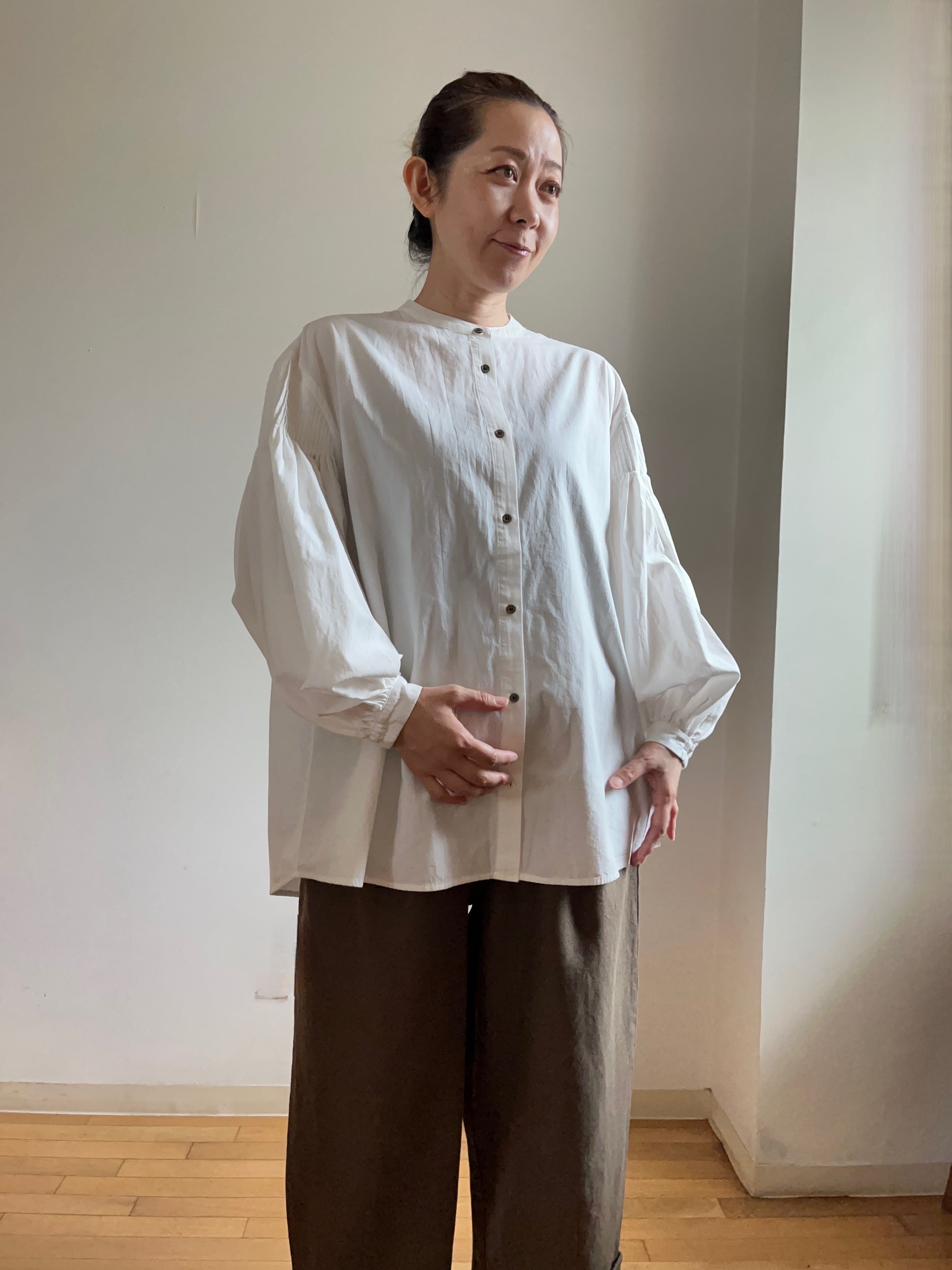 このブラウスは、ふんわりしたお袖と肩のピンタックが特徴的で、柔らかな生地とふんわりとした袖のデザインが特徴で、女性らしさを引き立てながらも快適さを追求しています。風通しの良い素材で、軽やかな着心地を実現しました。