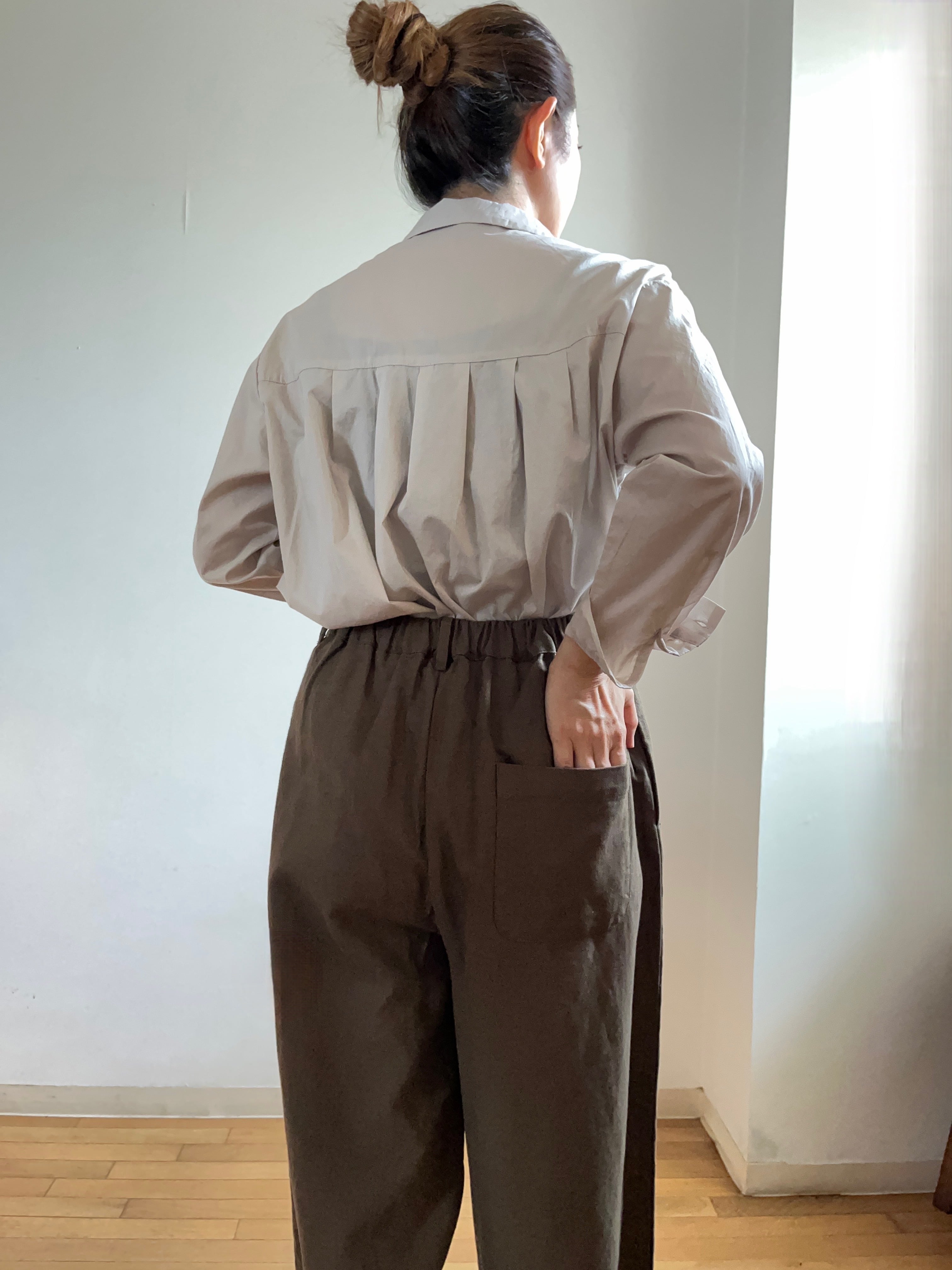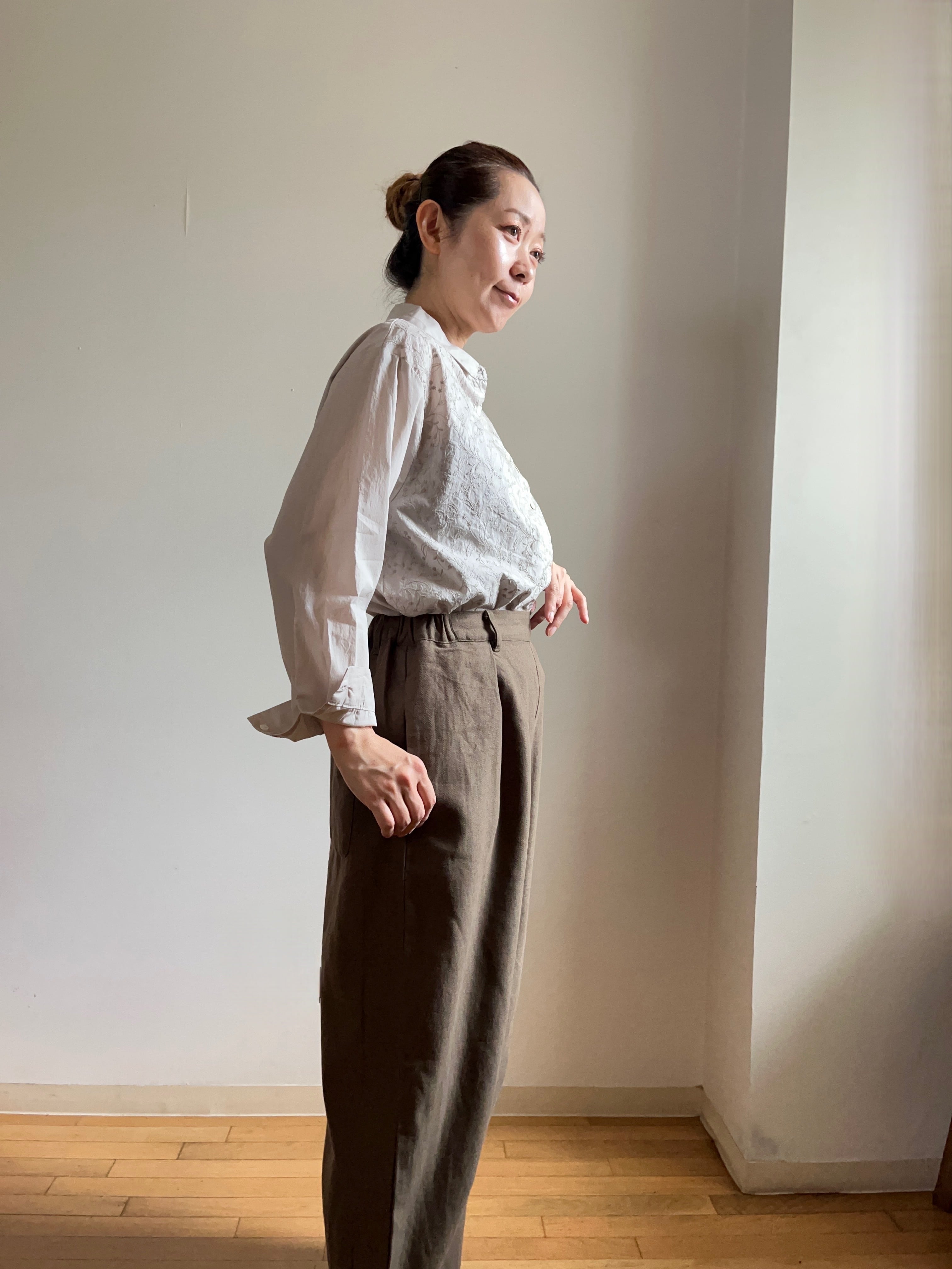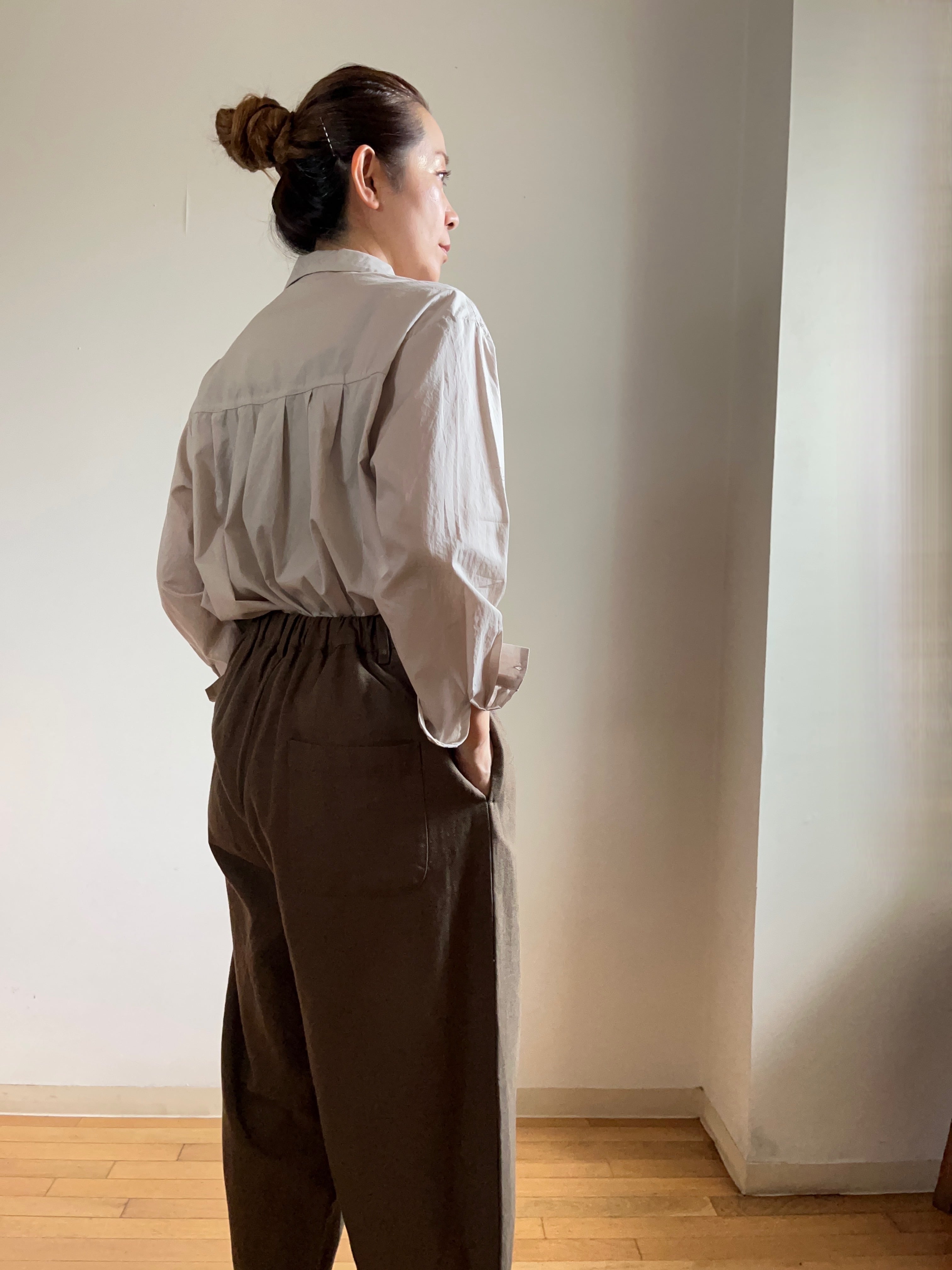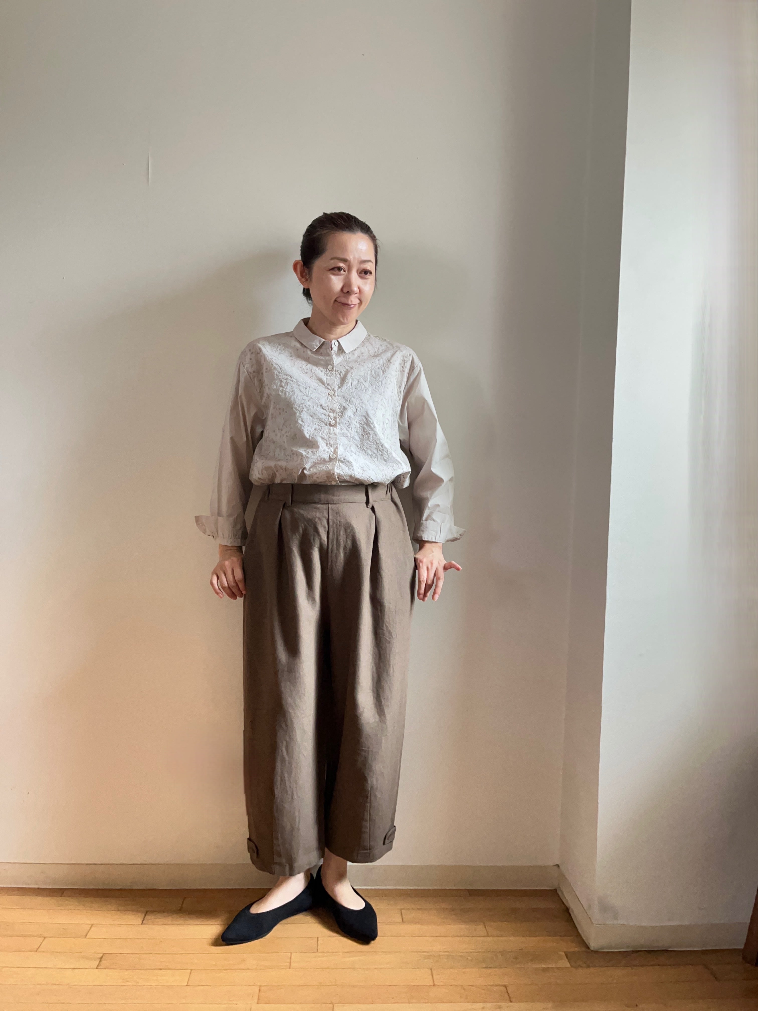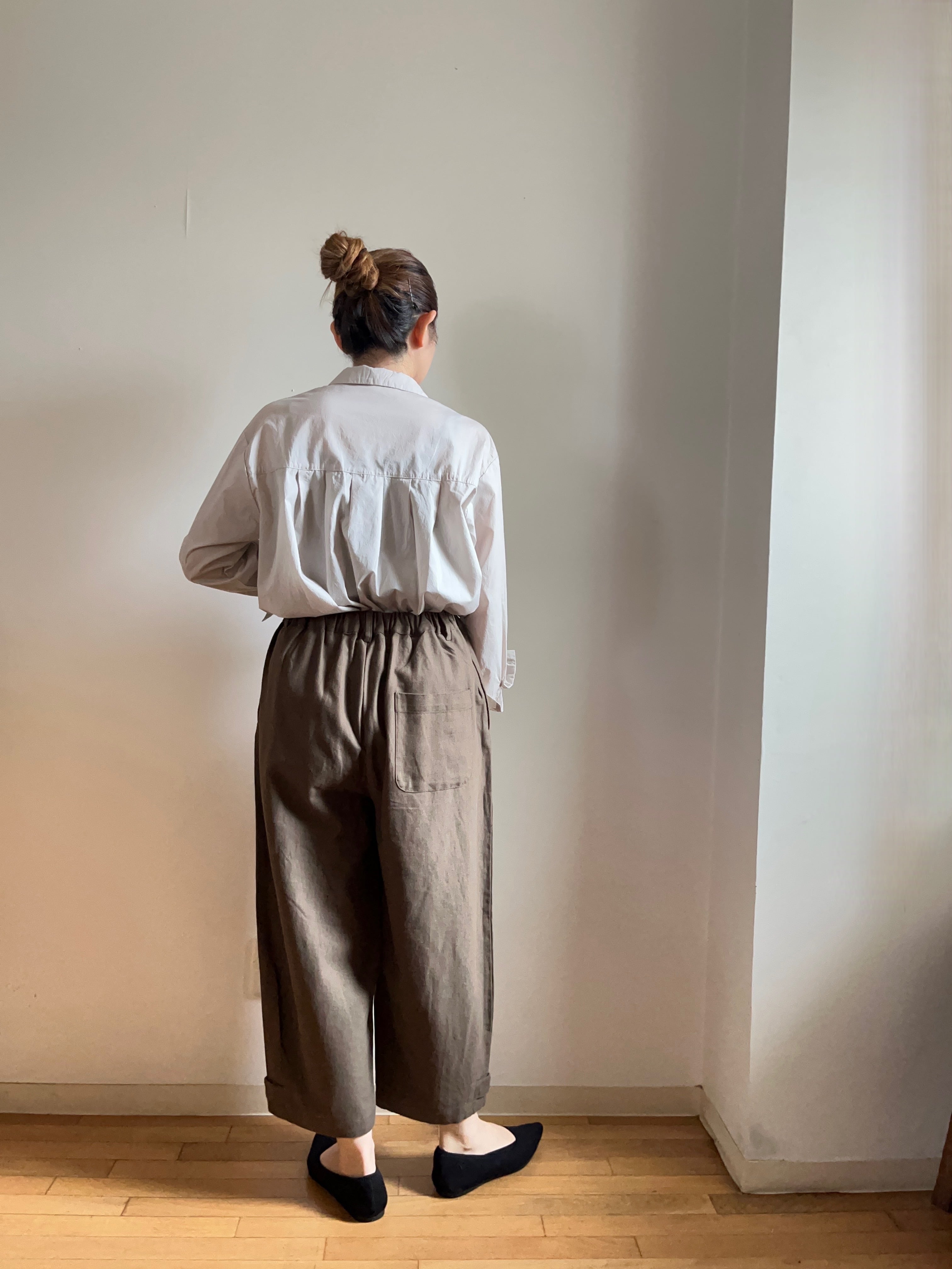 このパンツは、さりげないゆったりとしたシルエットが特徴で、快適さだけでなく、きれいめな印象も与えてくれます。軽やかな綿麻素材で、残暑から秋の季節にぴったりな心地良い着心地を実現しました。