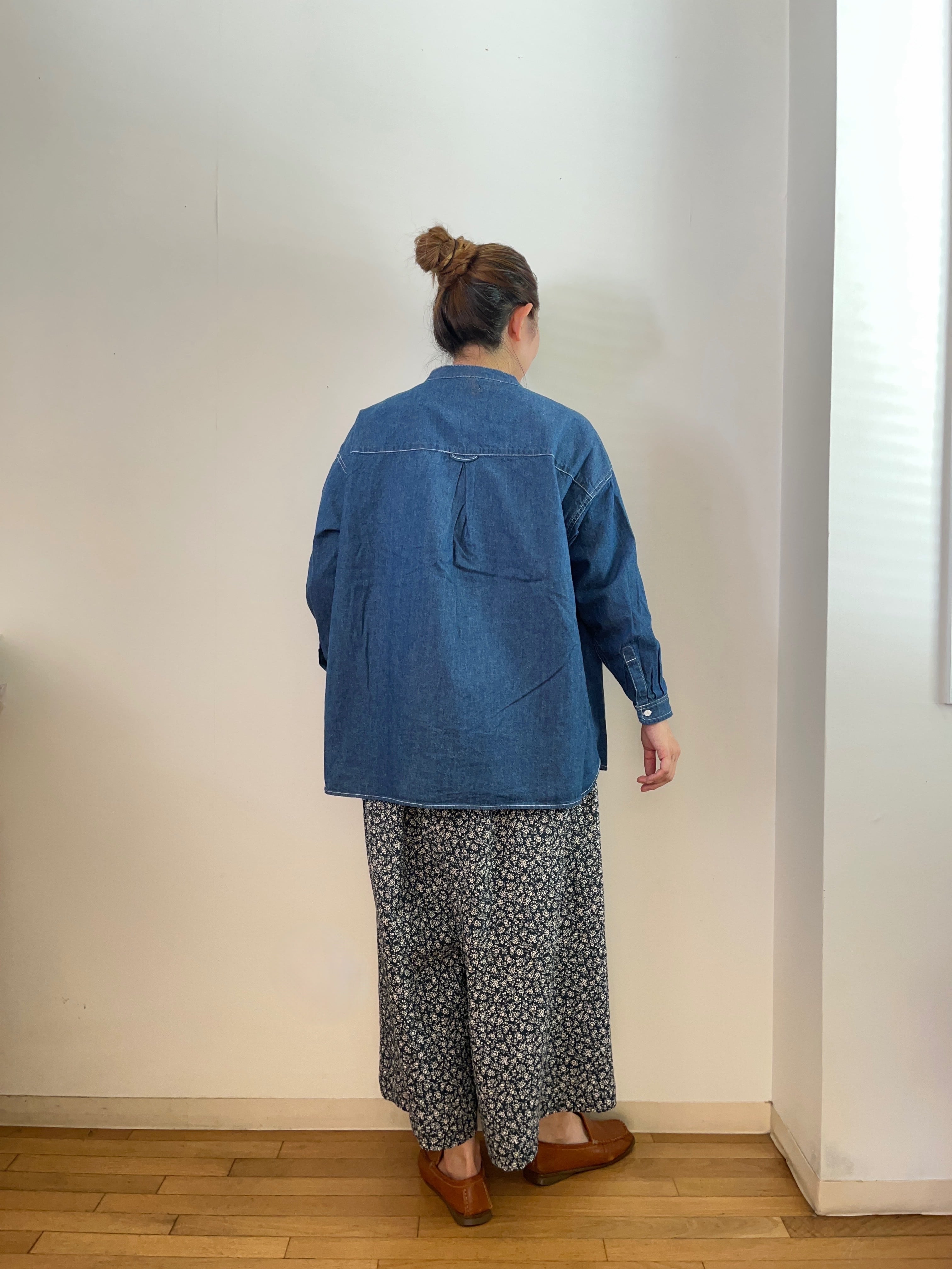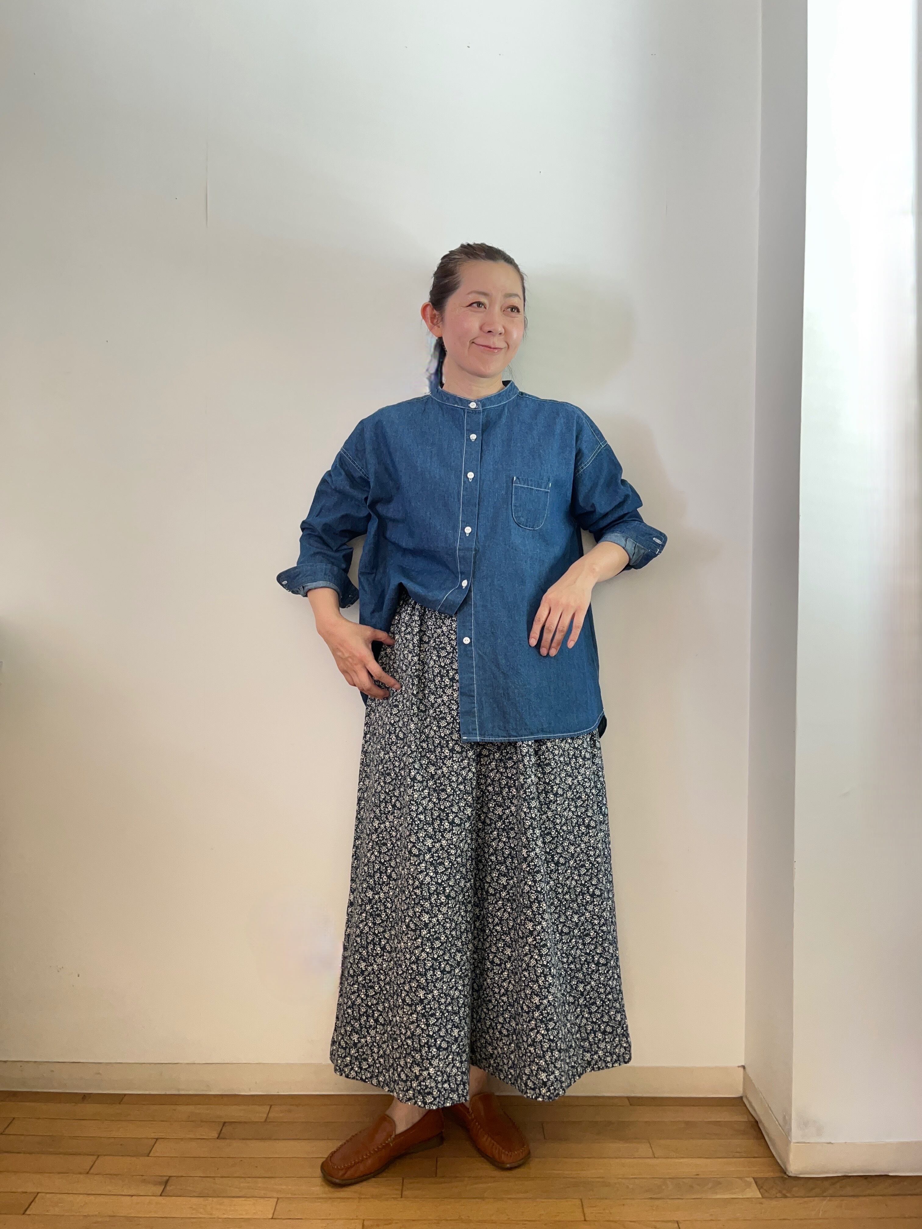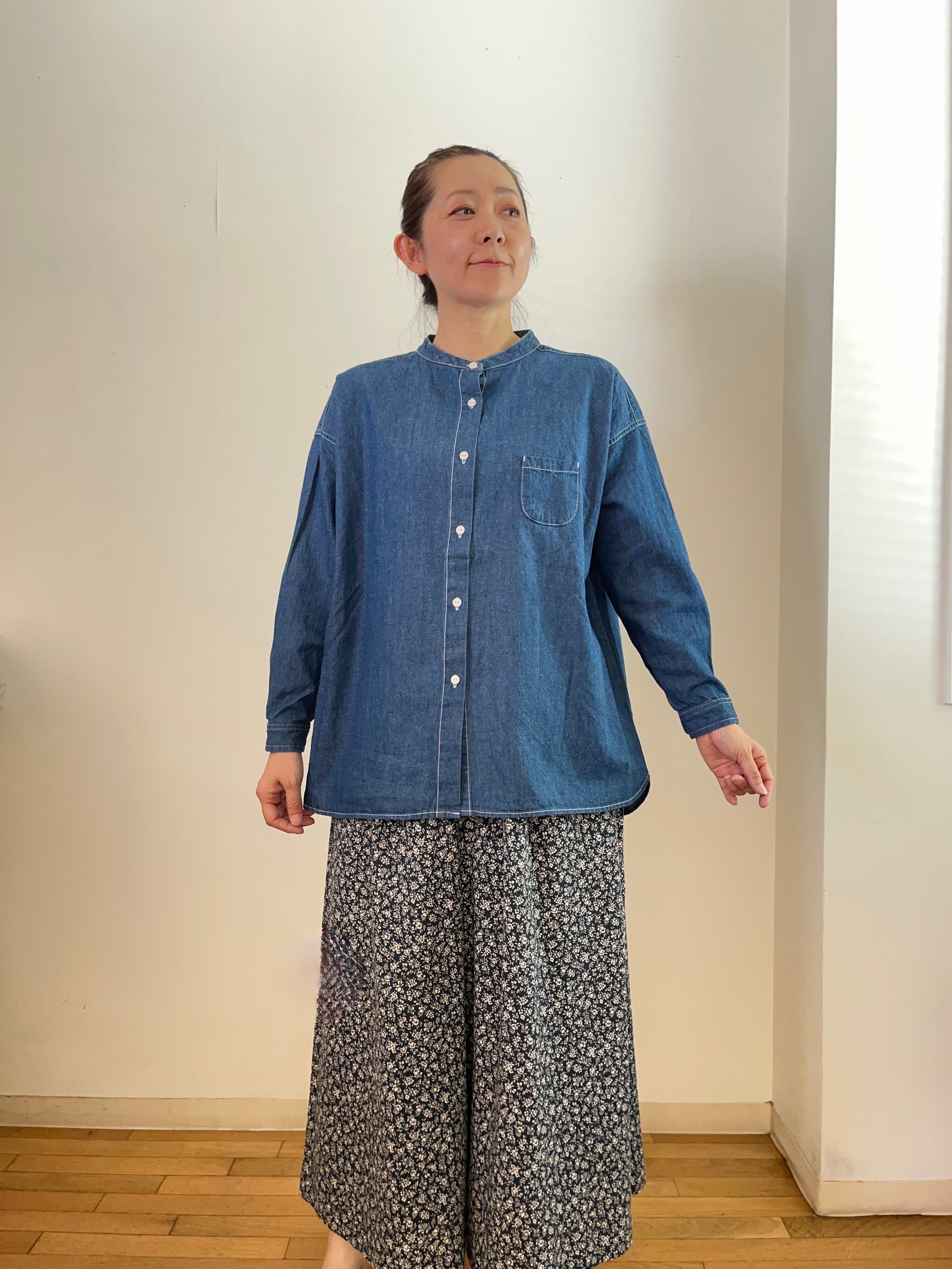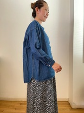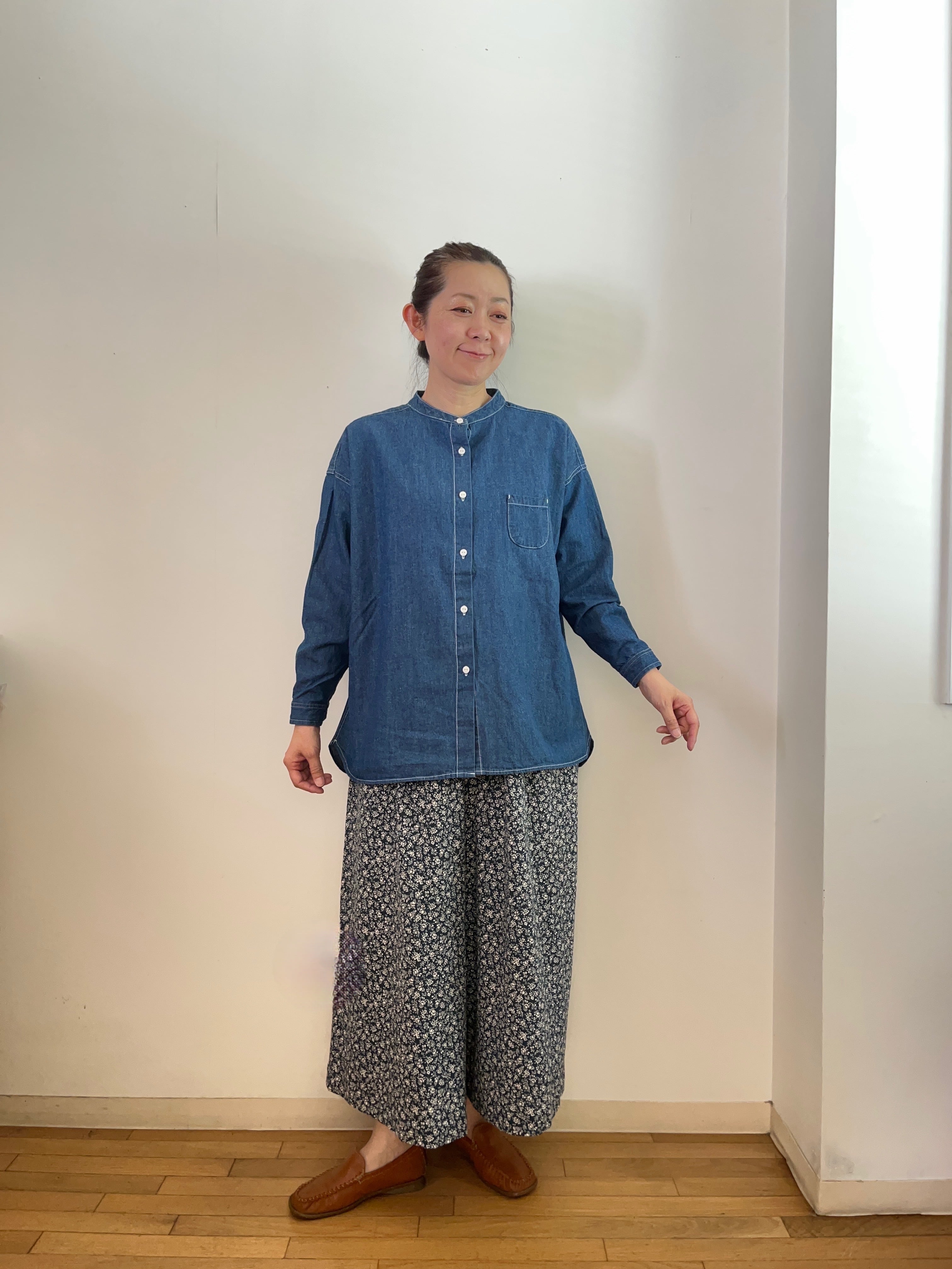 このシャツは、リラックス感のあるゆったりとしたシルエットながら、女性らしいラインをしっかりとキープするデザインが特徴です。デニム素材ならではの上質な風合いと、シンプルなデザインは、様々なスタイルに合わせやすく、長く愛用できるアイテムです!