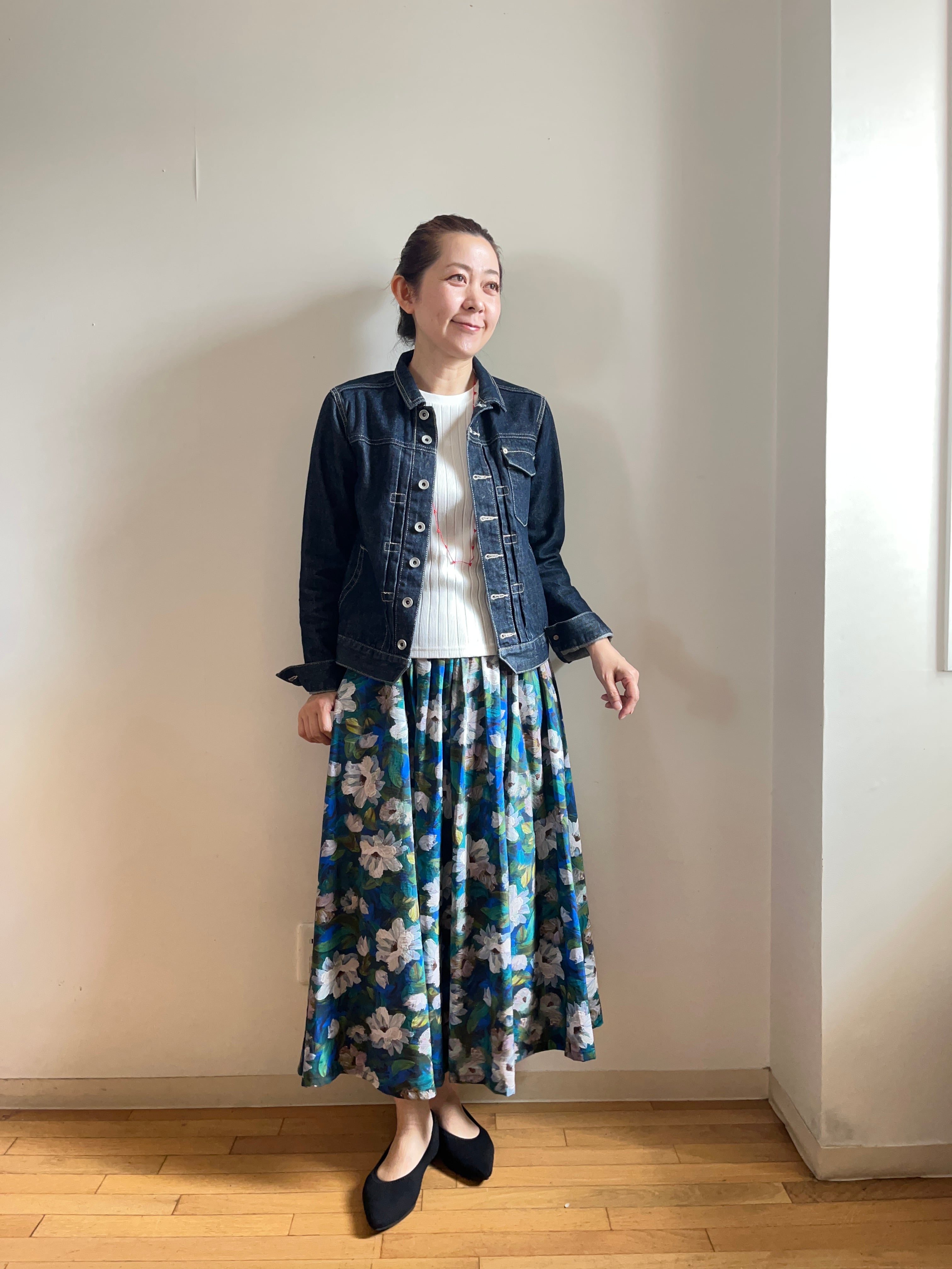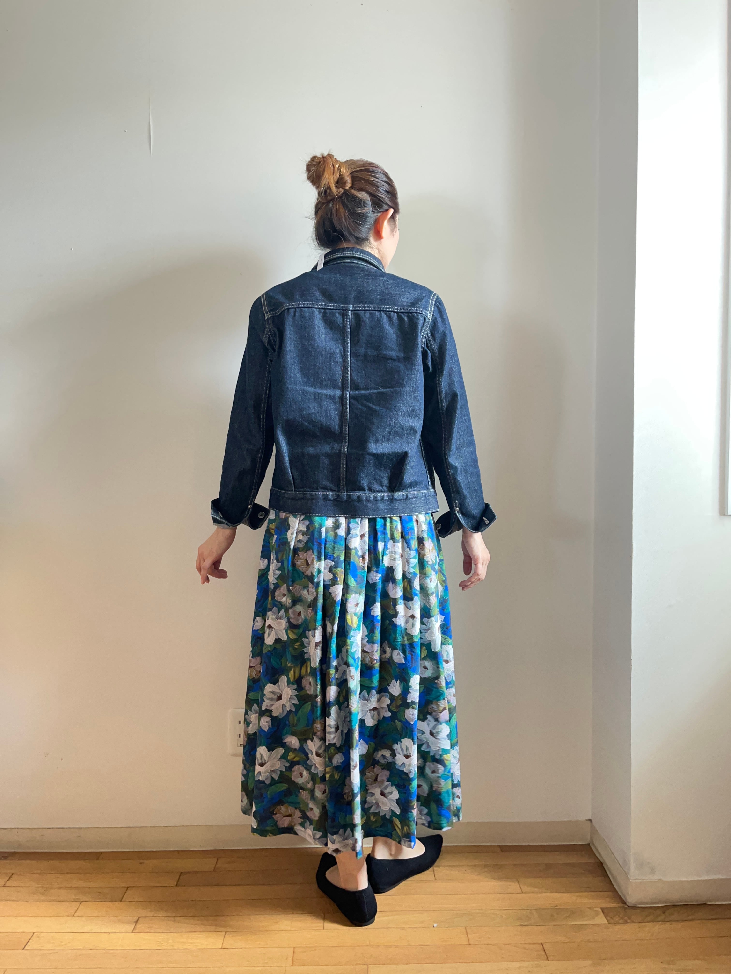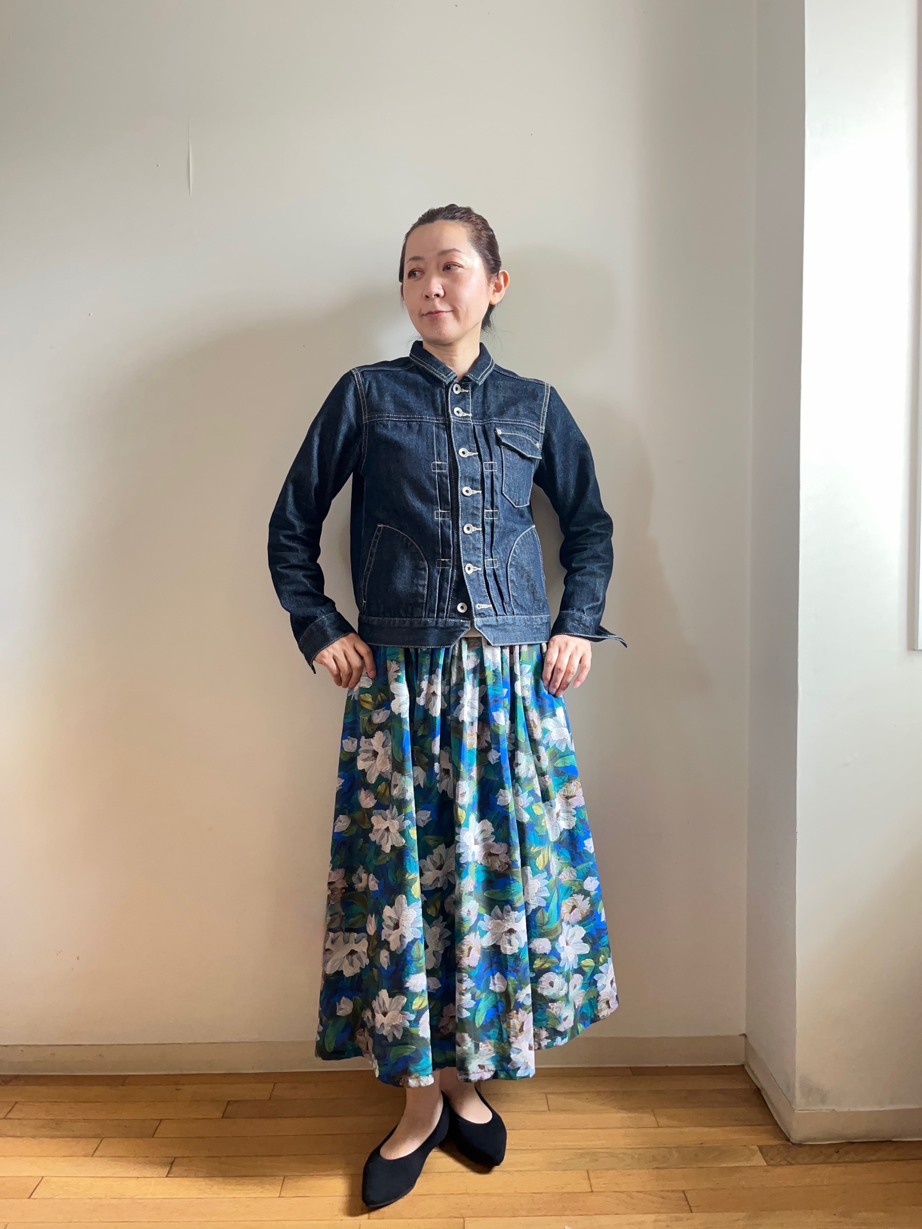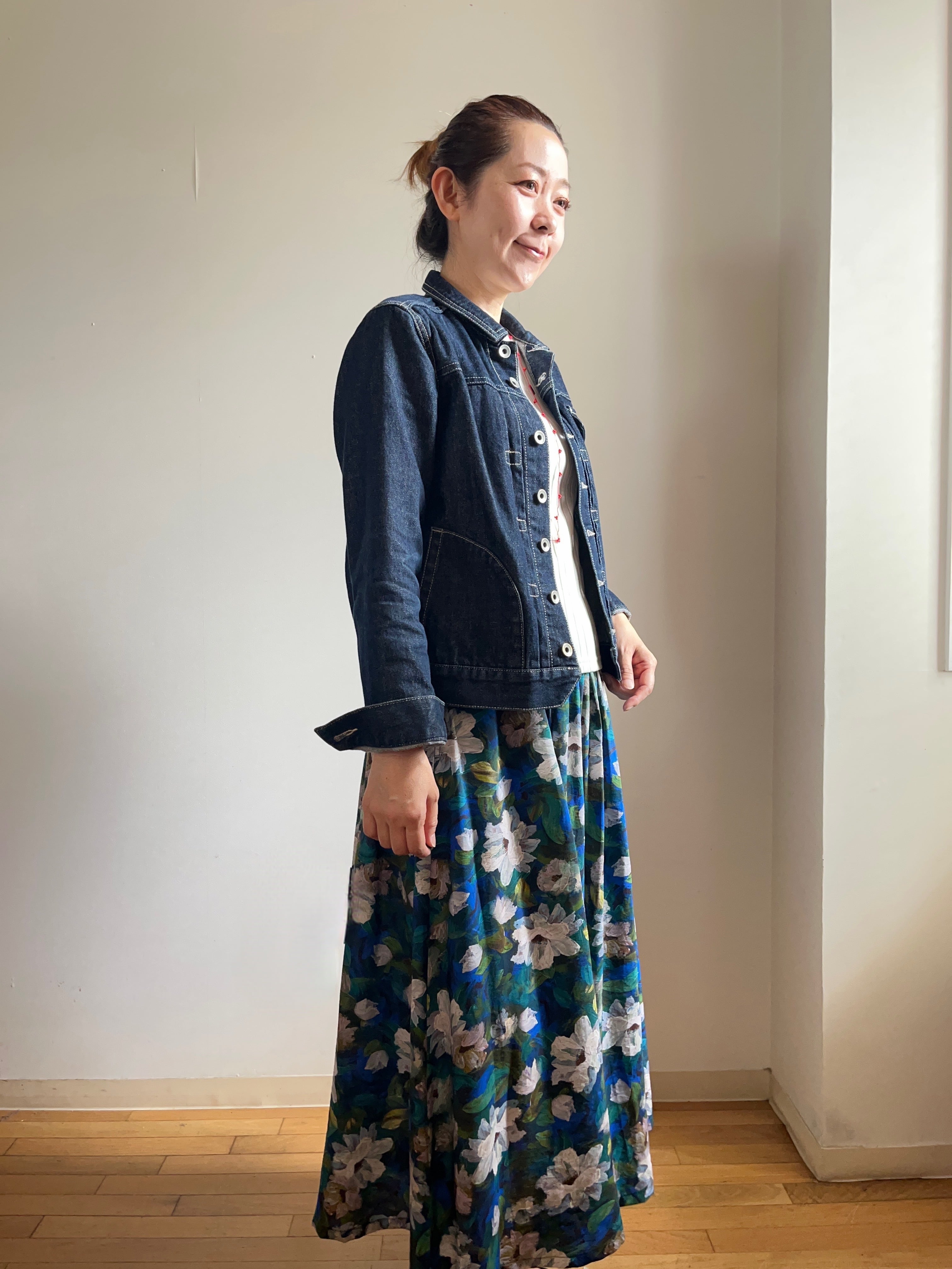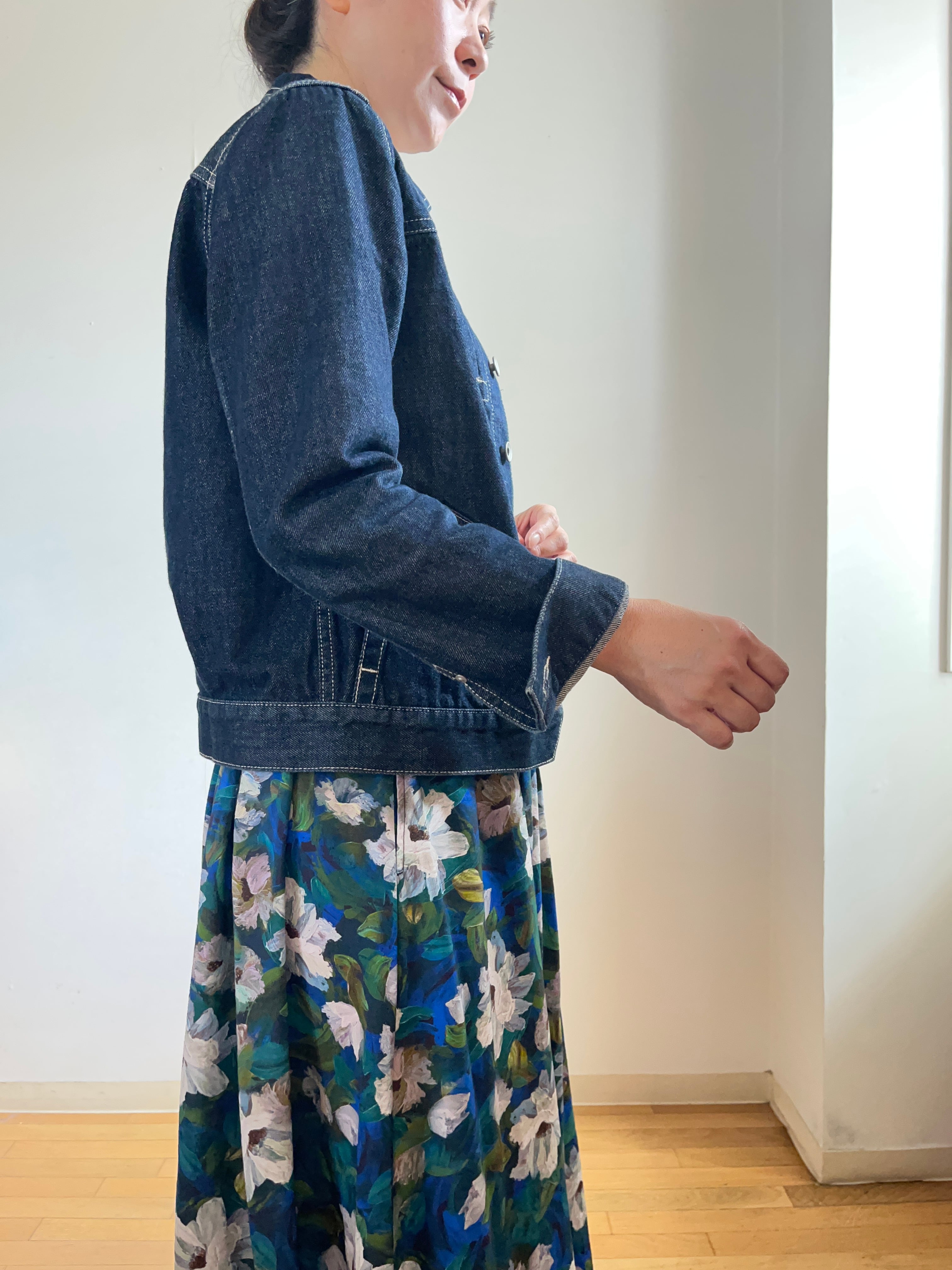 コンパクトでスッキリしたシルエットで、このデニムジャケットは、一枚で主役にもなりますし、重ね着としても活用できます。お気に入りのトップスやボトムスとコーディネートして、あなたらしいスタイルを楽しんでください。