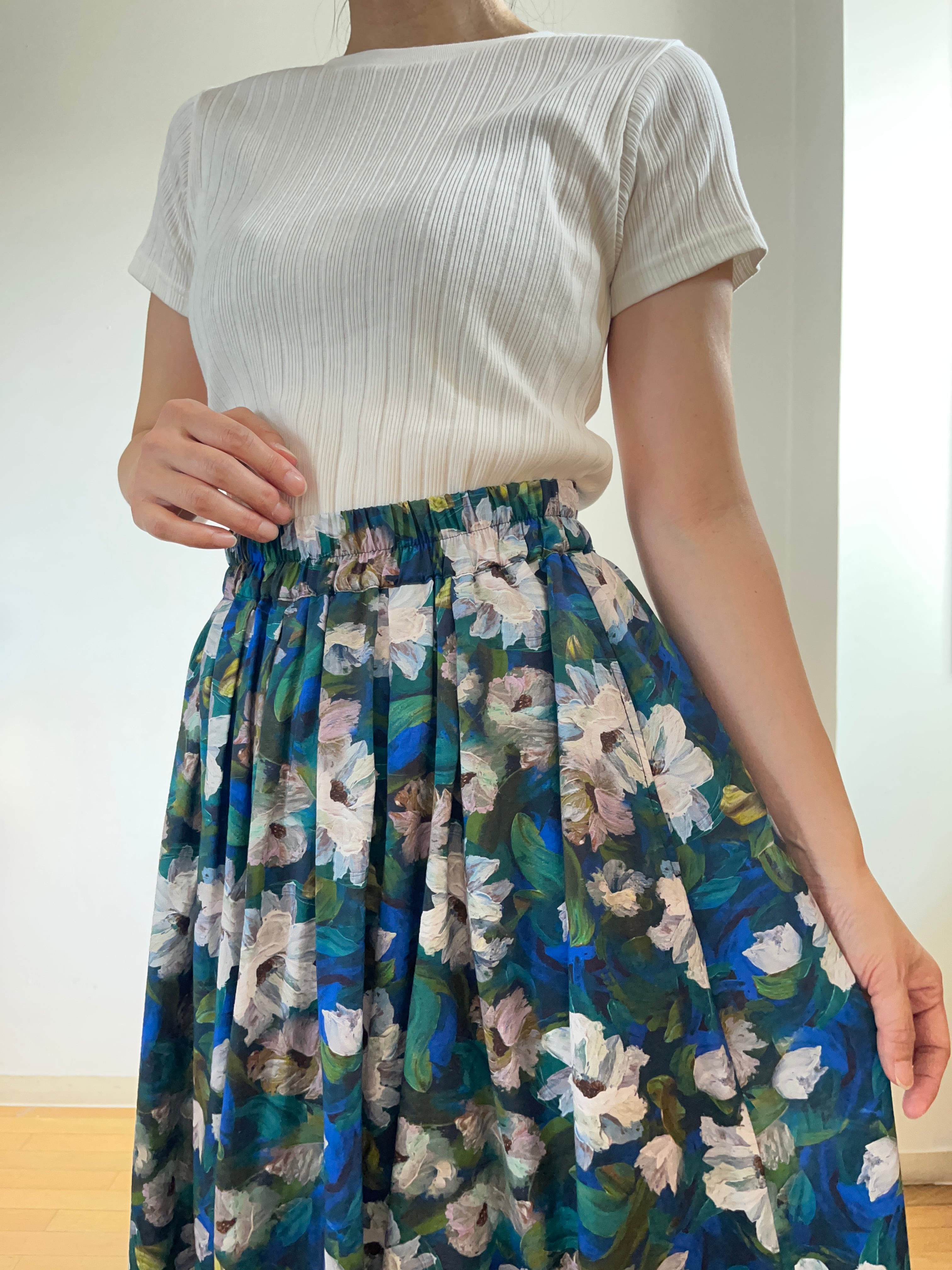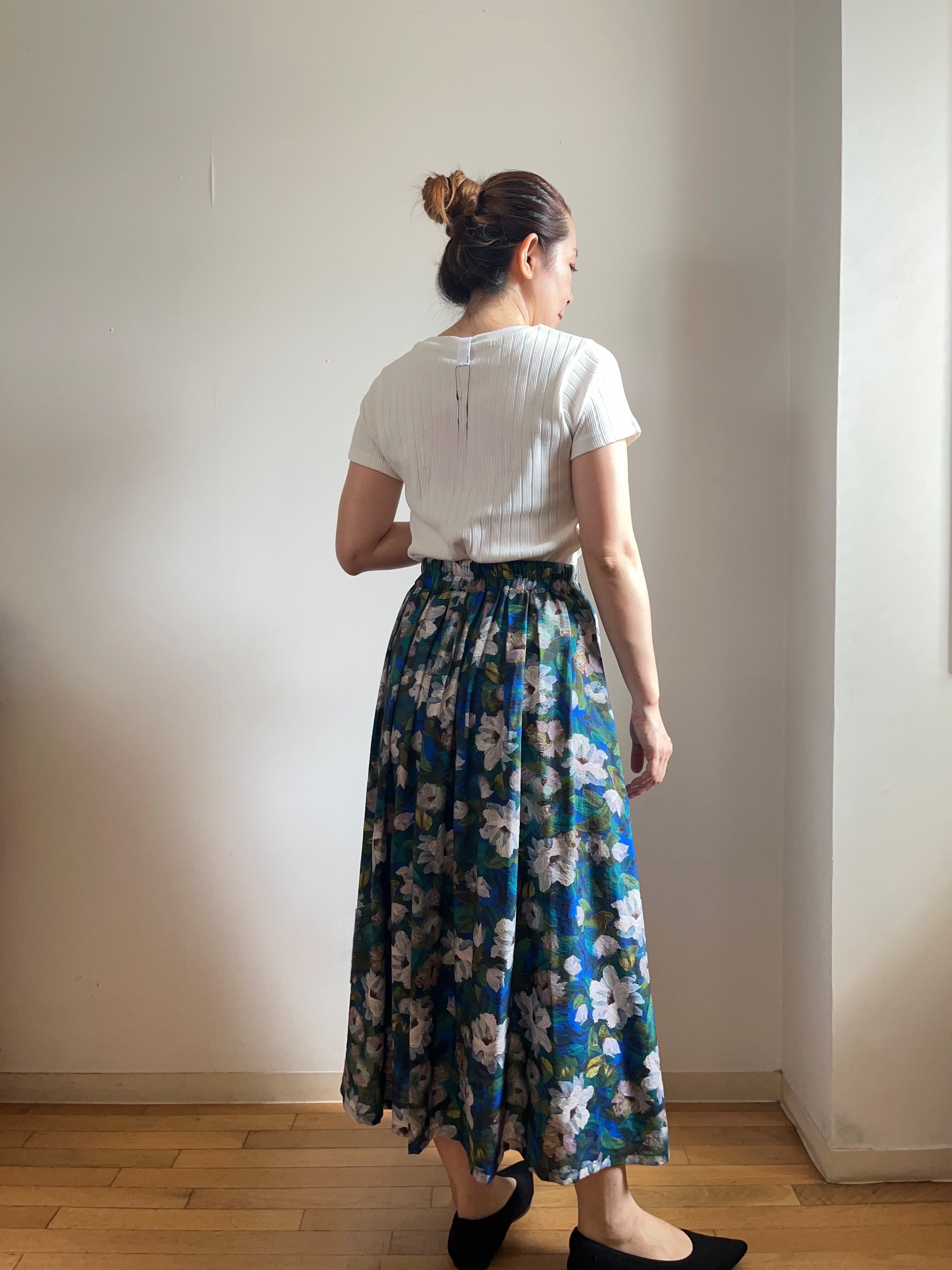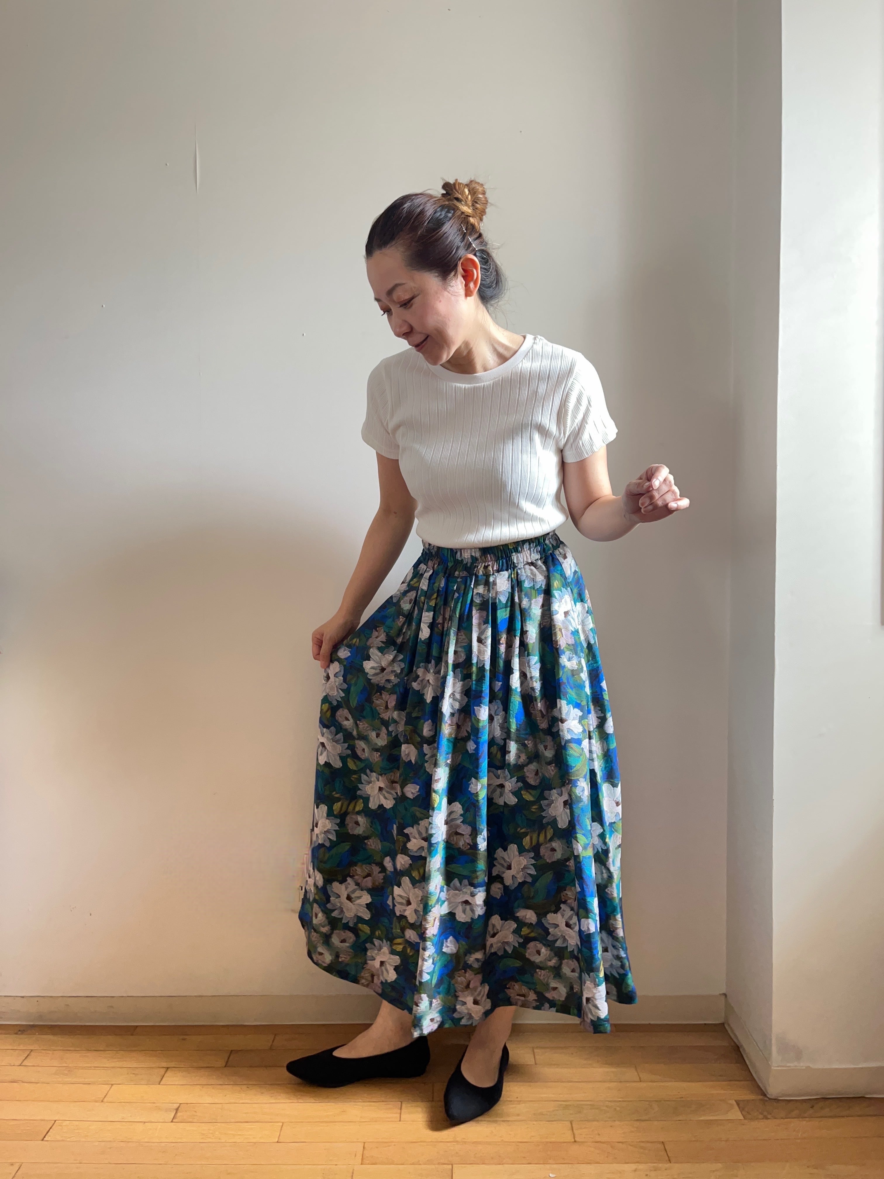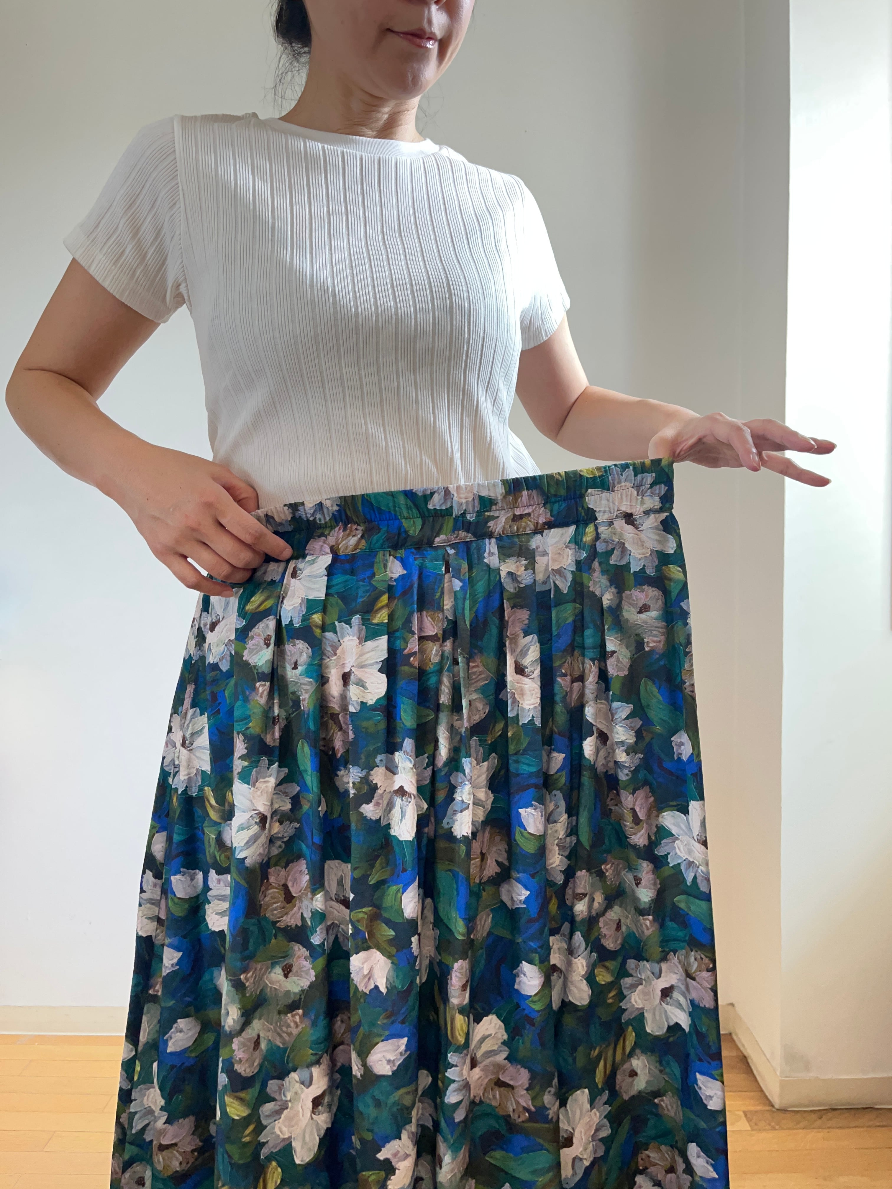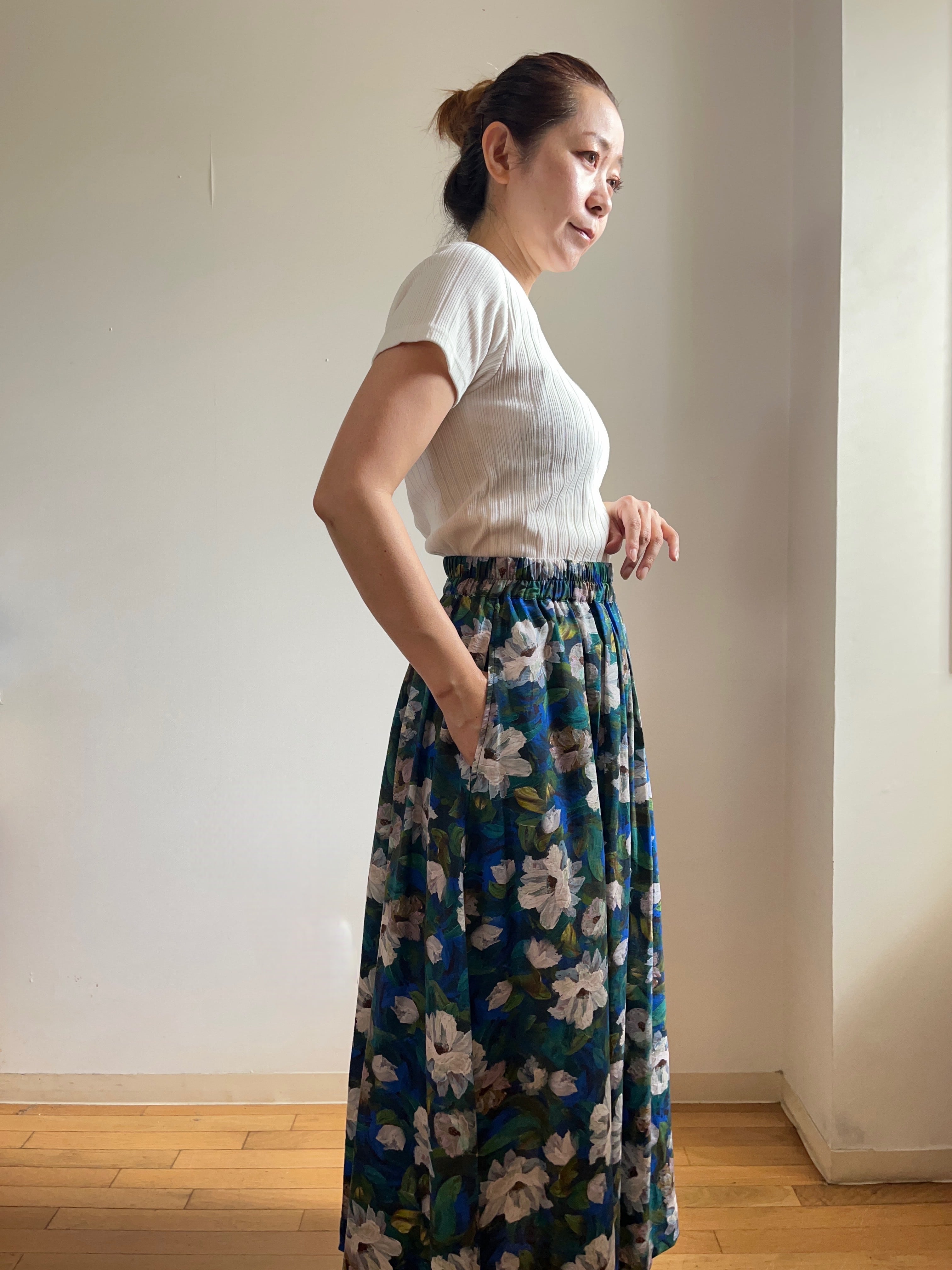 着るだけで華やかさと快適さを同時に楽しめる、大花柄のスカートです!