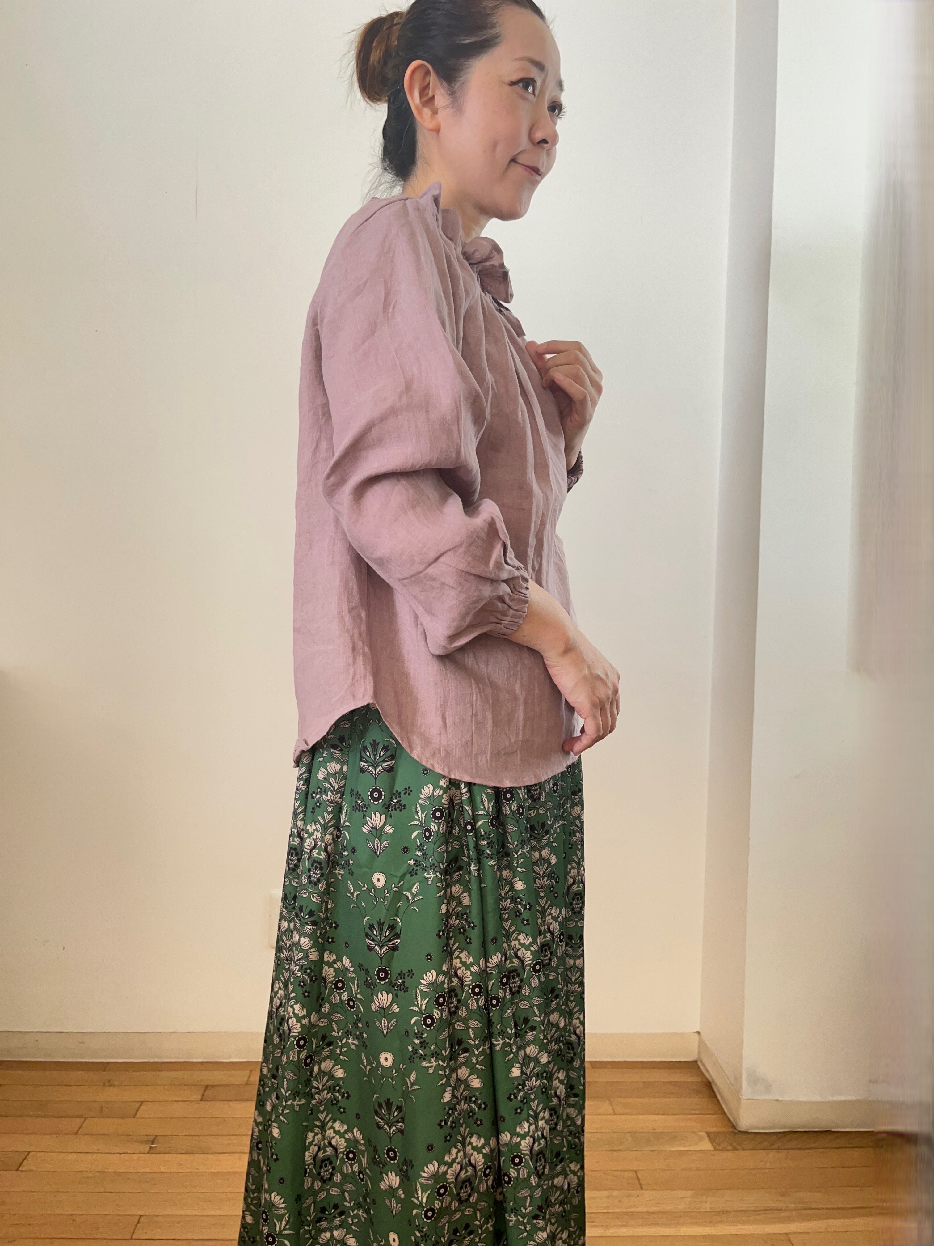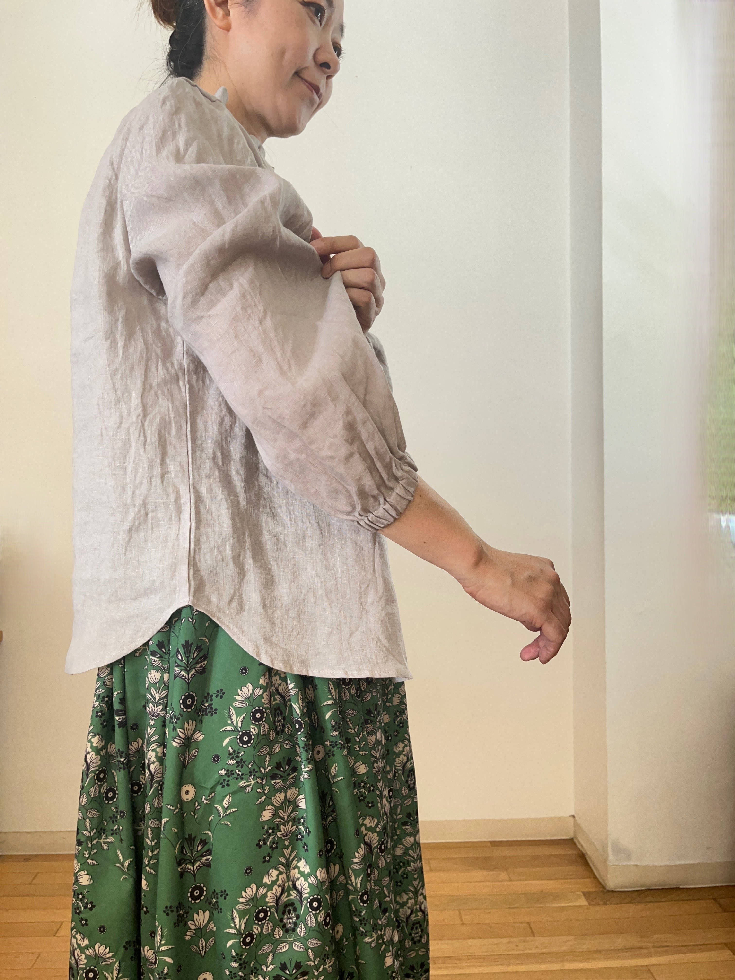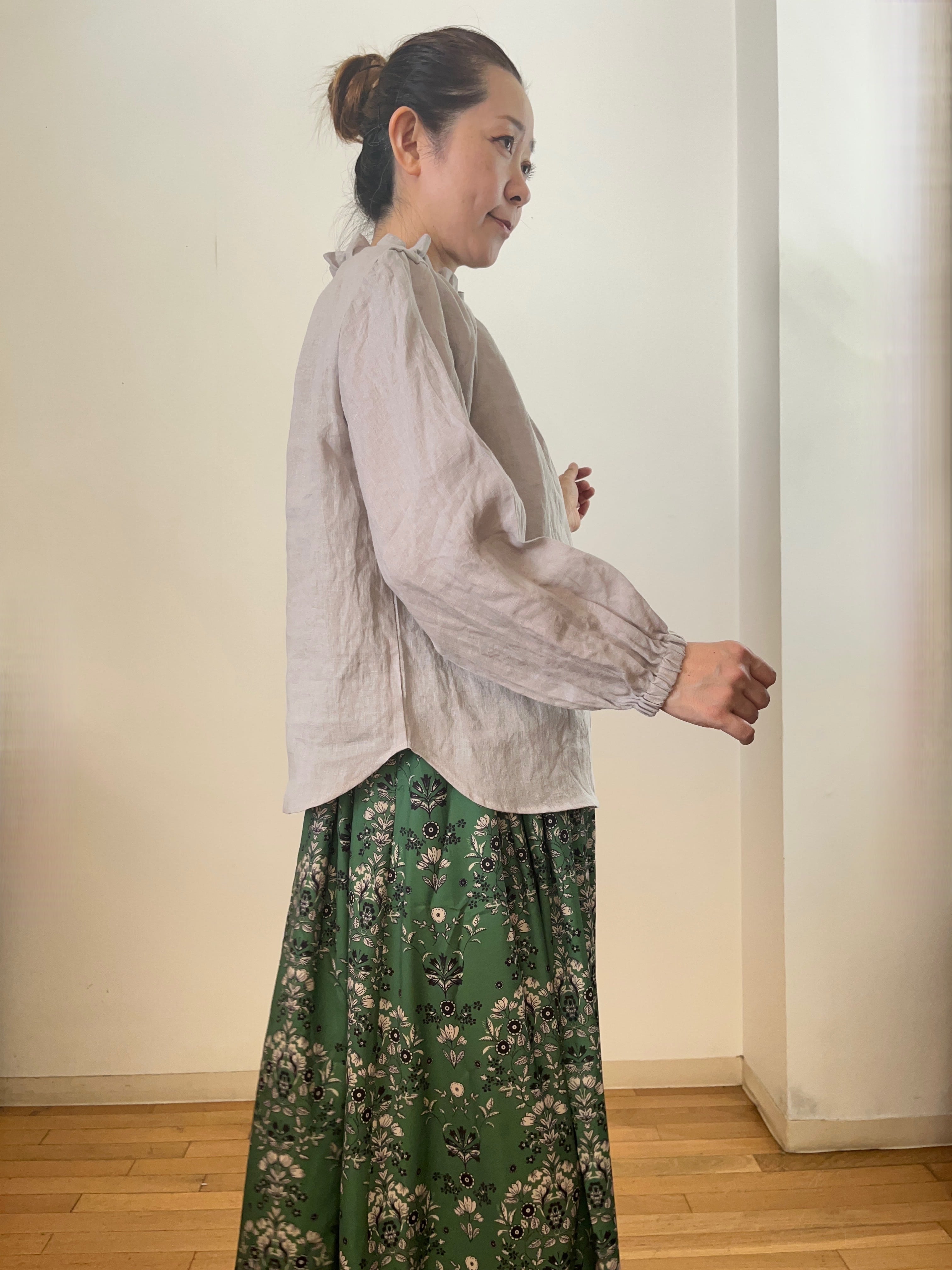 さらっとした生地感と、リラックスしたシルエットが魅力のこのブラウスは、通気性も良く、今の暑い時期から秋まで長いシーズン、快適に着用できます。お気に入りのボトムスや小物と組み合わせて、あなたらしいスタイルをぜひ楽しんでください。