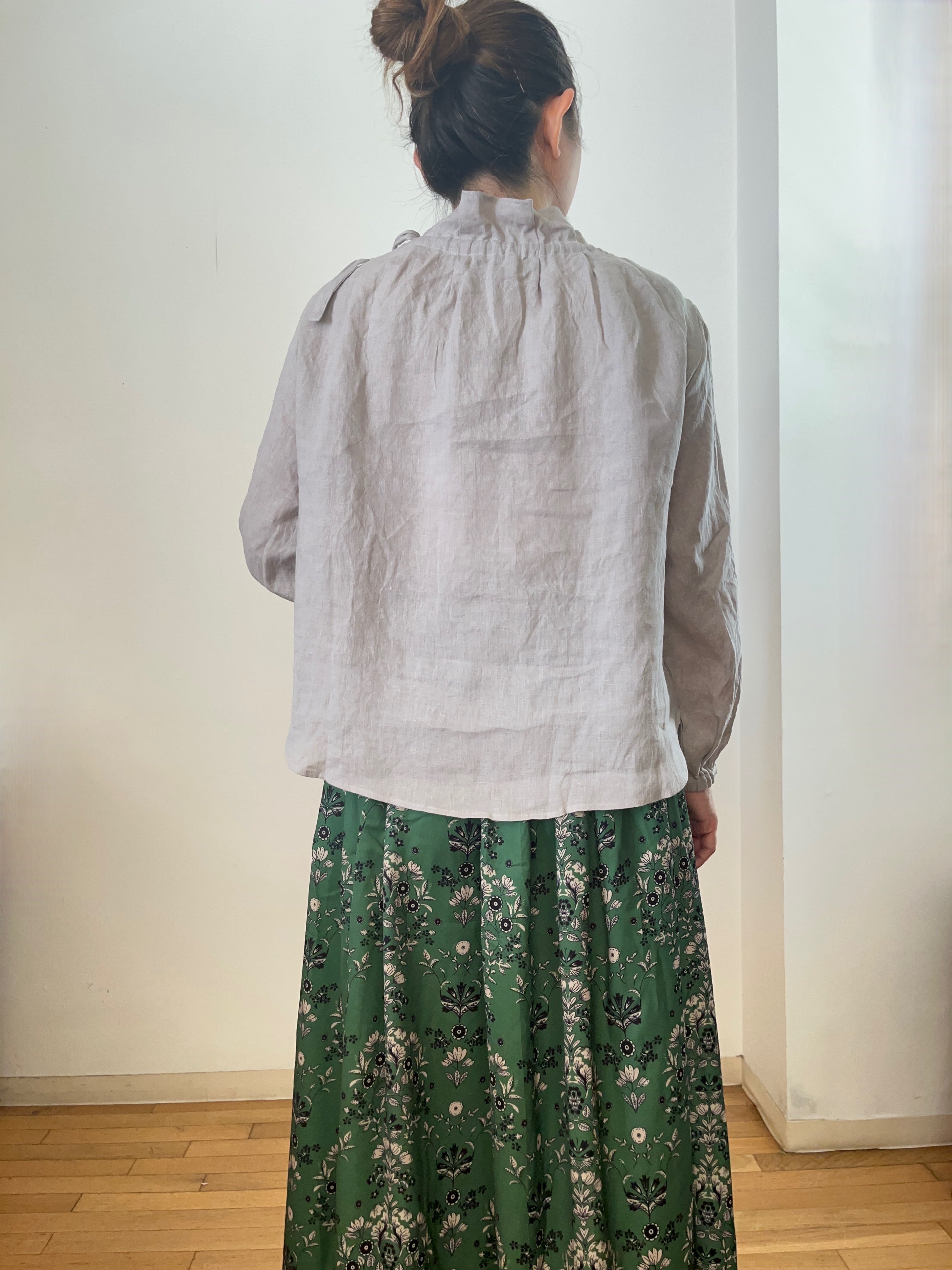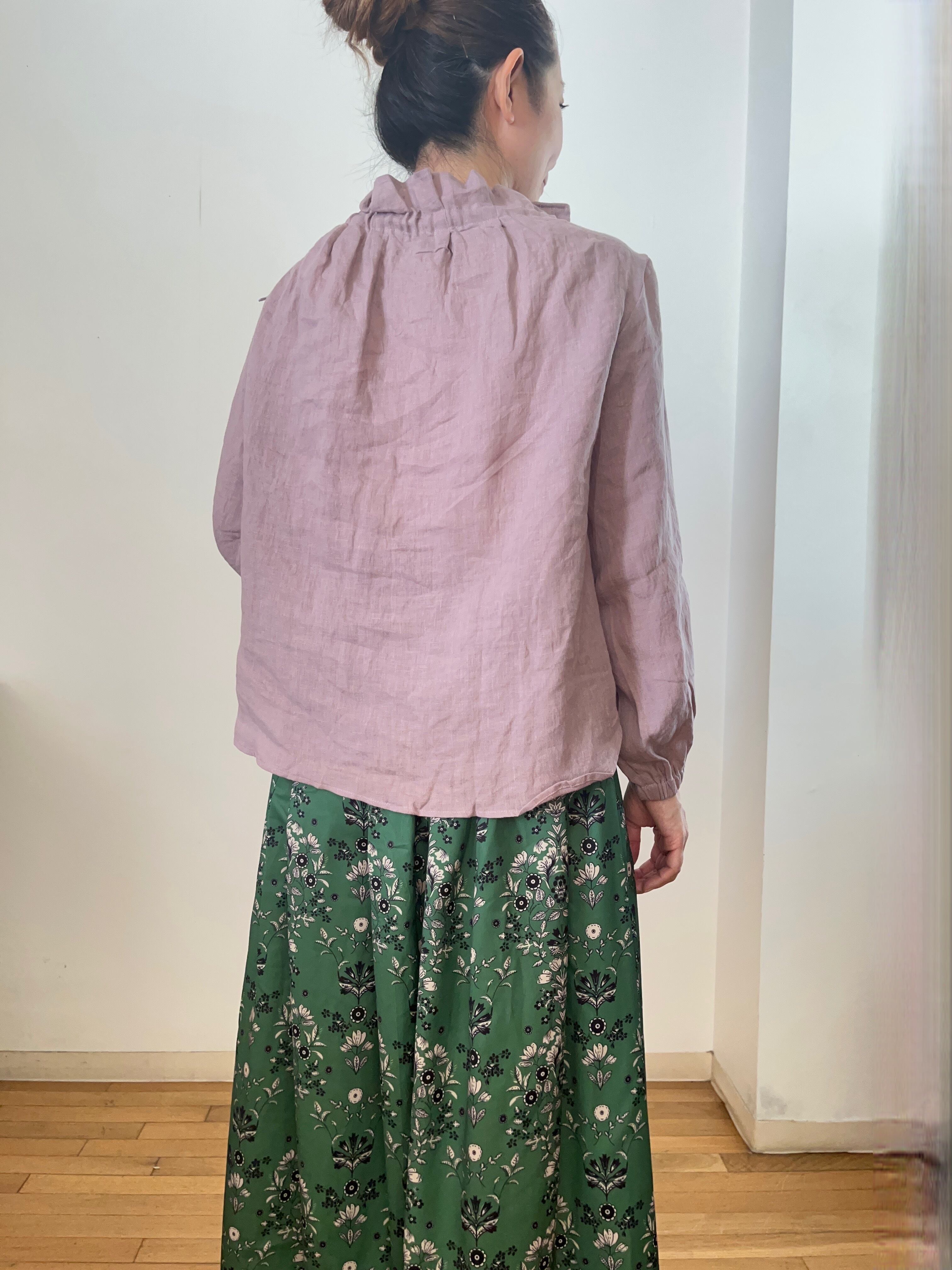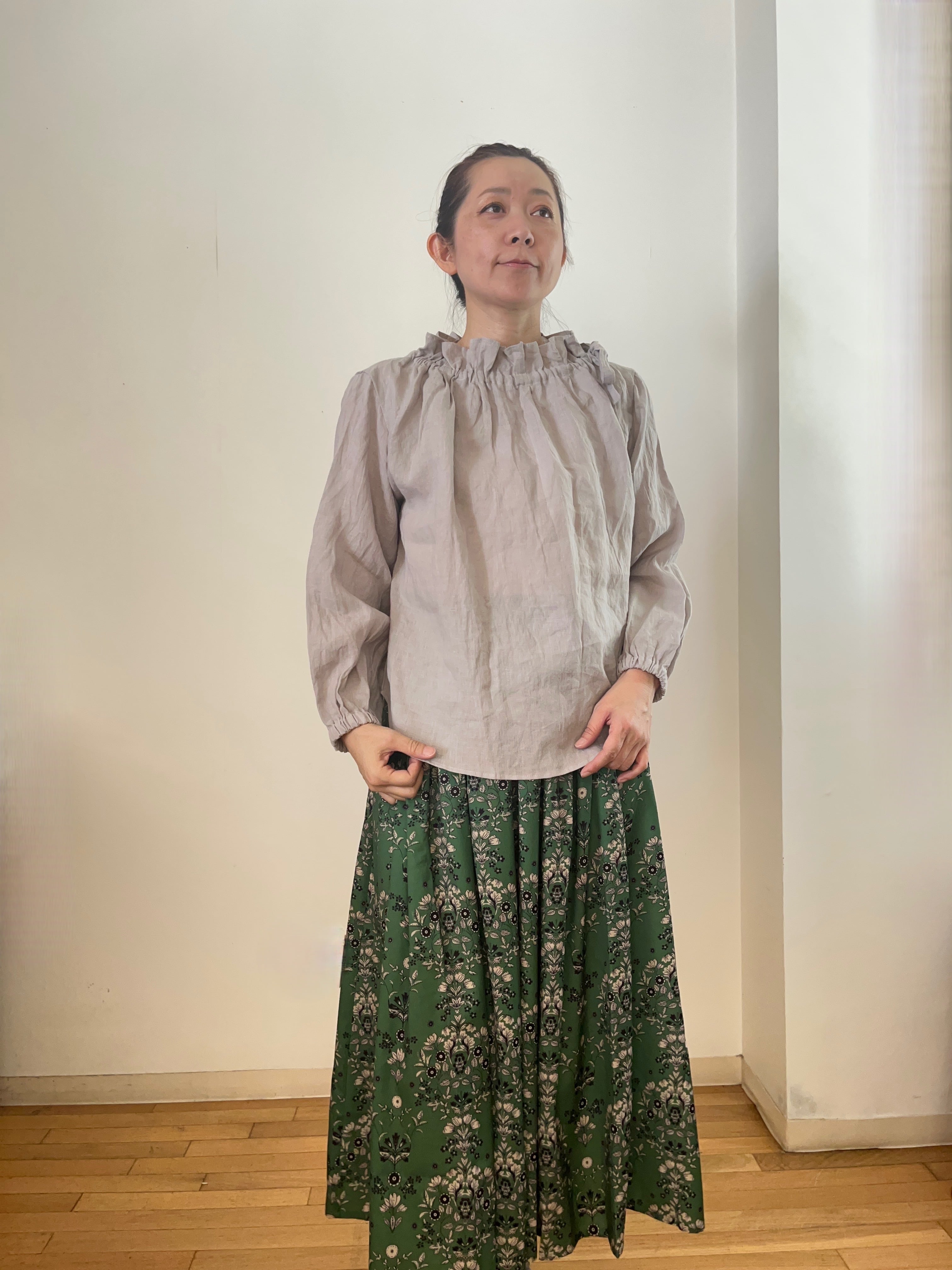 さらっとした生地感と、リラックスしたシルエットが魅力のこのブラウスは、通気性も良く、今の暑い時期から秋まで長いシーズン、快適に着用できます。お気に入りのボトムスや小物と組み合わせて、あなたらしいスタイルをぜひ楽しんでください。