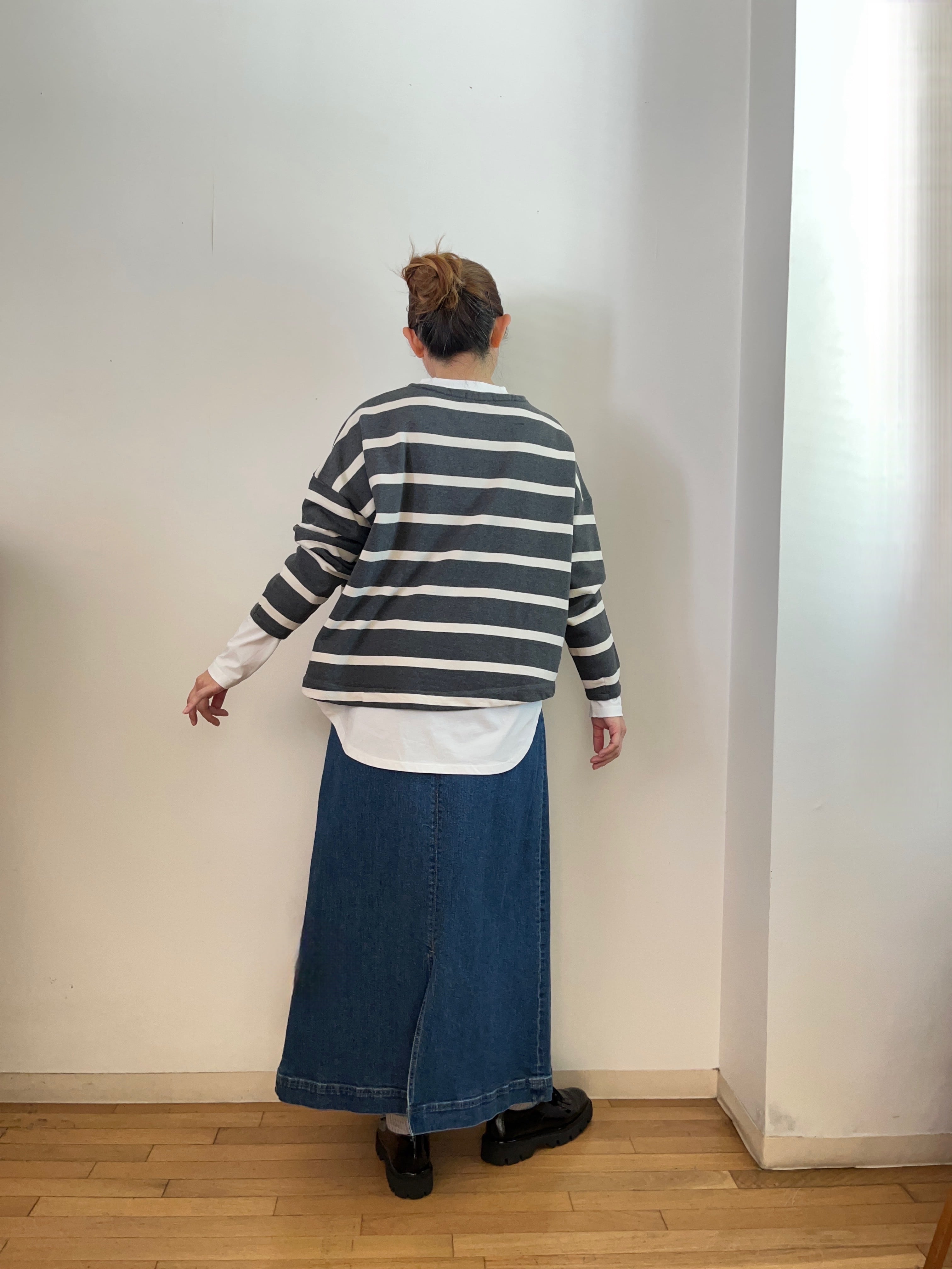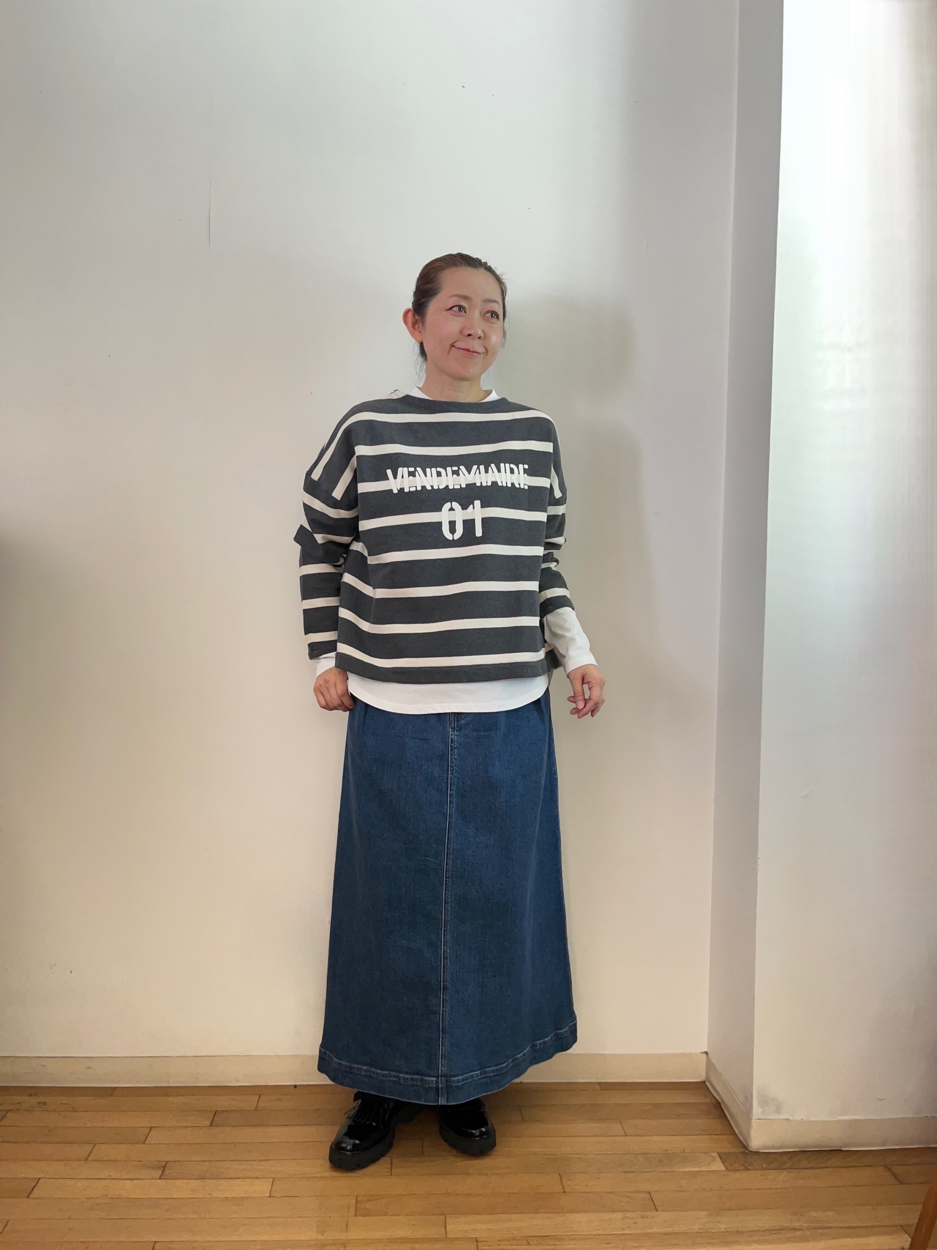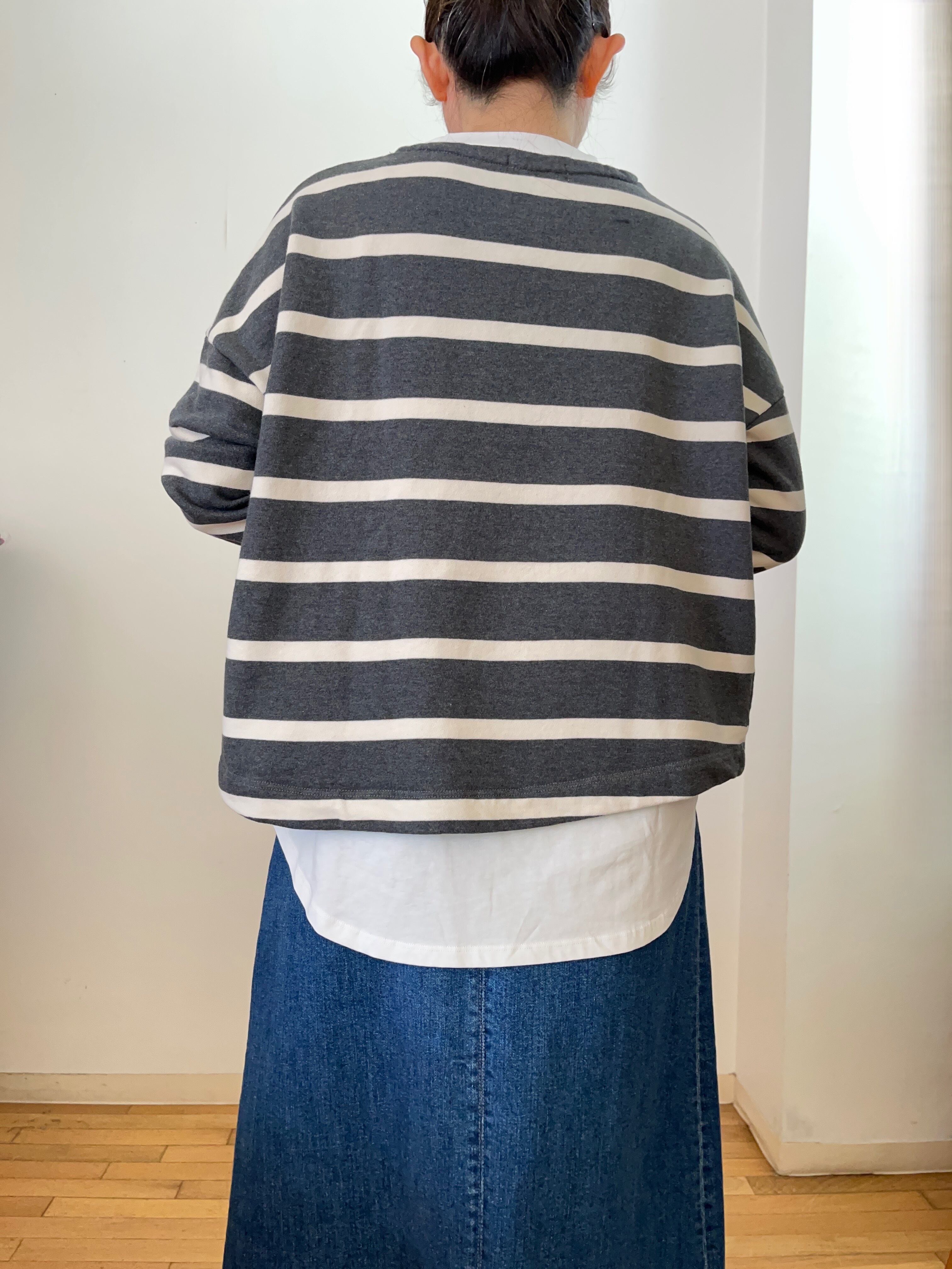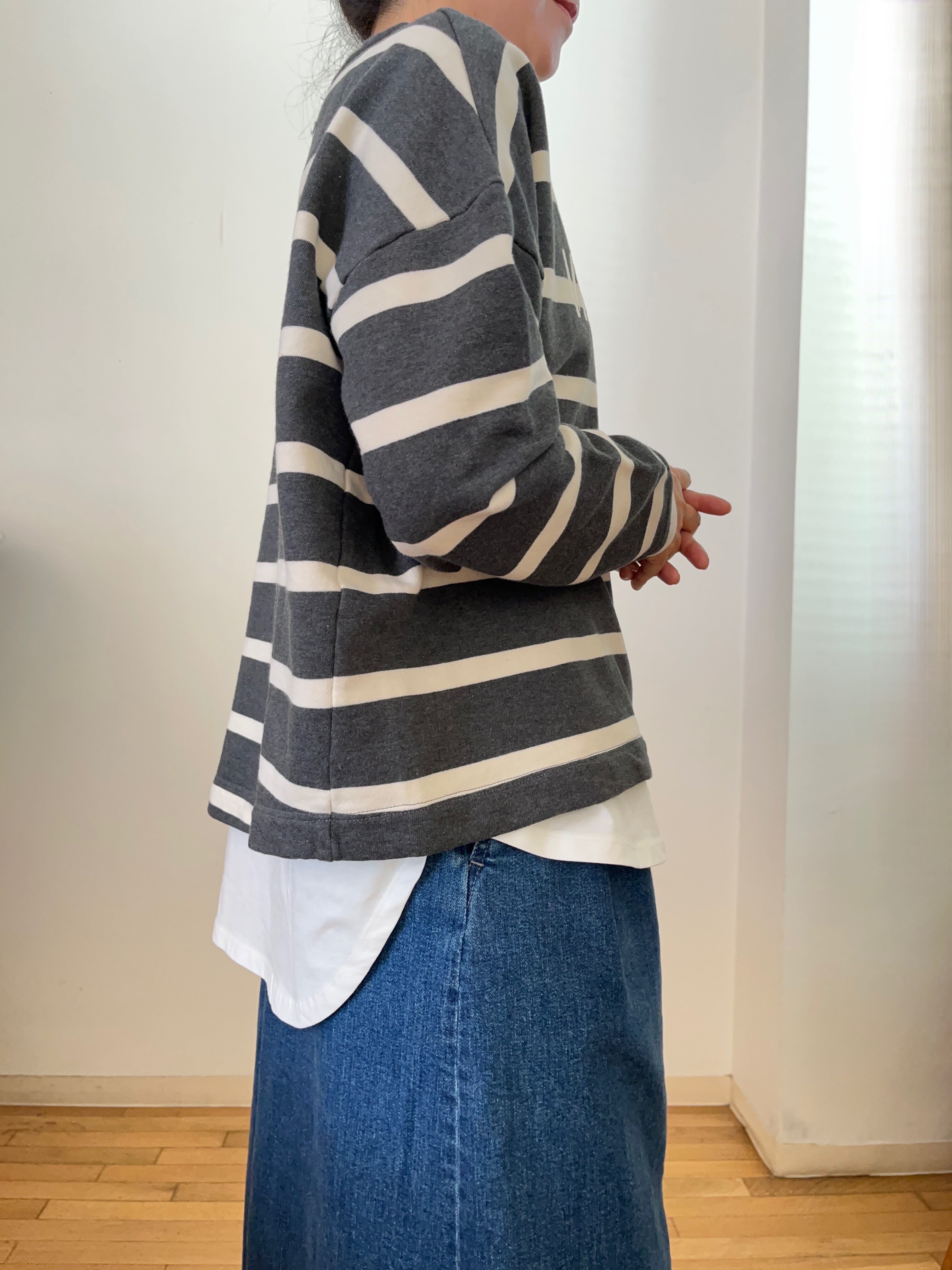大人カジュアルなスタイルのロゴ入りボーダースウェットです!