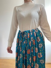 花柄スカート(ブルー×オレンジ)で秋冬のお出かけを彩りましょう!