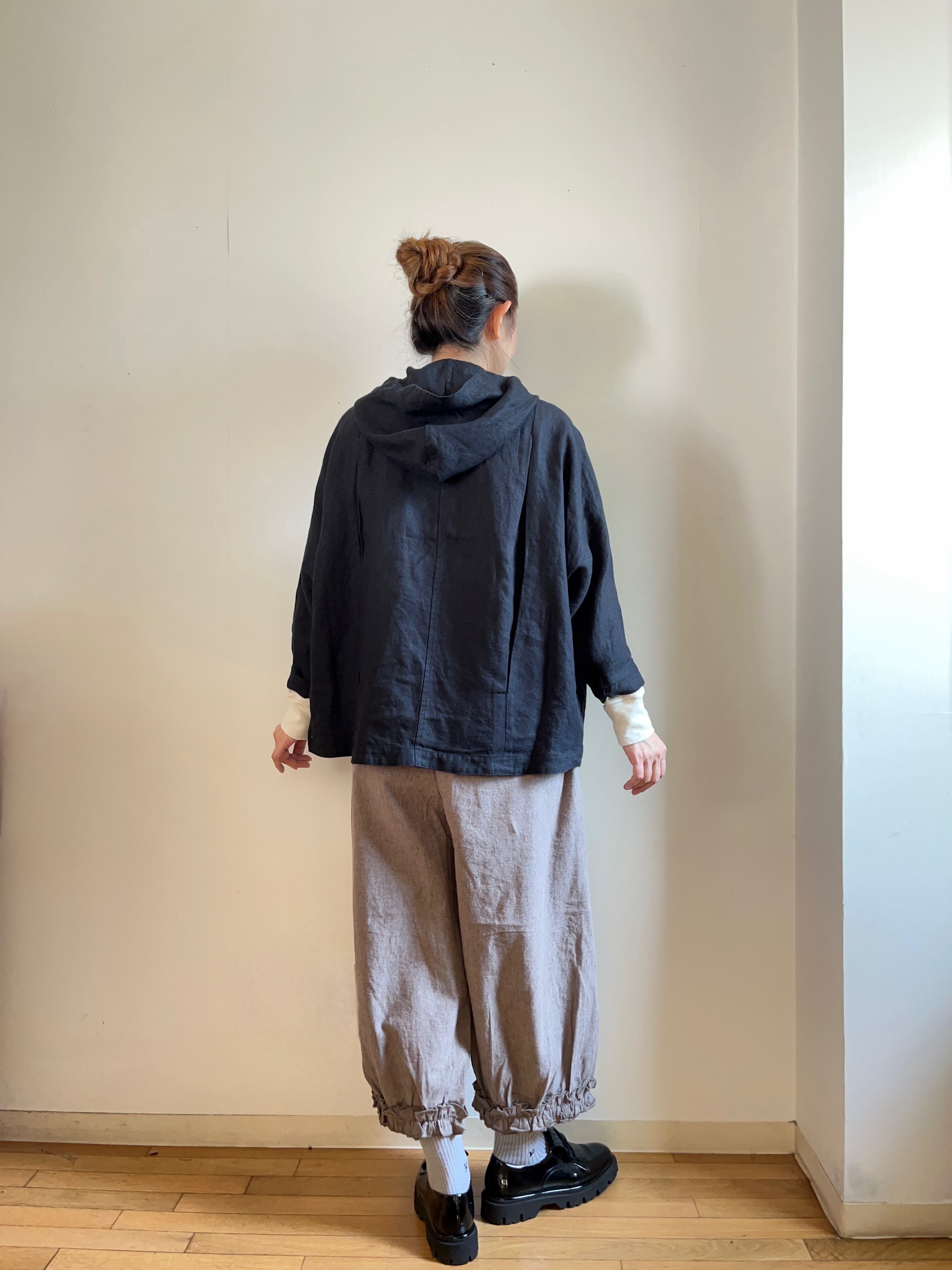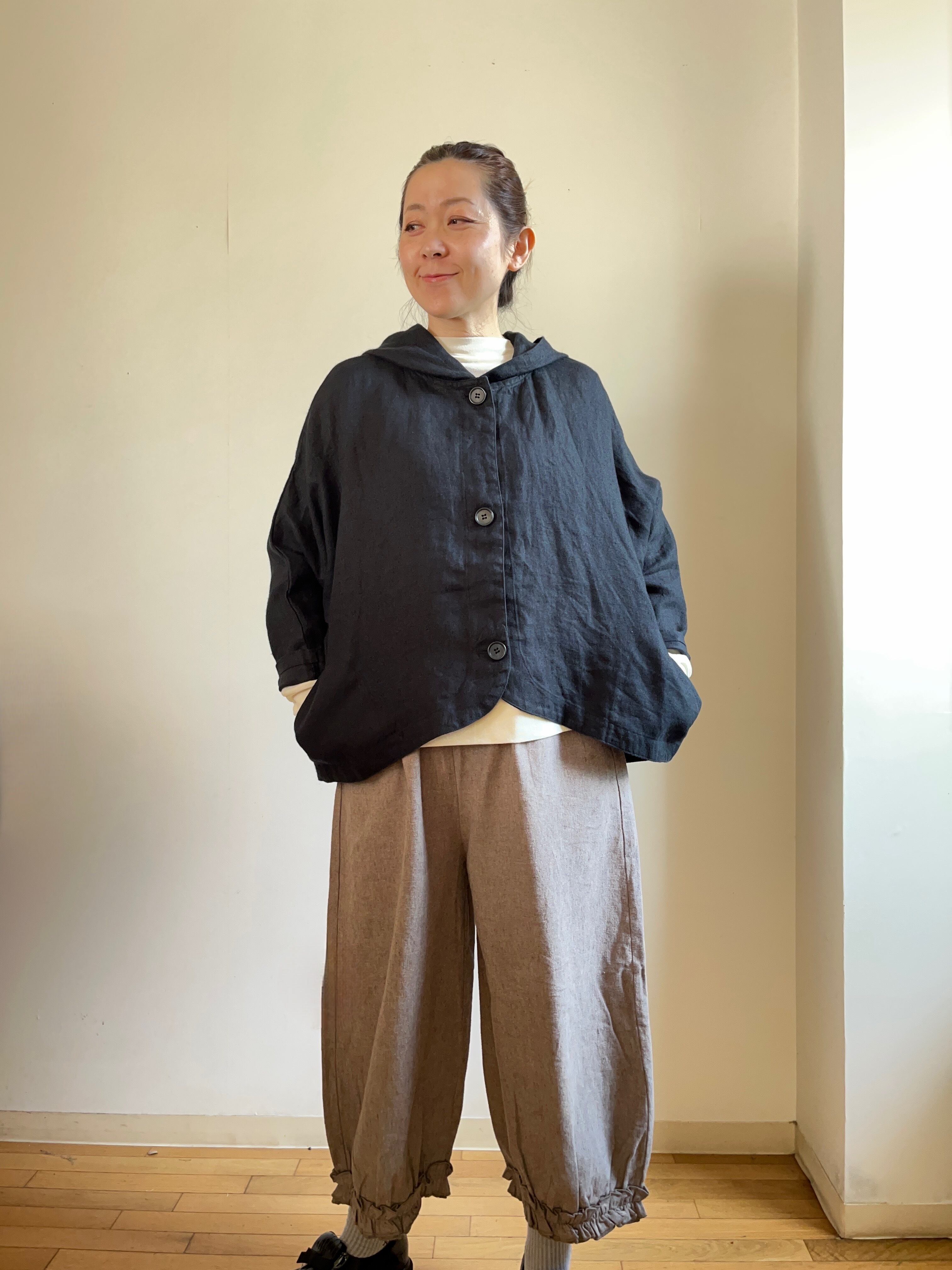 このフードバルーンジャケットは、トレンド感あふれるバルーンシルエットが特徴です。軽やかな起毛リネン素材を使用しており、着心地の良さはもちろん、カジュアルな装いに華やかさをプラスするデザインに仕上げています。デイリーコーデはもちろん、特別なお出かけシーンにも最適なアイテムです。