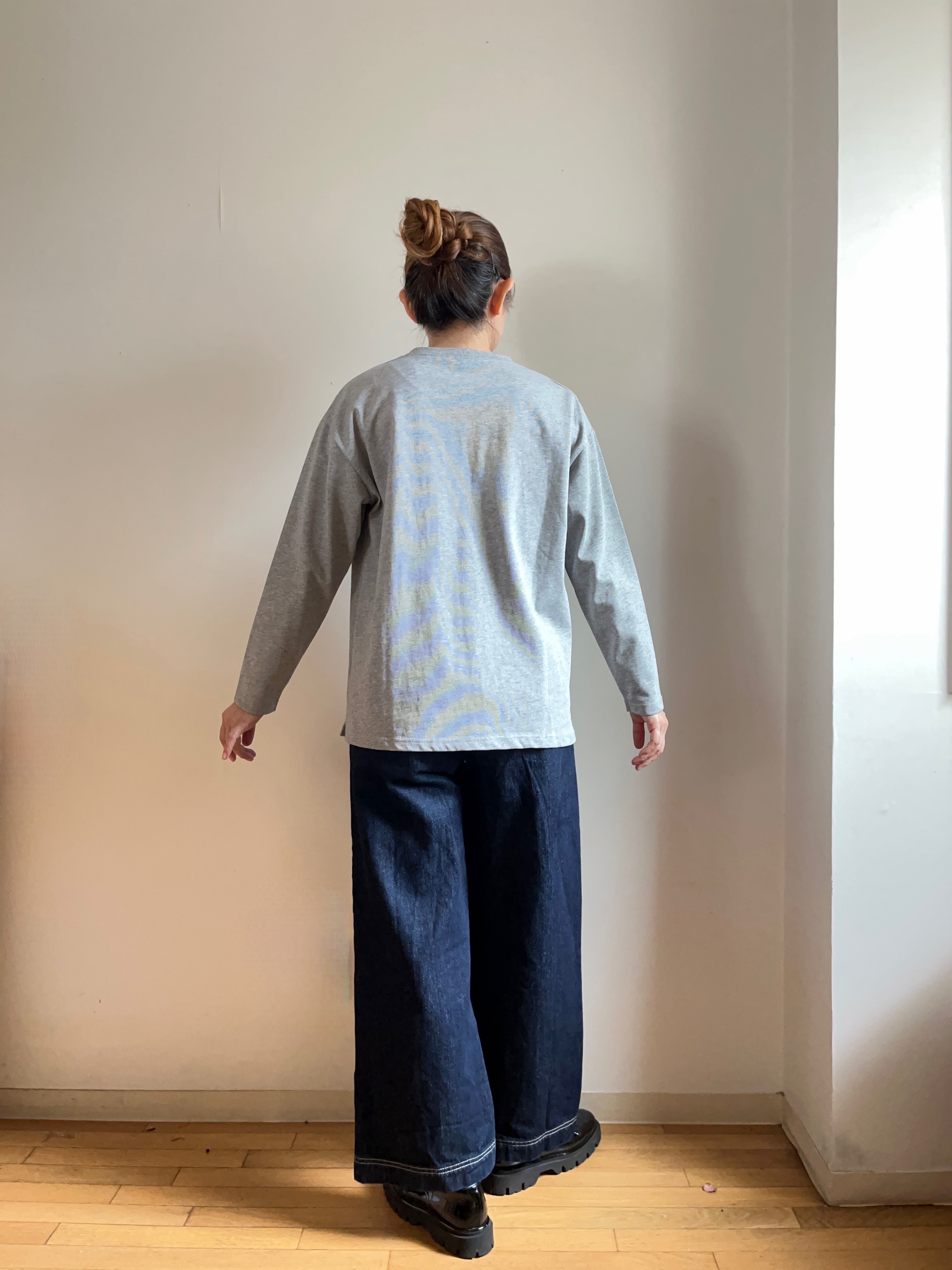 このロゴプリントロンTは、シンプルながらも存在感のあるデザインが特徴です。目の詰まった程よい肉感のコットン素材を使用しており、快適な着心地でデイリーユースにぴったりなアイテムです。普段使いはもちろん、友人とのお出かけやカジュアルな集まりにも最適です。