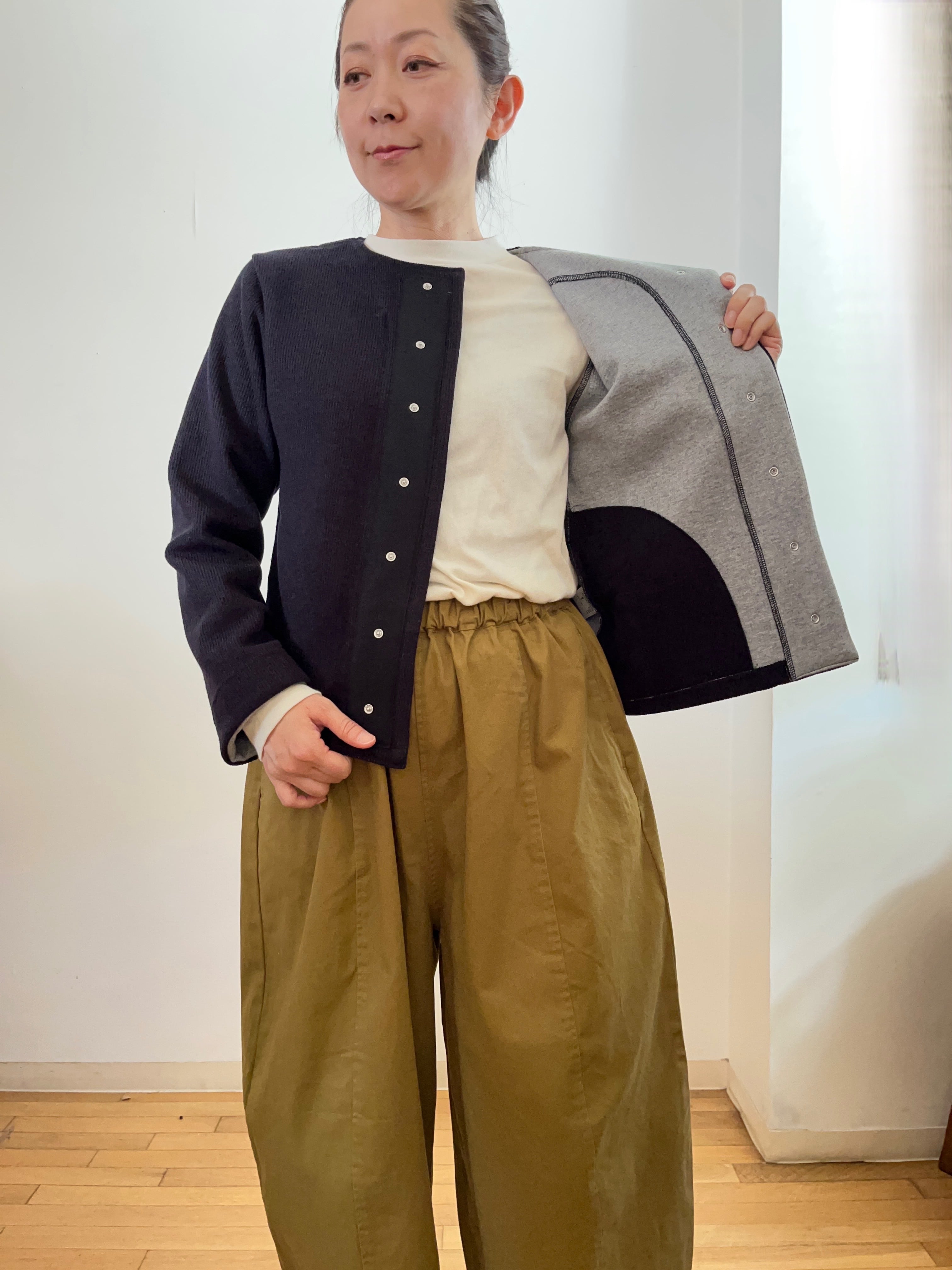 シンプルなデザインながら、さりげないディテールで洗練された印象を与えます。さっと羽織るだけで、コーディネートが格上げされるため、リラックスしたい日のお供にも、ちょっとおしゃれを楽しみたい日のお供にも最適です。