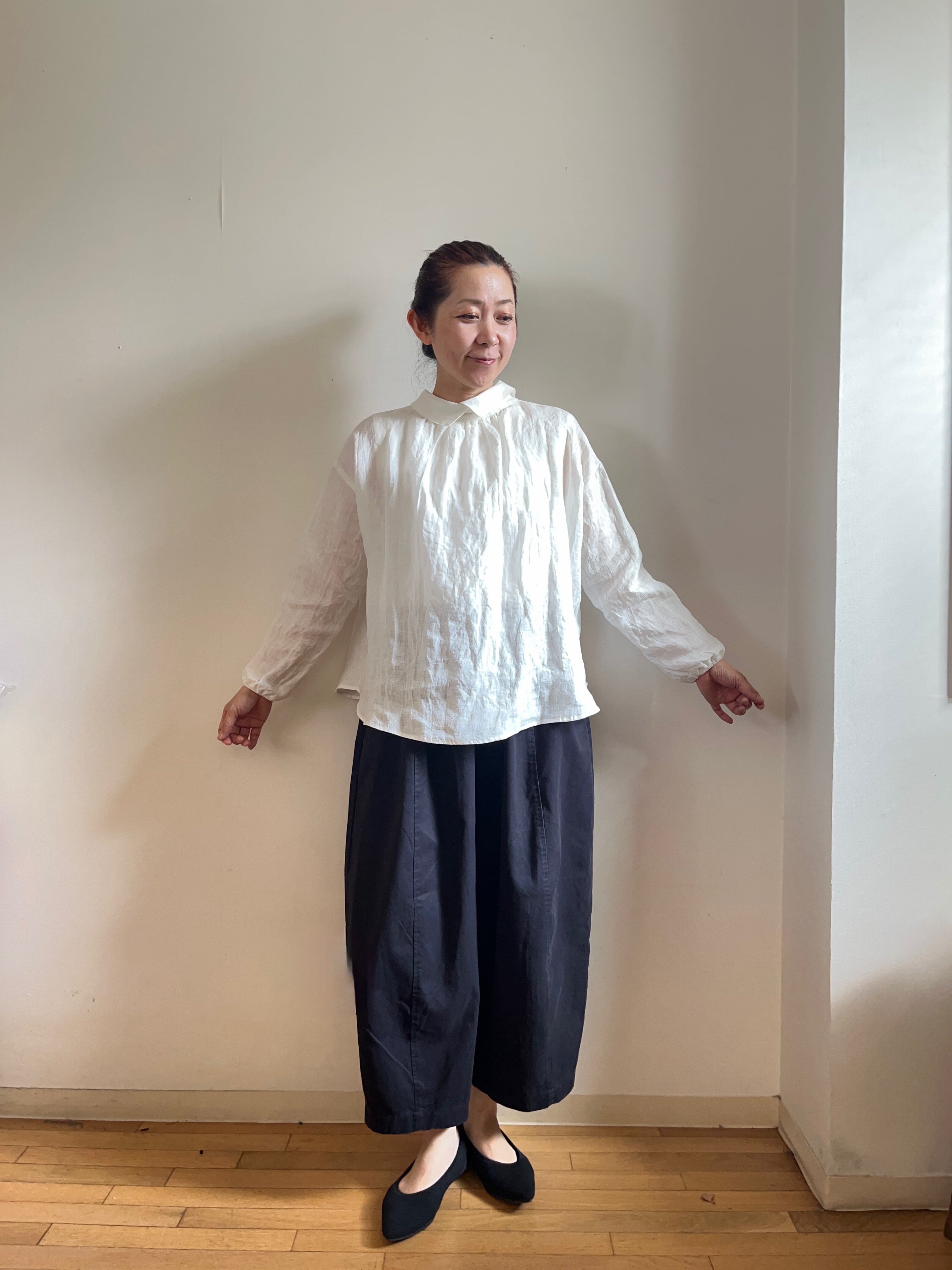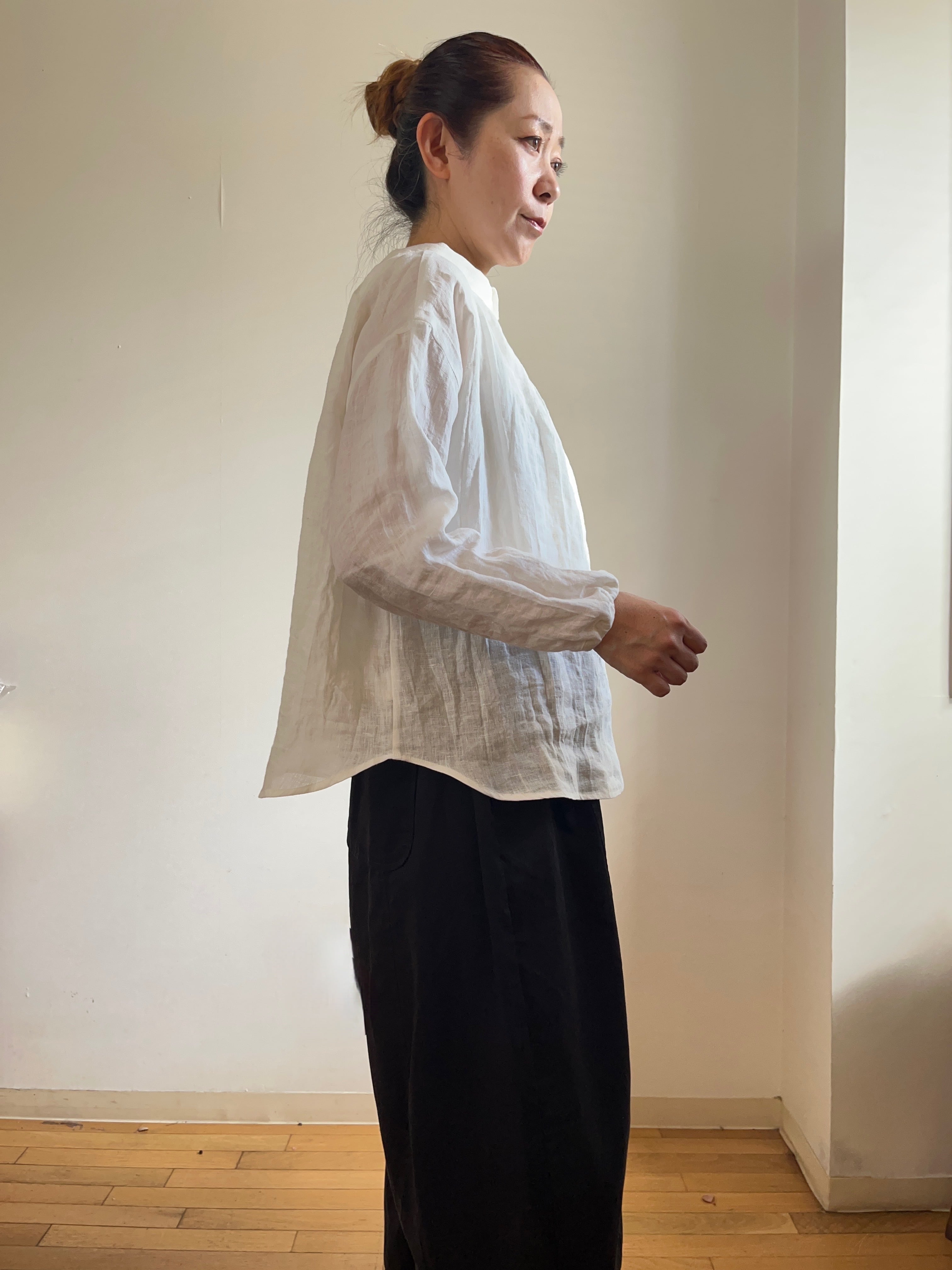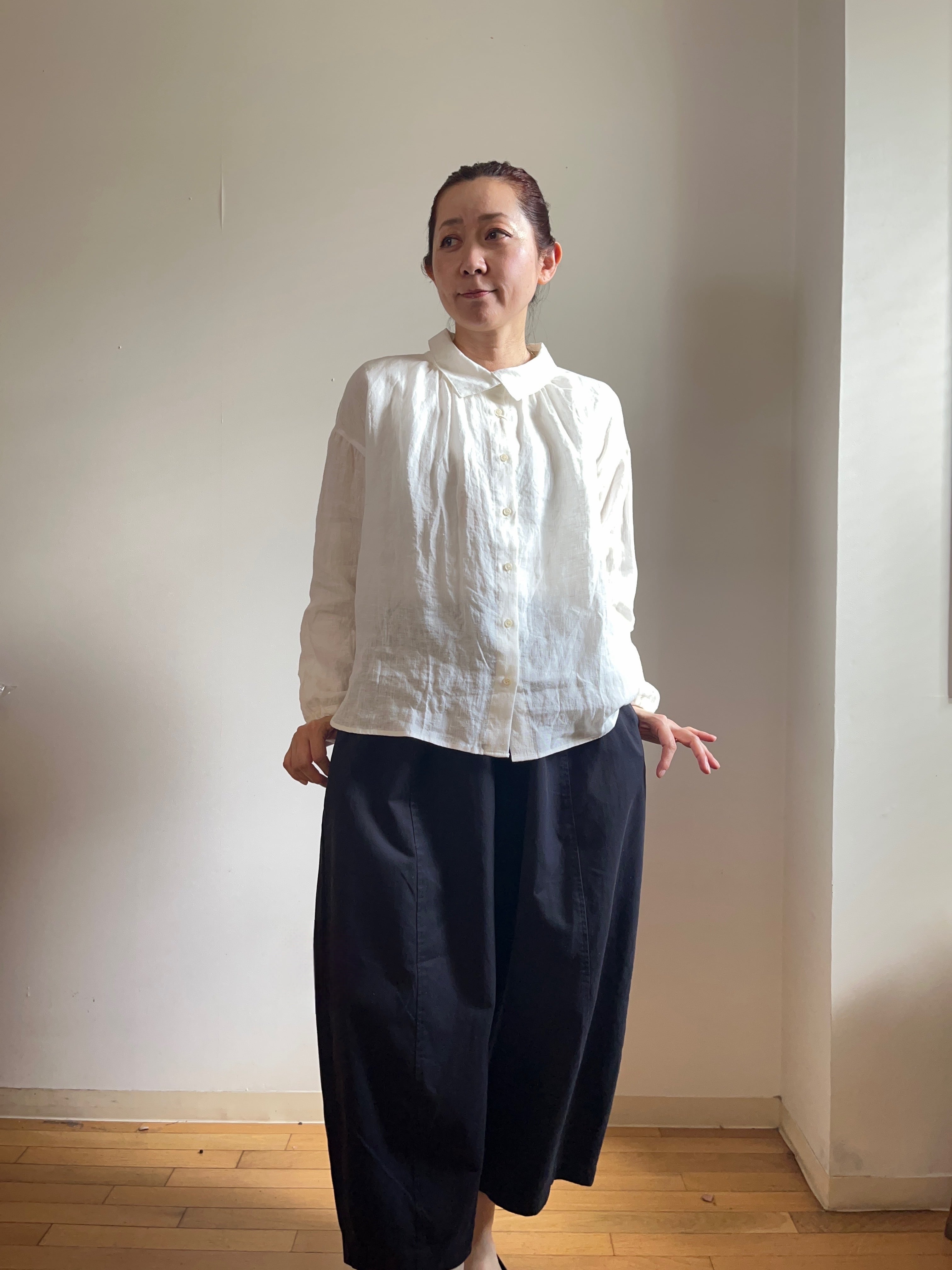 このブラウスは、リネン100%の素材を使用しており、さらっとした着心地を実現しています。軽やかな風合いは、デイリーコーデはもちろん、ちょっとしたお出かけにもピッタリなアイテムです。