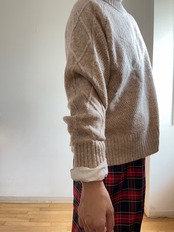 この袖ケーブル柄ニットは、ふんわり軽やかであたたかいシェットランドウールのプルオーバーです。