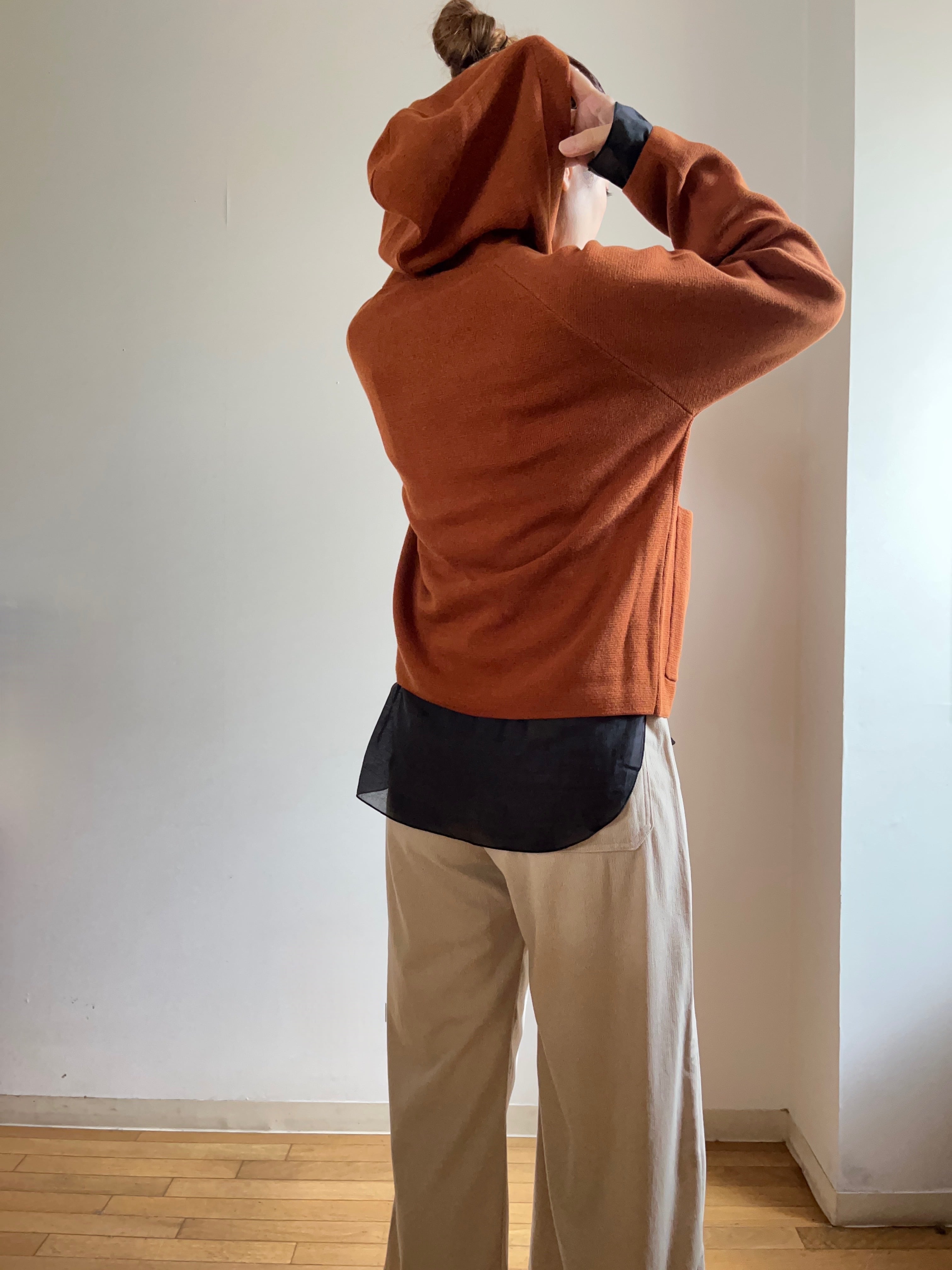 このカーディガンは、やわらかい素材とリラックスしたシルエットが特徴で、軽やかな着心地が魅力。フーディー付きでカジュアル感もあり、デニムやチュニックとも相性抜群です。シンプルなデザインながら、スタイリングを楽しめるアイテムです!