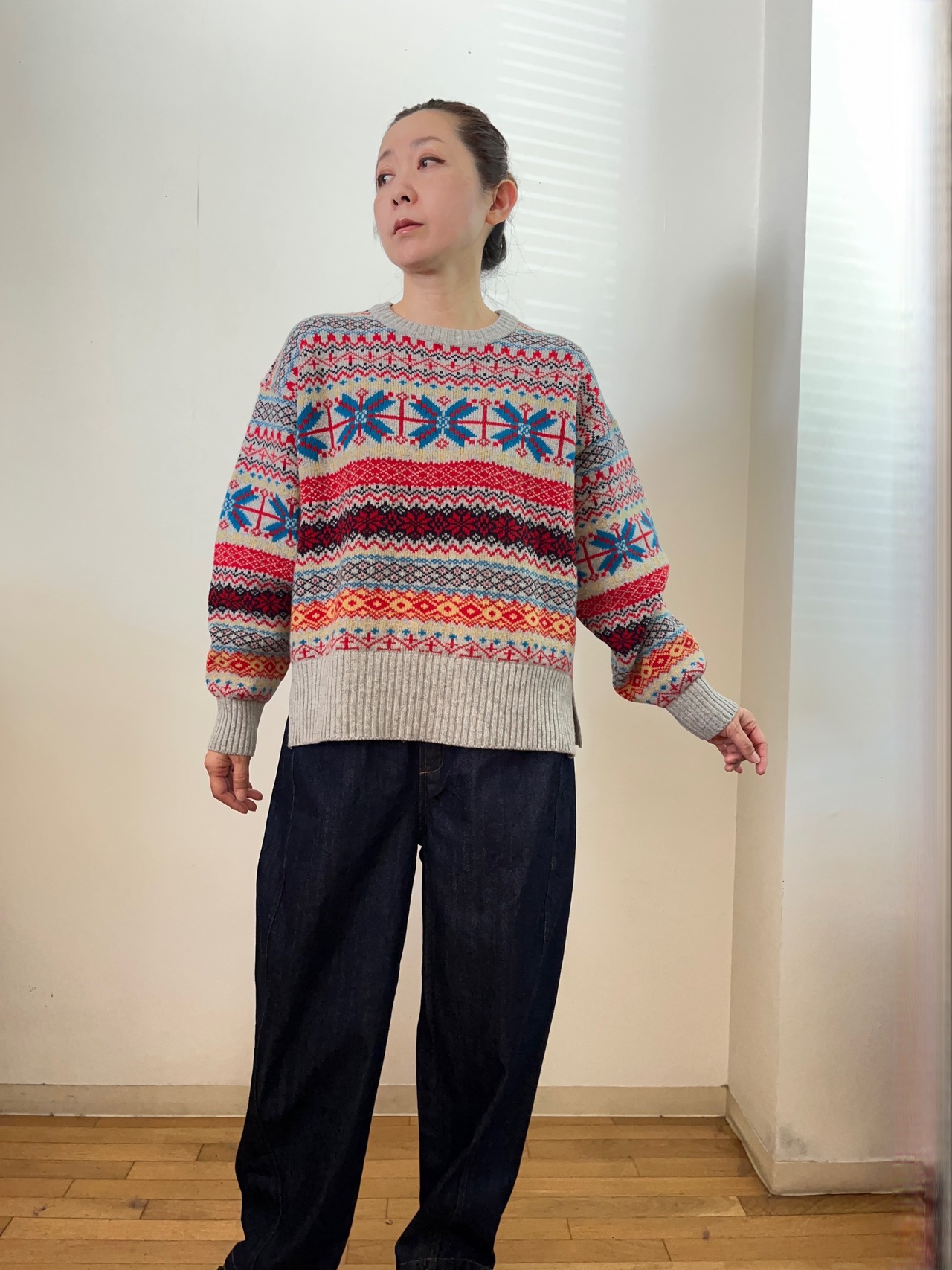 鮮やかな色彩と繊細な編み柄が魅力の、タスマニアラム フェアアイルニット。オーストラリア・タスマニア島の厳しい自然環境で育まれた上質なラムウールを使用し、ふっくらと柔らかく、あたたかみのある風合いに仕上げました。寒い季節の毎日を、華やかに彩ってくれる一枚です。お袖と裾は長めのリブになっていて、スリットが抜け感をプラス。レイヤードでシャツをのぞかせれば洗練されたスタイルに。