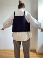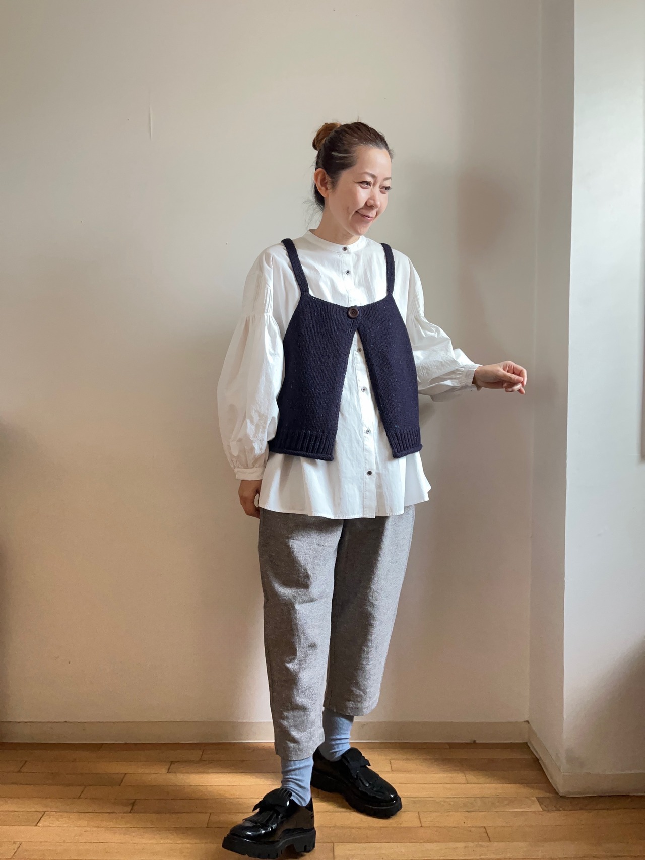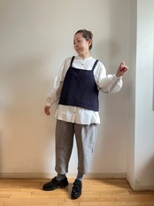 前後どちらのスタイルでも楽しめる2way仕様で、さまざまなボトムスやワンピースと合わせやすく、あなたのコーディネートを引き立てるアイテムです。快適な着心地でありながらも、しっかりとした素材感が魅力的な一着です。