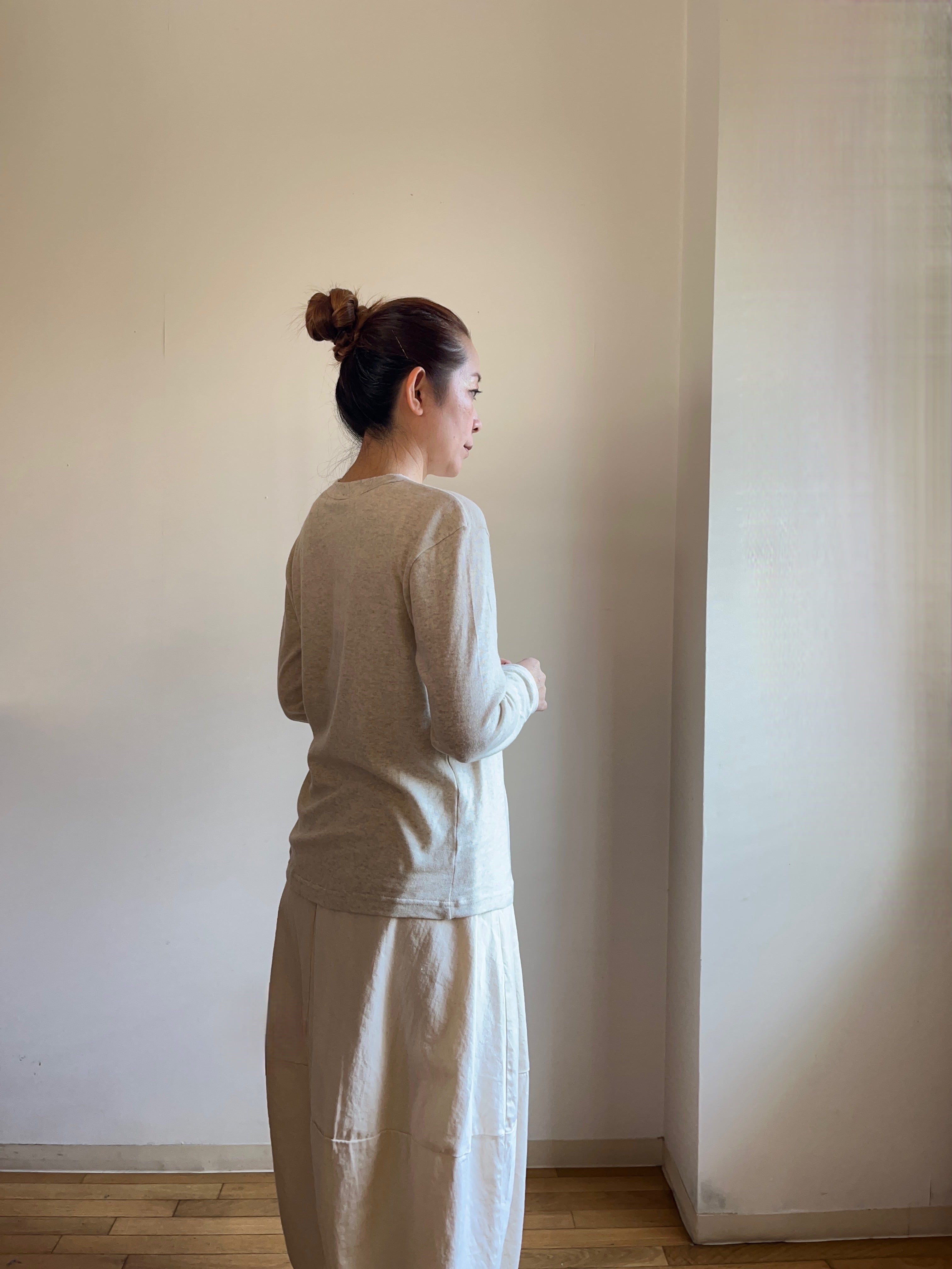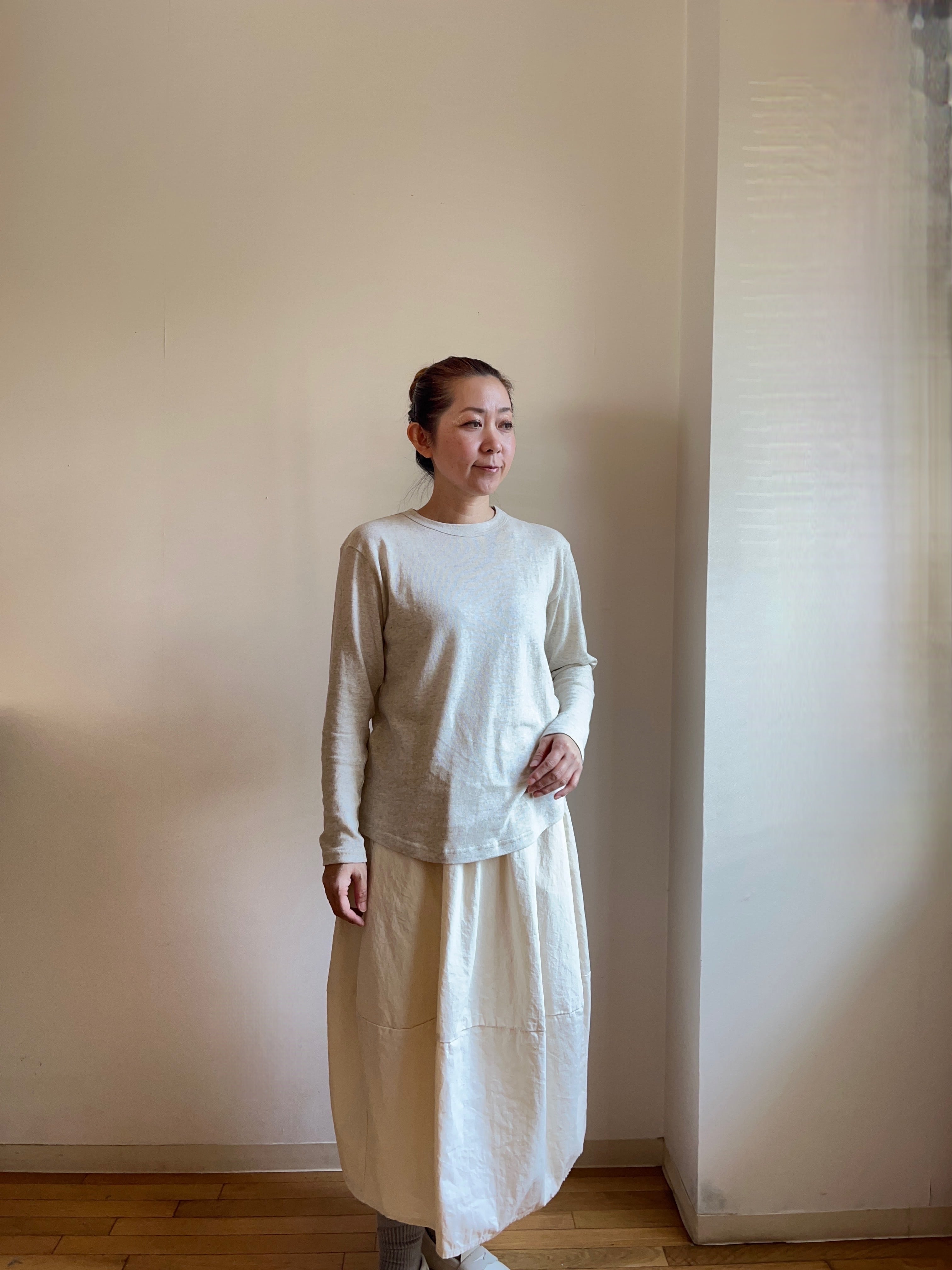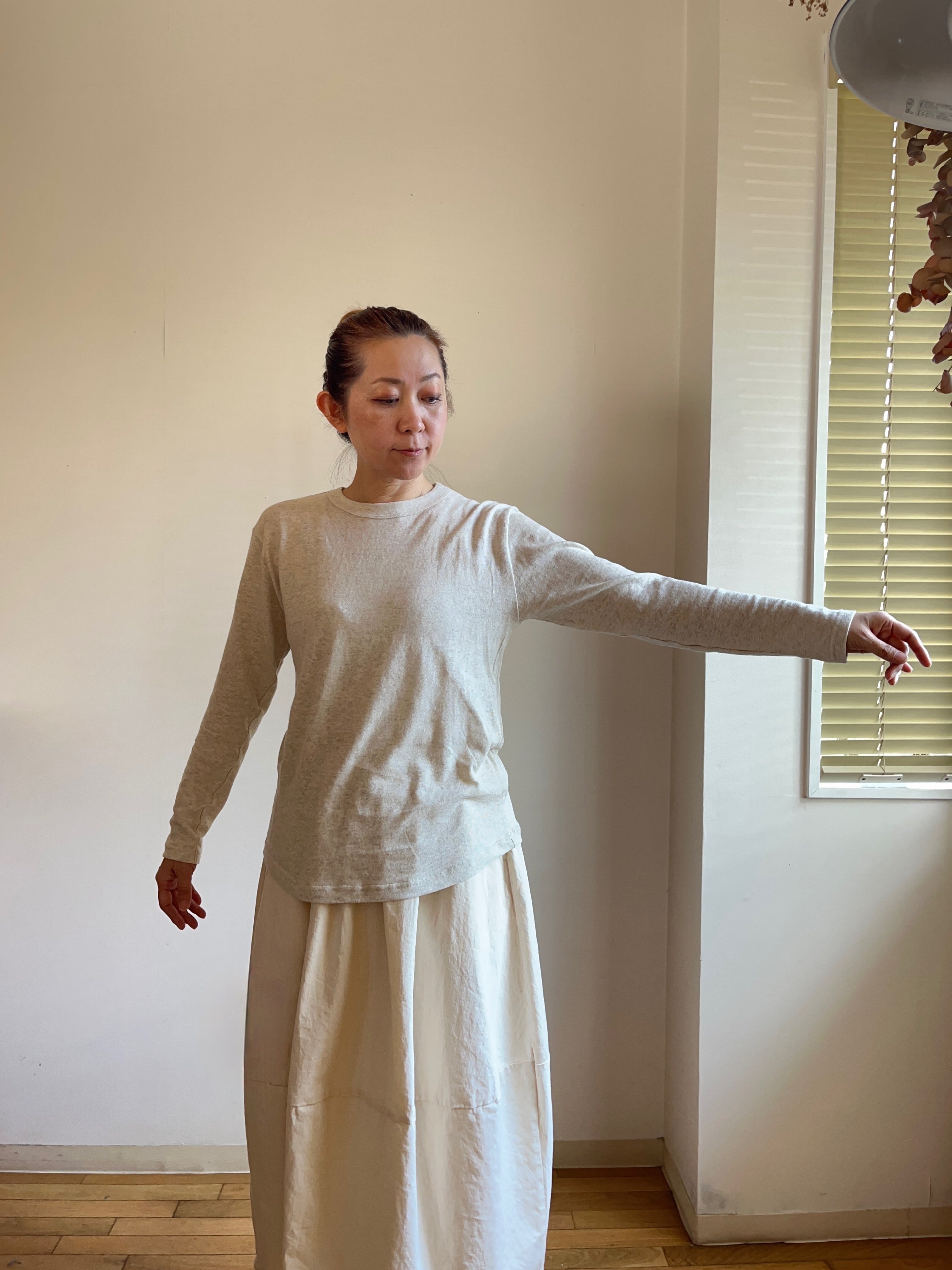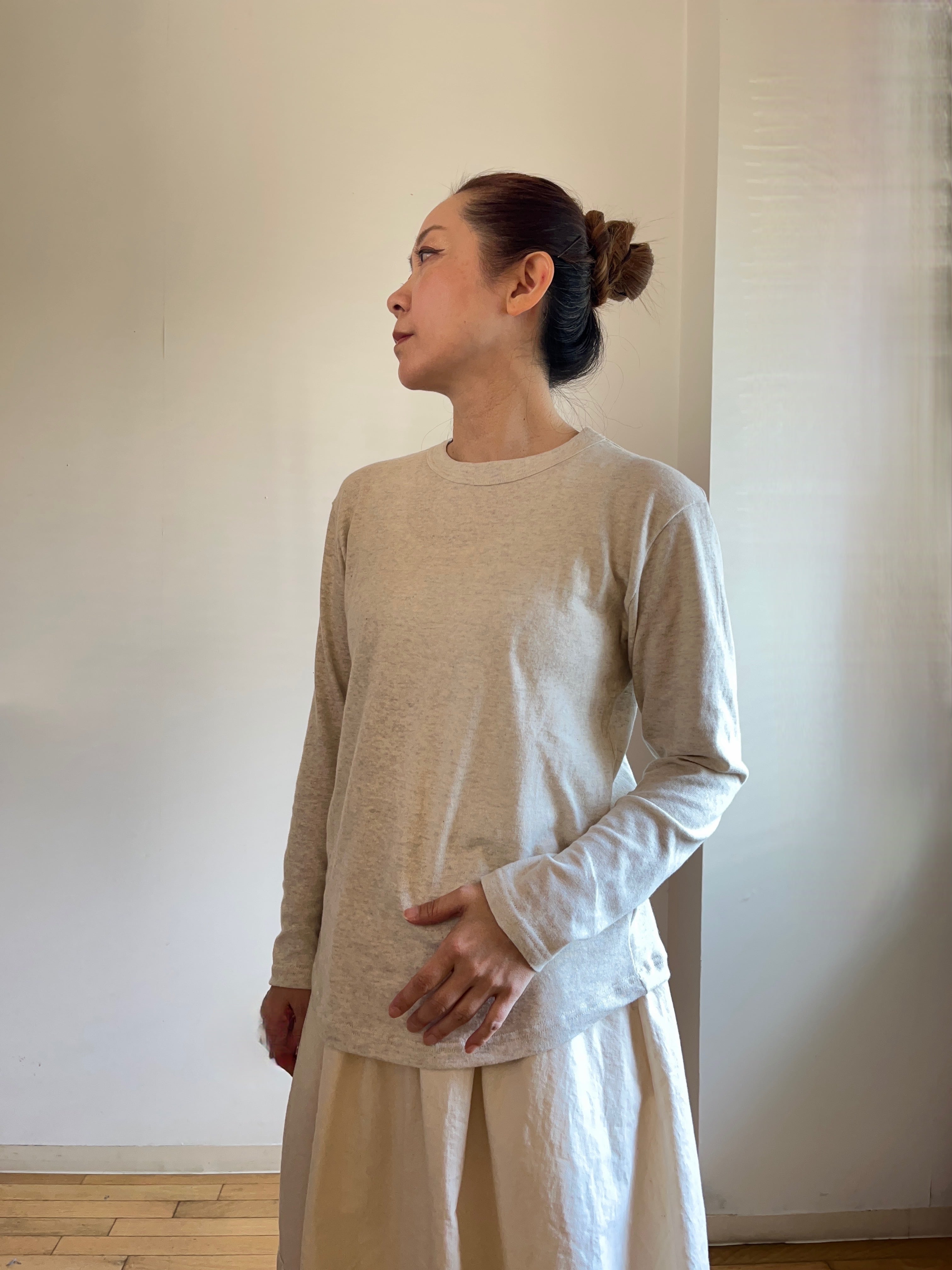 このロンTは、カジュアルな日常生活から、ちょっとしたお出かけまで幅広いシーンで活躍する一着です。シンプルなボトムスと合わせて、さりげなくおしゃれを楽しむことができます。コットン100%の優しさで、長時間着用しても快適な着心地をキープします。重ね着にもピッタリです。