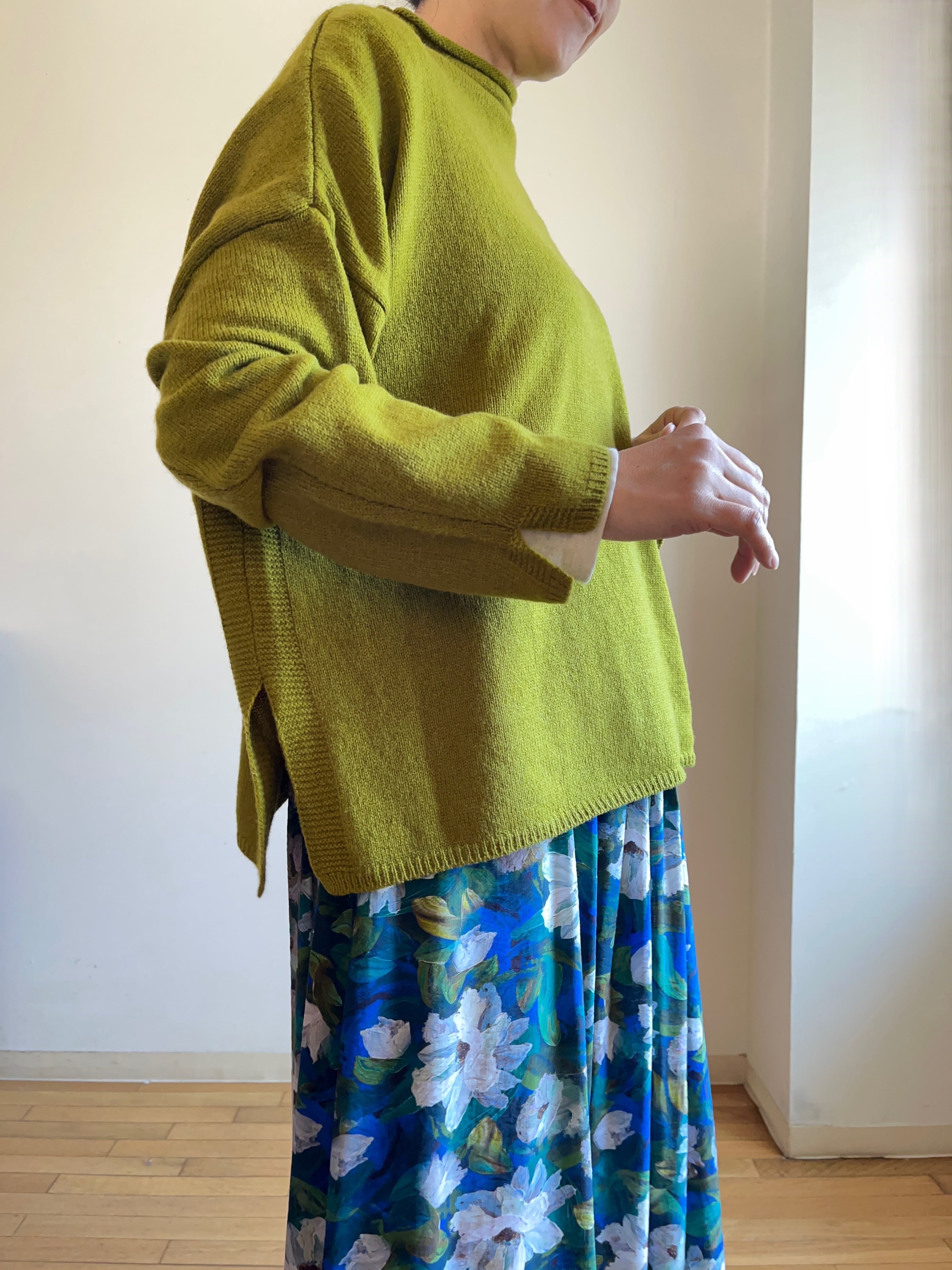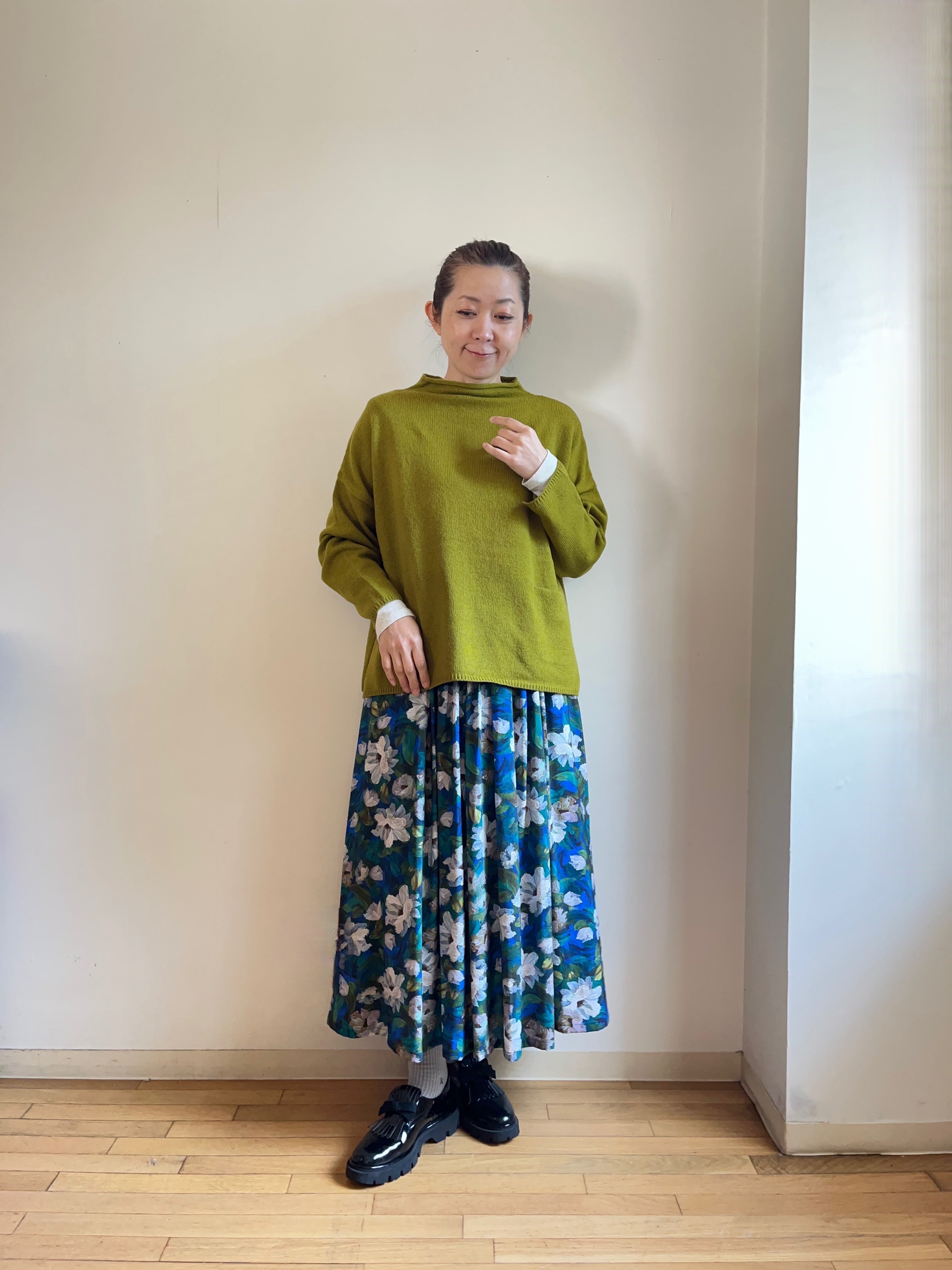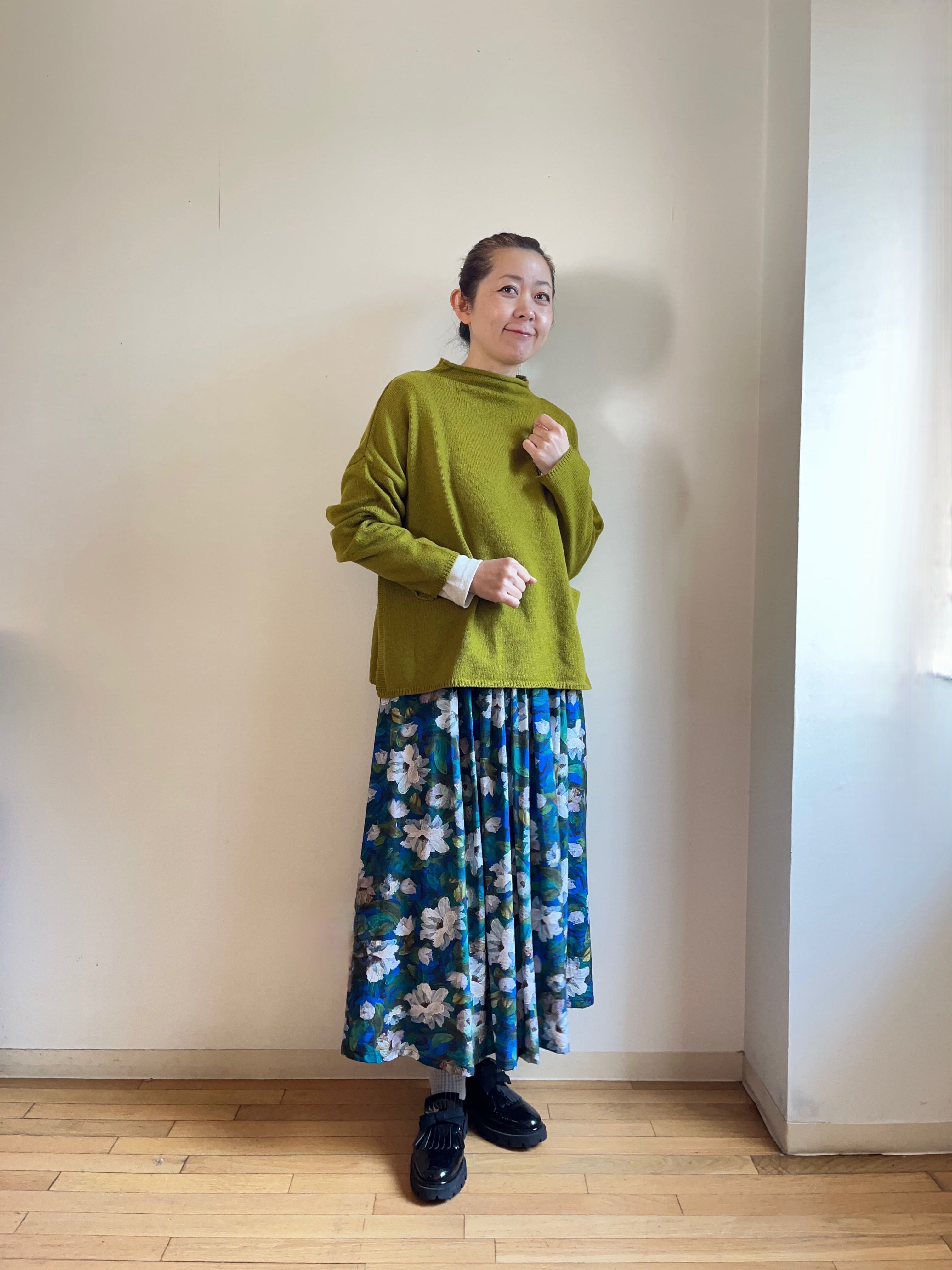 このニットは、デニムやスカートなどのボトムスと相性抜群で、カジュアルからオフィスシーンまで幅広く活躍します。重ね着にも最適で、温かさを保ちつつスタイリッシュな印象を与えます。普段使いはもちろん、ちょっとしたお出かけにも活躍する一枚です!