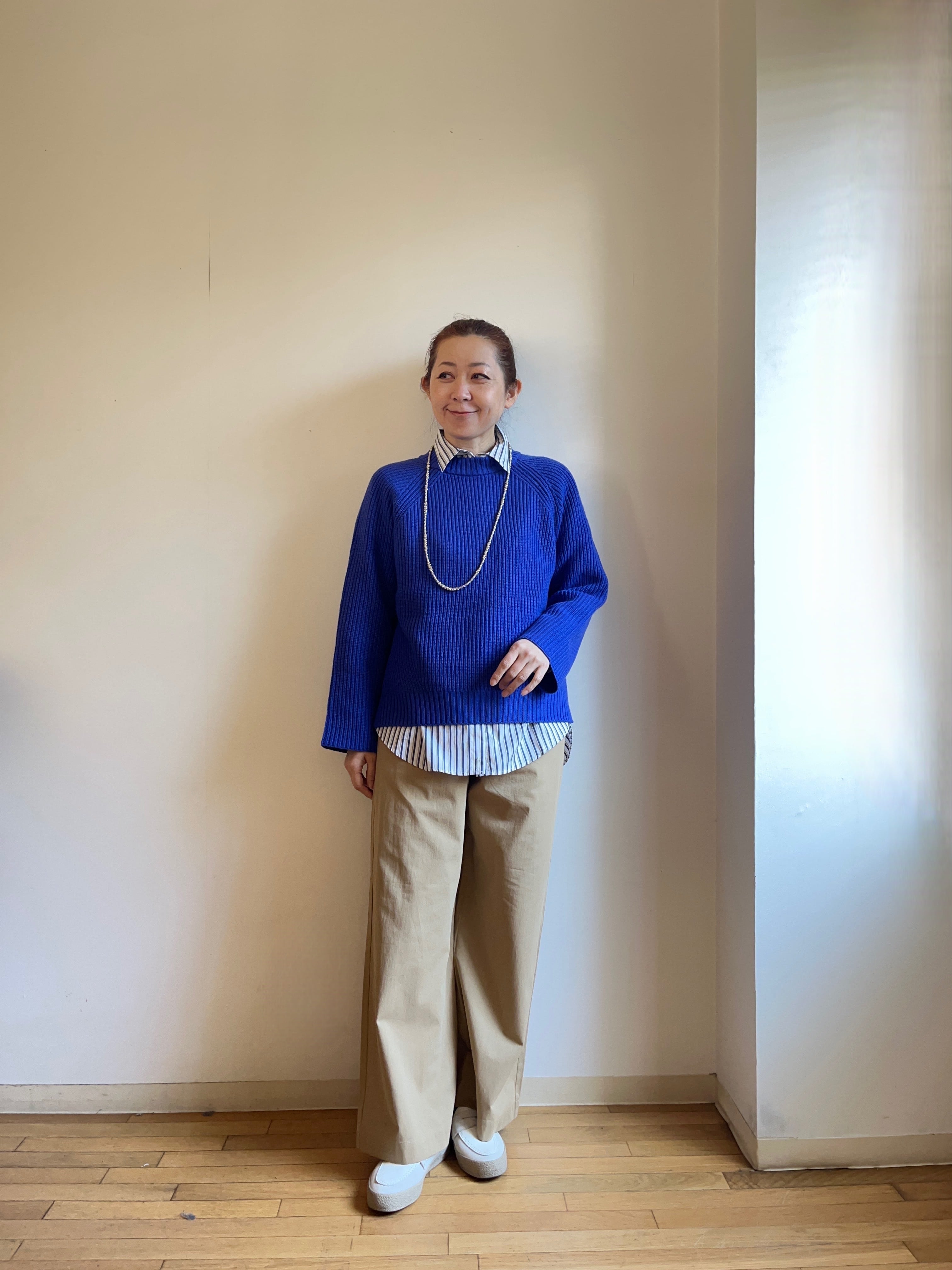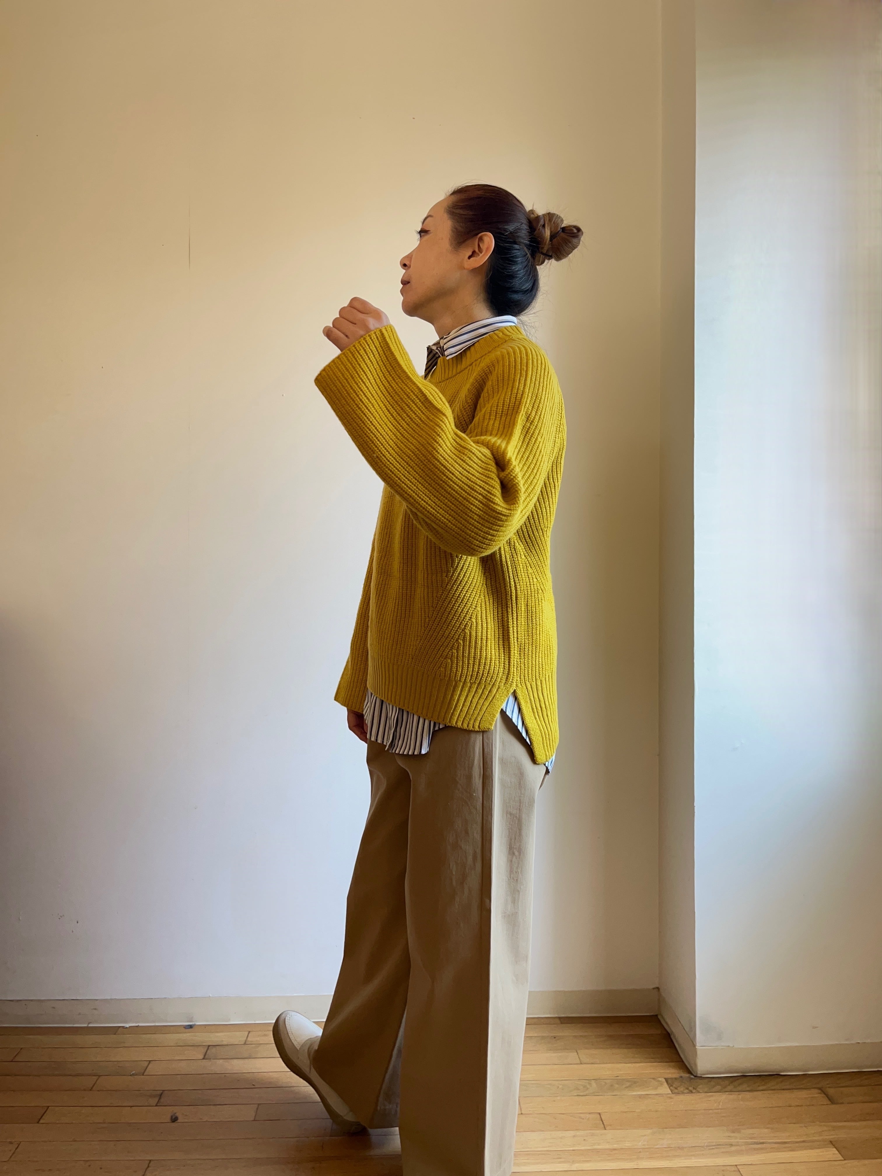 このニットは、シンプルさの中にこだわりのディテールが隠れており、デニムやスカートとの相性も抜群です。また、友人とのお出かけや、休日のリラックスタイムにもぴったり。着るだけで、おしゃれ度がアップすること請け合いのアイテムです!