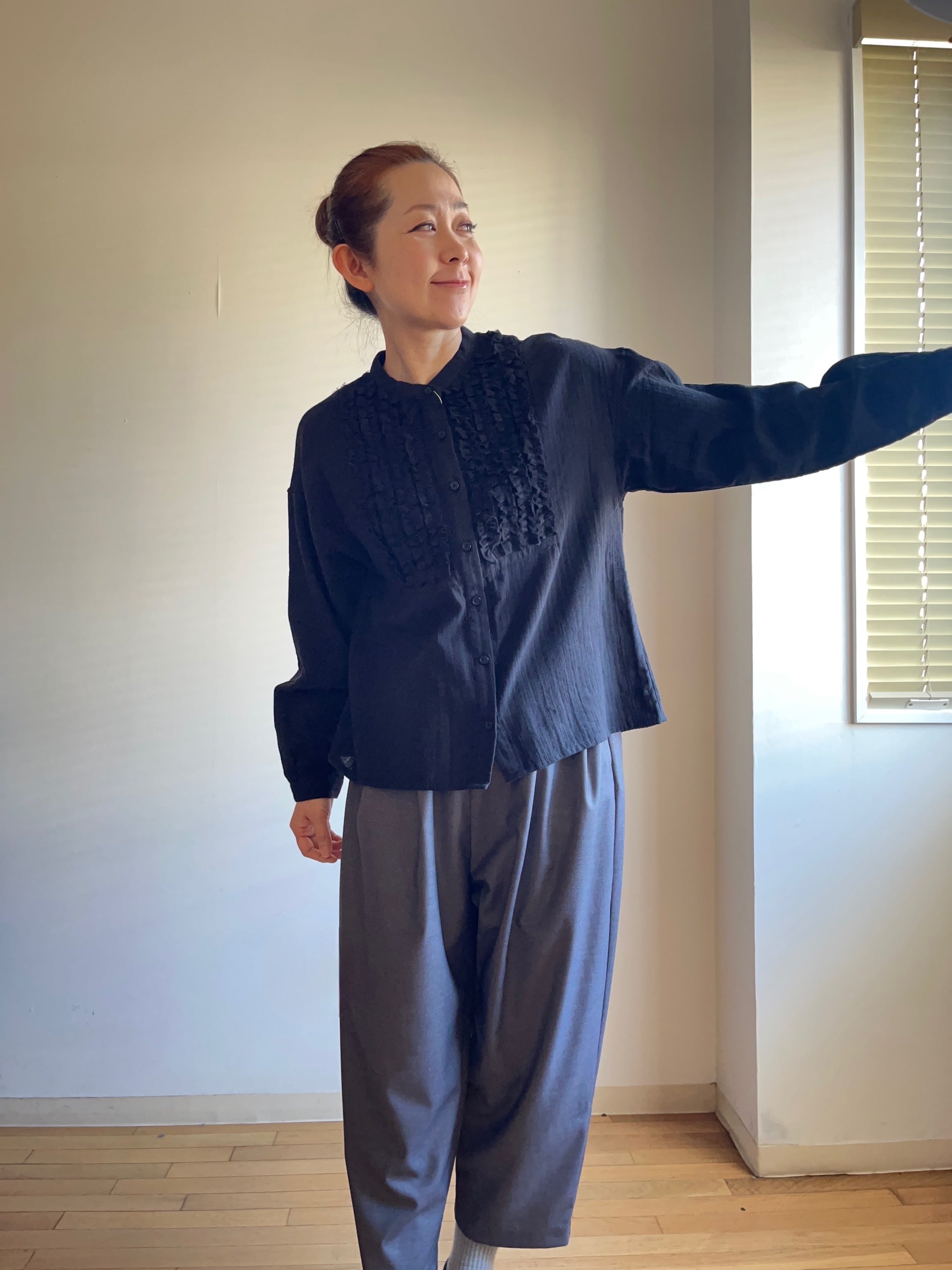 このブラウスは、リラックスしたい日やちょっとしたお出かけにもぴったりなアイテムです。