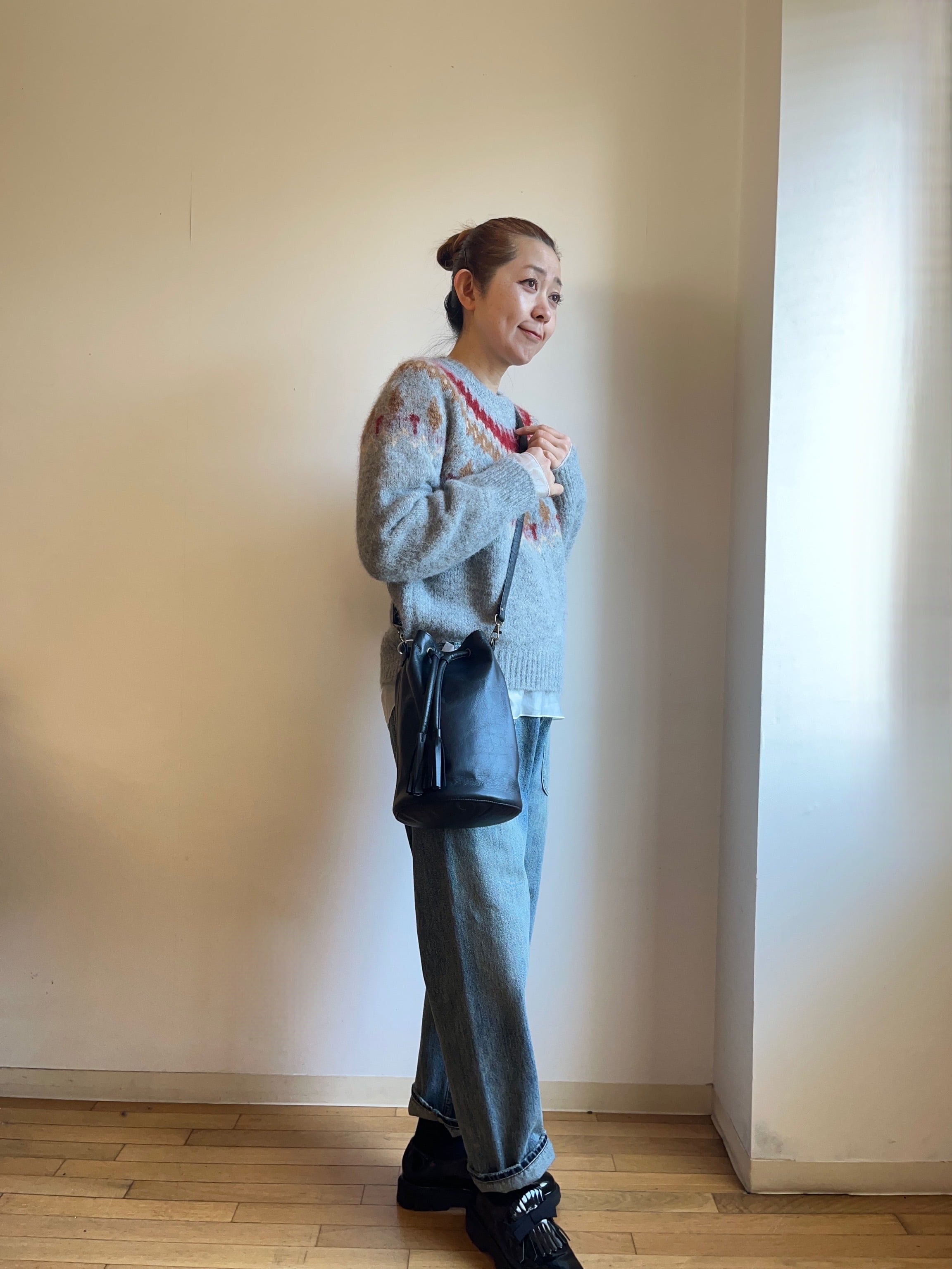 巾着型レザーショルダーバッグ(mamenari.オリジナル)