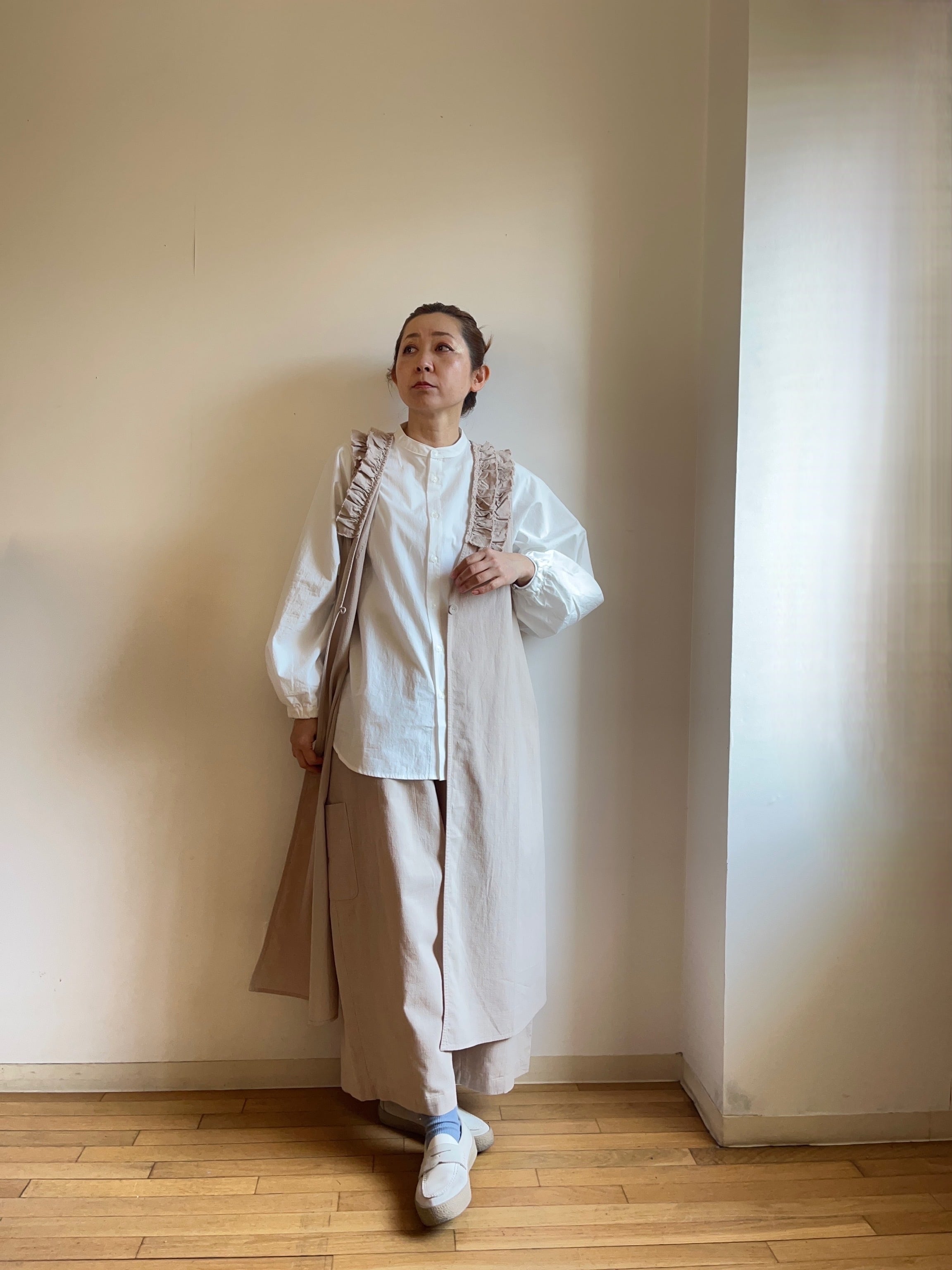 フリルロングジレとのセットアップもオススメです。