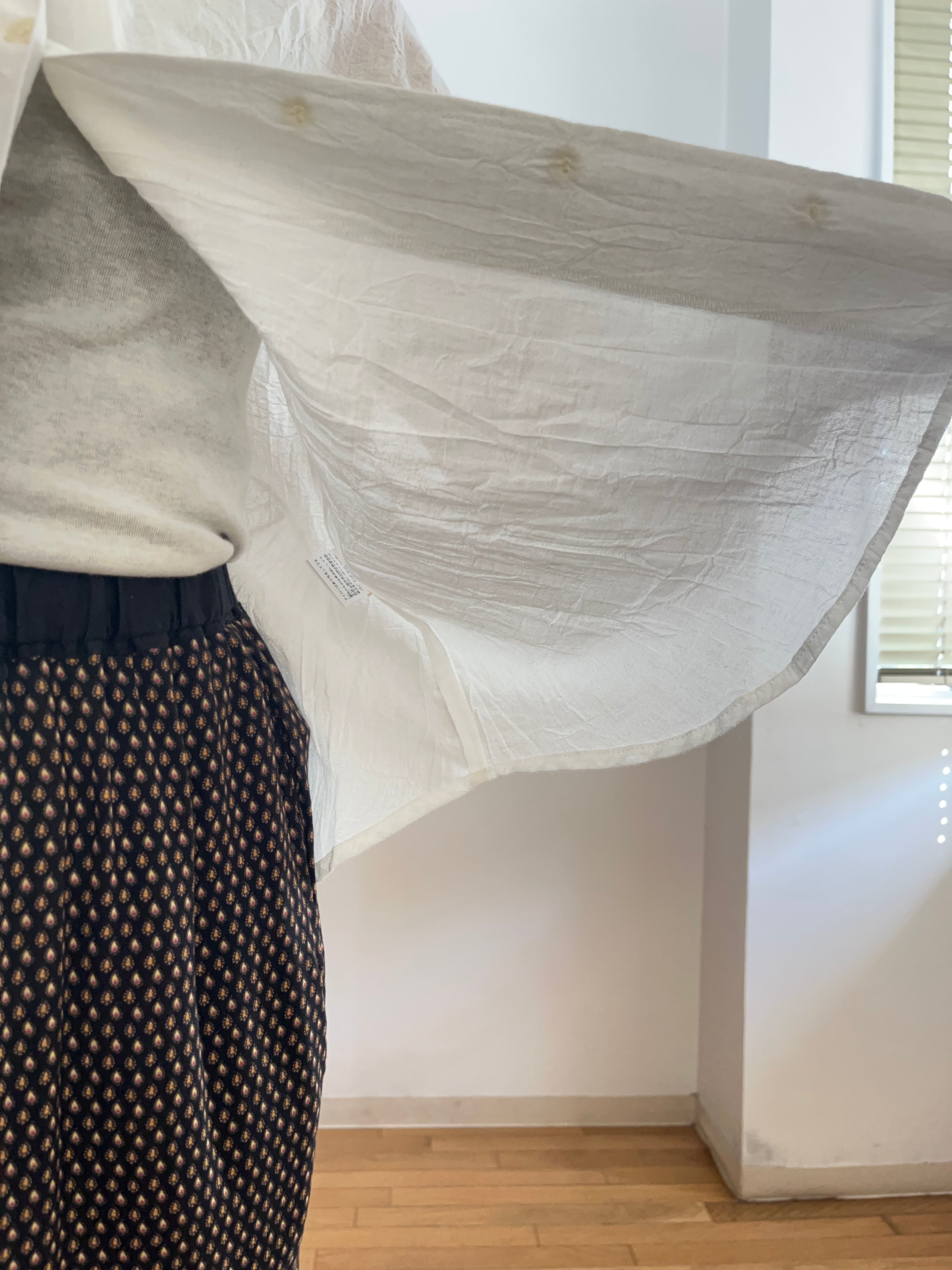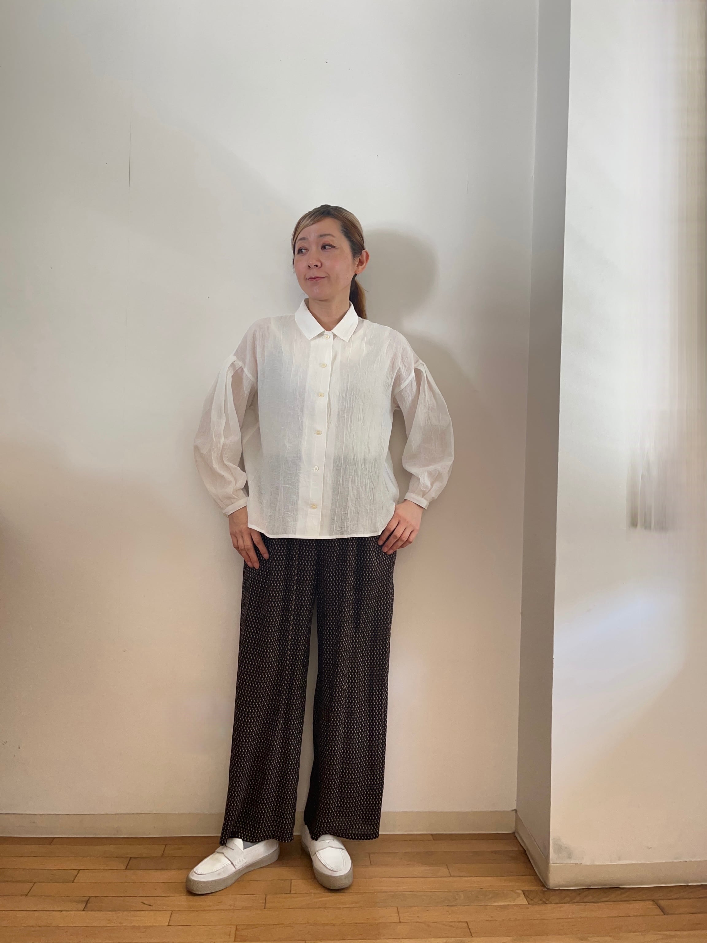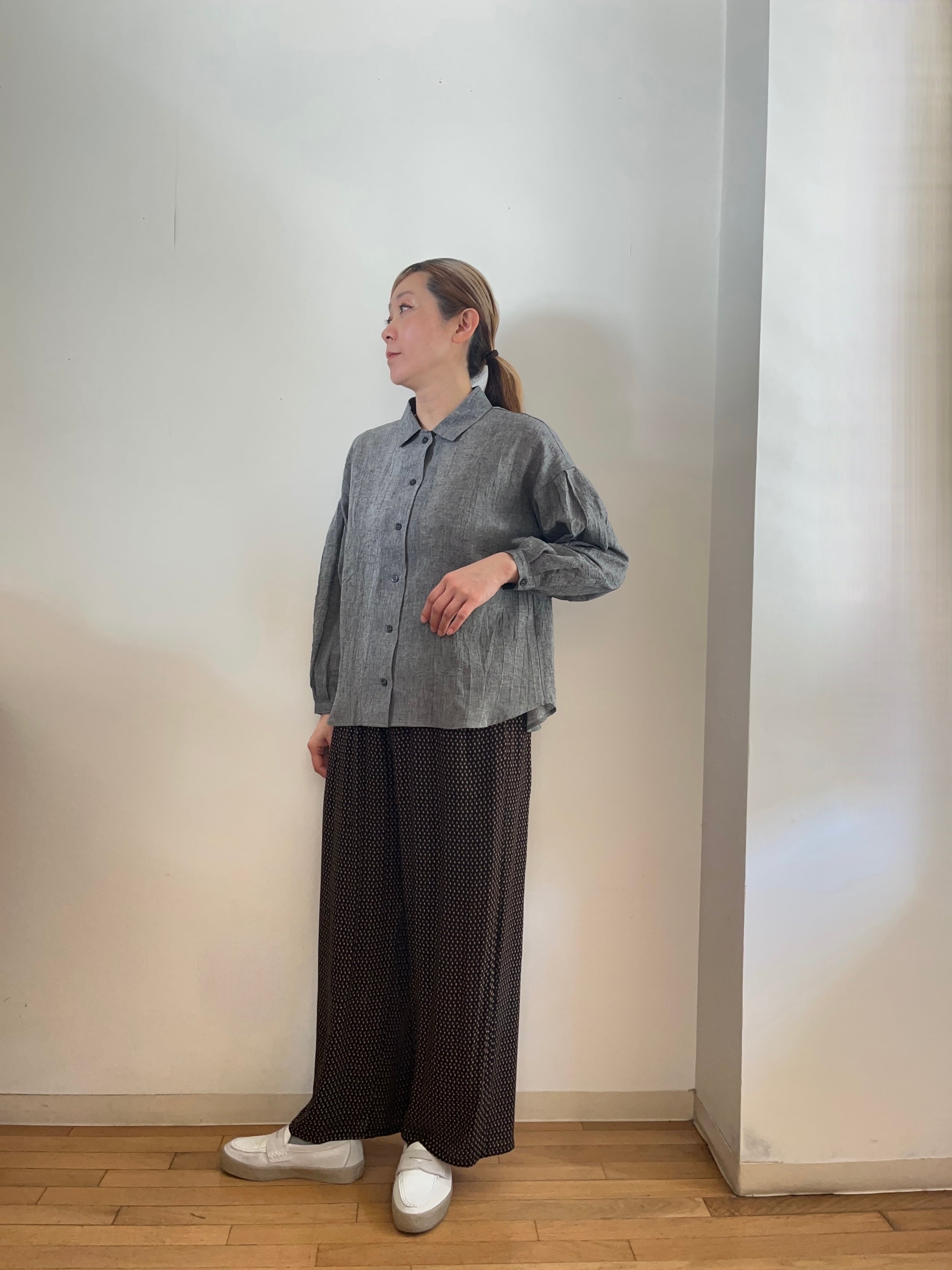 柔らかなコットンとリネンの混合素材を使用しており、軽やかな着心地を実現しています。やんわりバルーン袖のシルエットが女性らしさを引き立たせ、カジュアルながらも洗練された印象を与えてくれます!