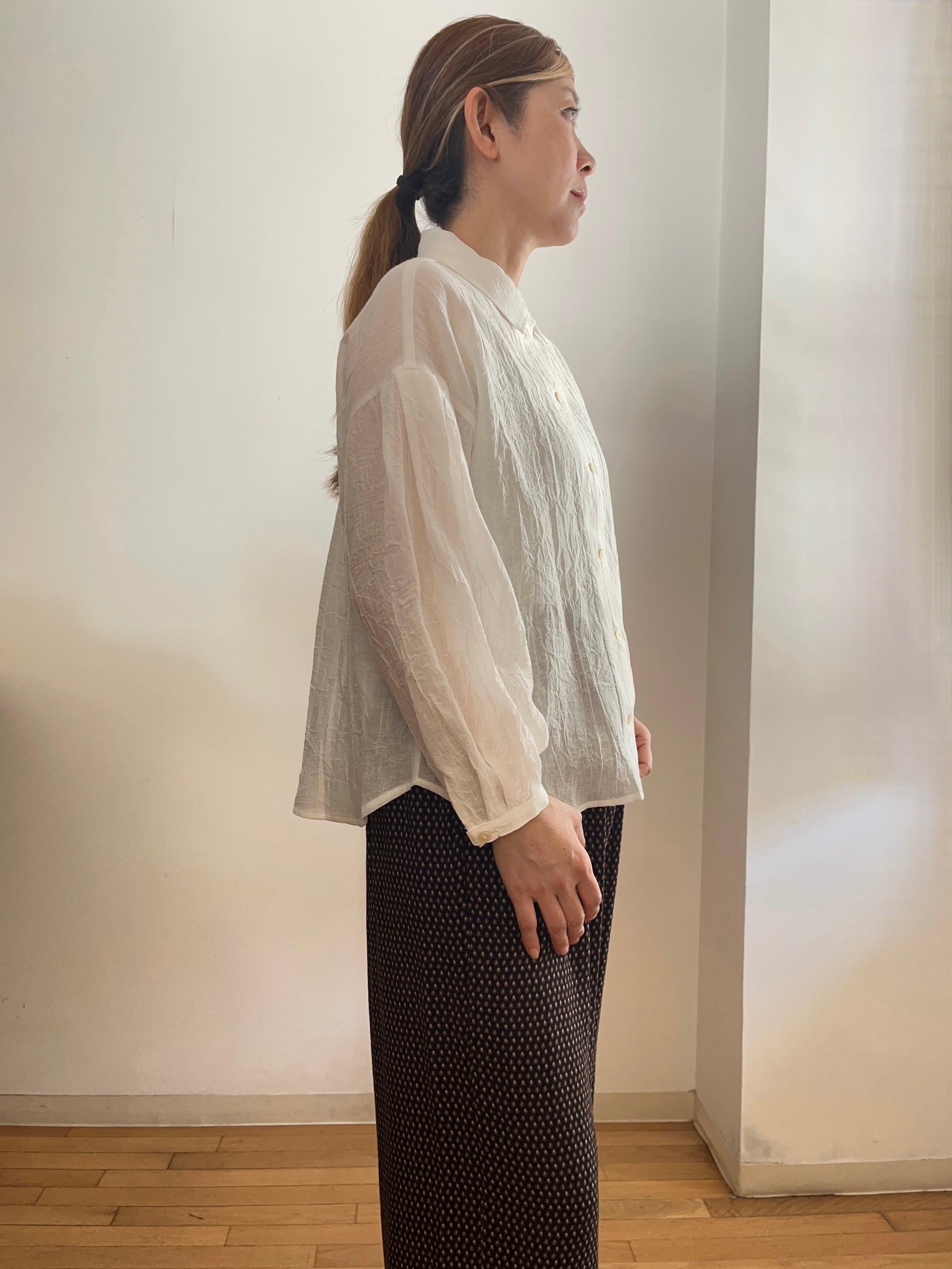 コットンリネン バルーン袖ブラウス