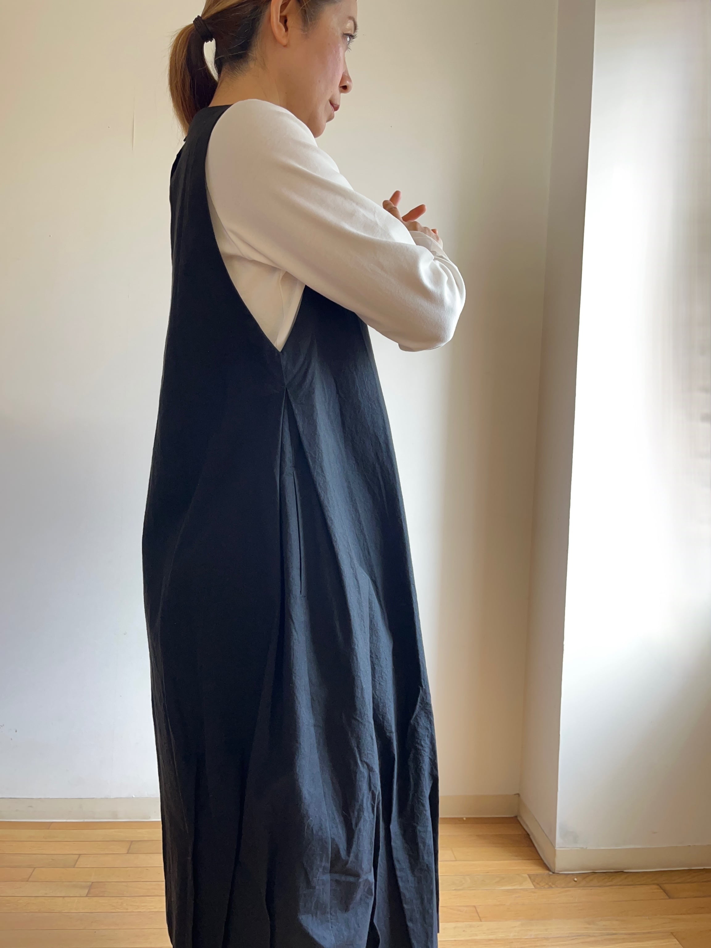裾タックデニムバルーンワンピースと同型です。