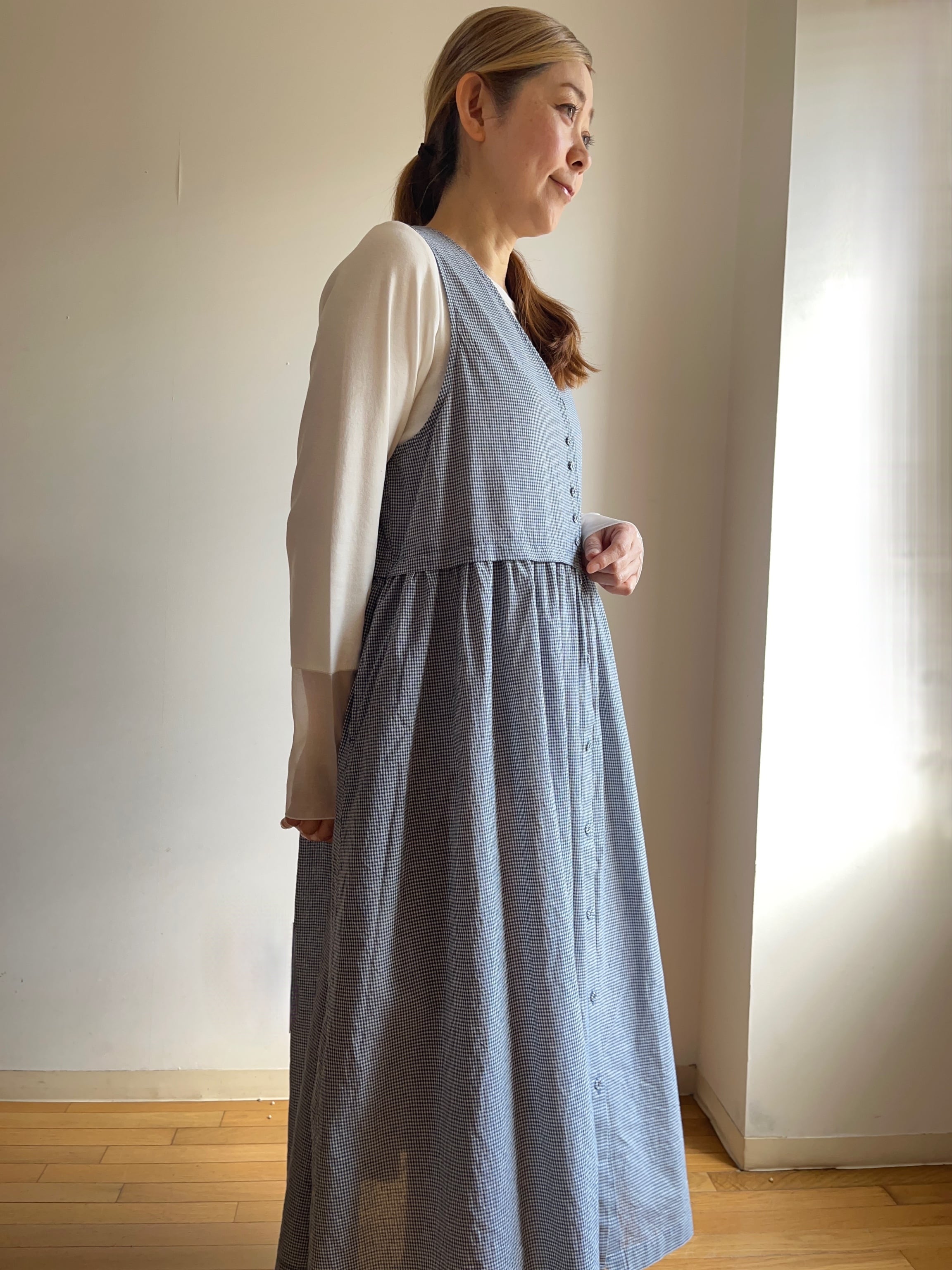 サラッとした軽さが特徴の、細かいギンガムチェック柄生地を使用しています。