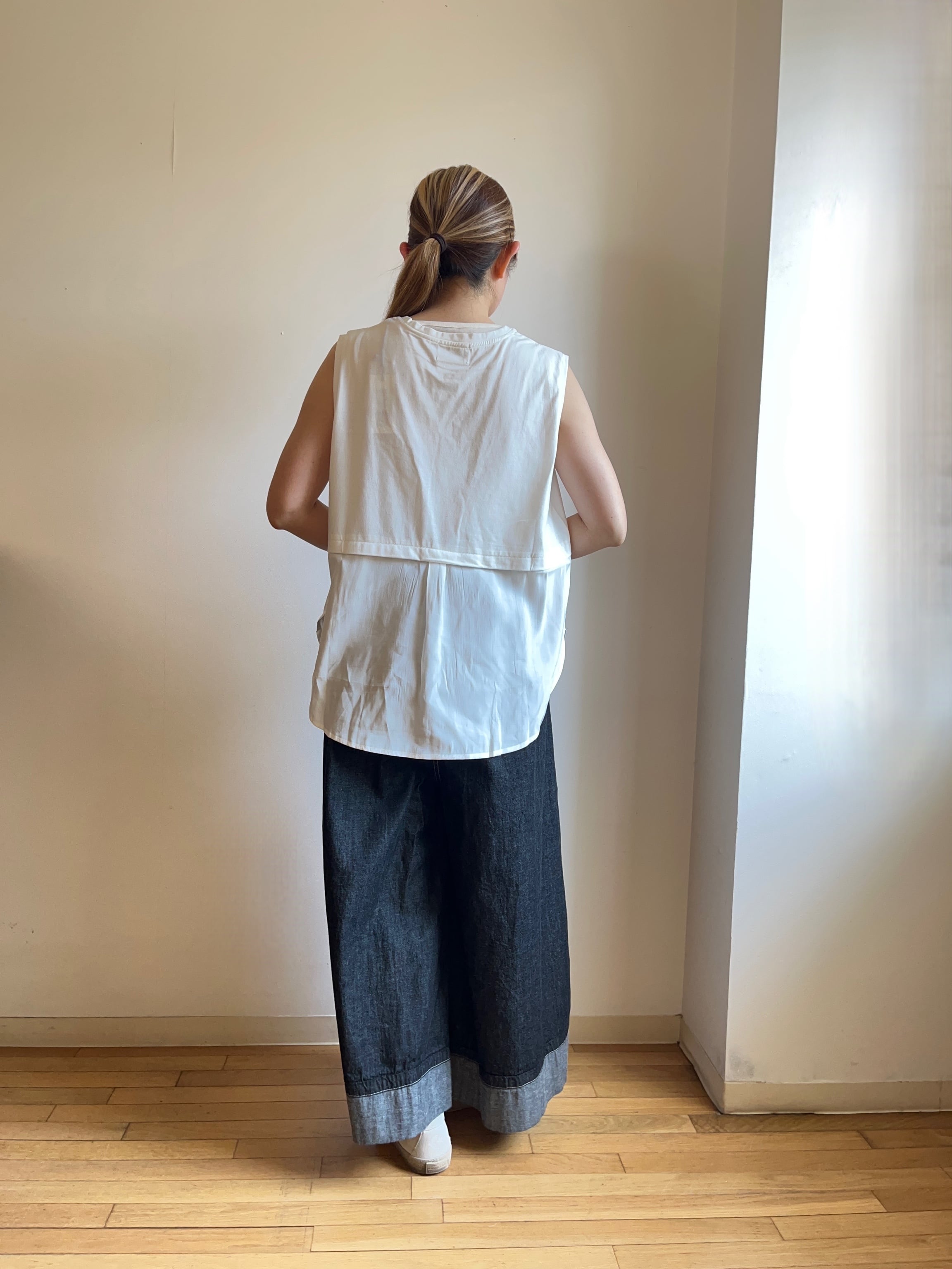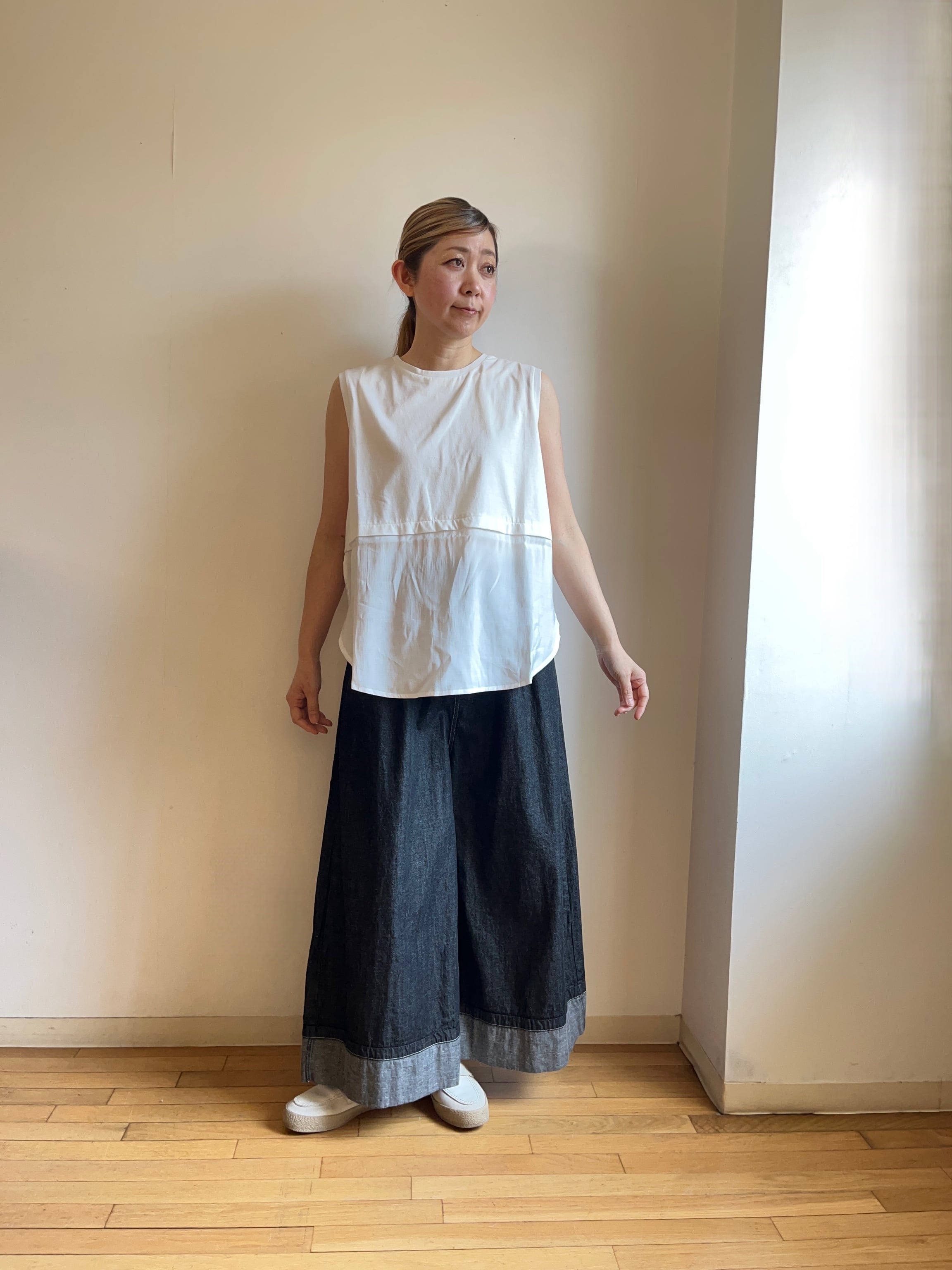 サラッとした軽やかな着心地が魅力の本体に、裾に透け感のある生地をプラスした、重ね着にも活躍するペチタンクトップが登場です。