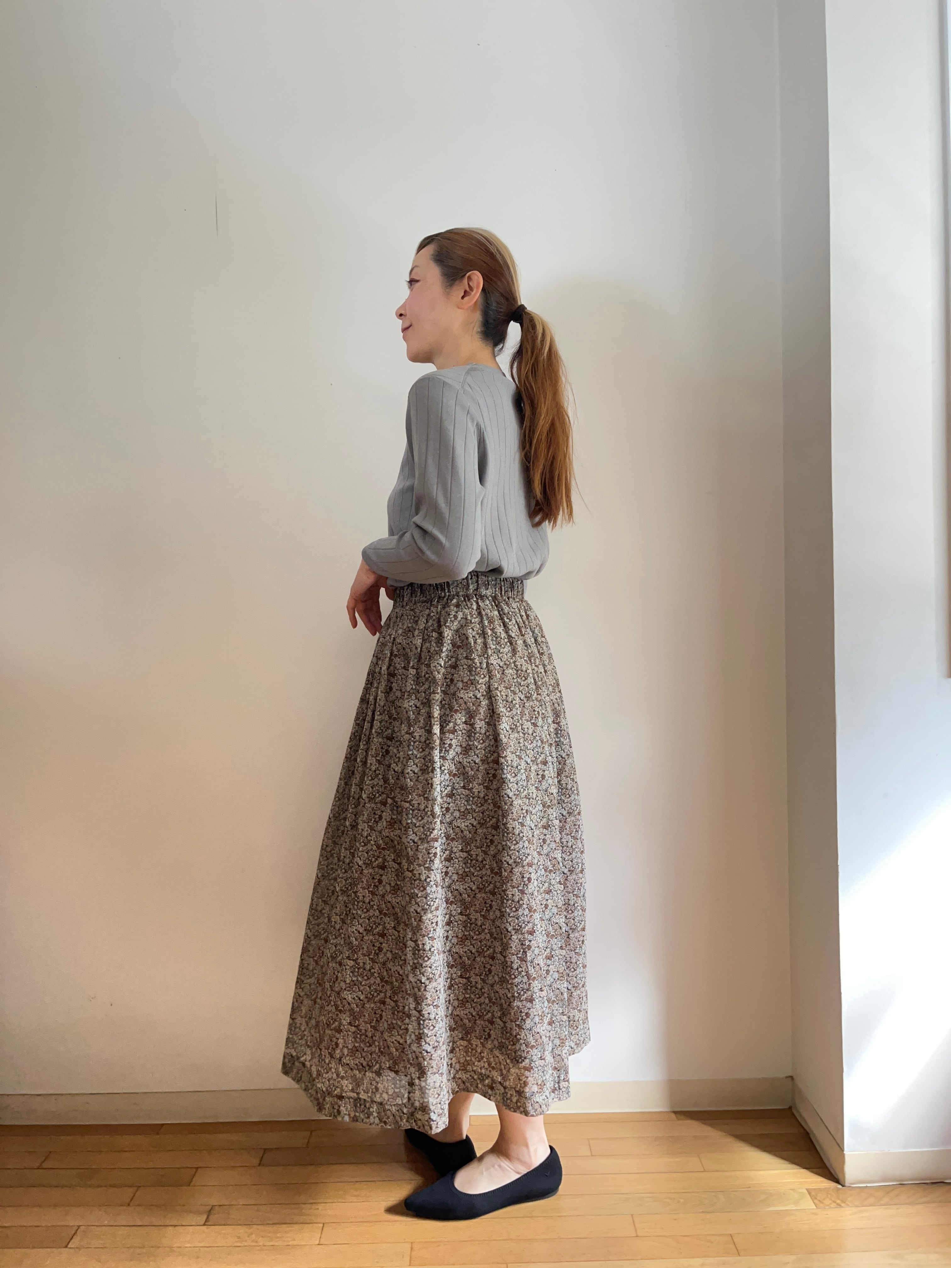 上品な透け感の涼しげで軽い、暑い時期にも履けるスカートです。