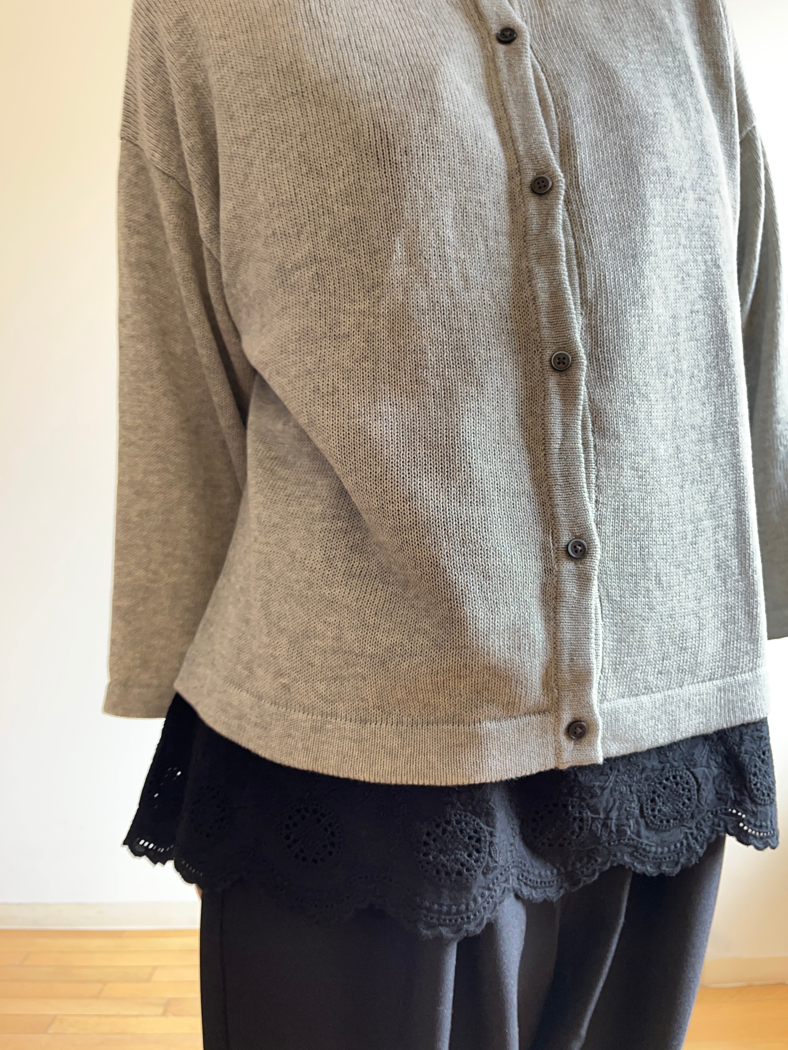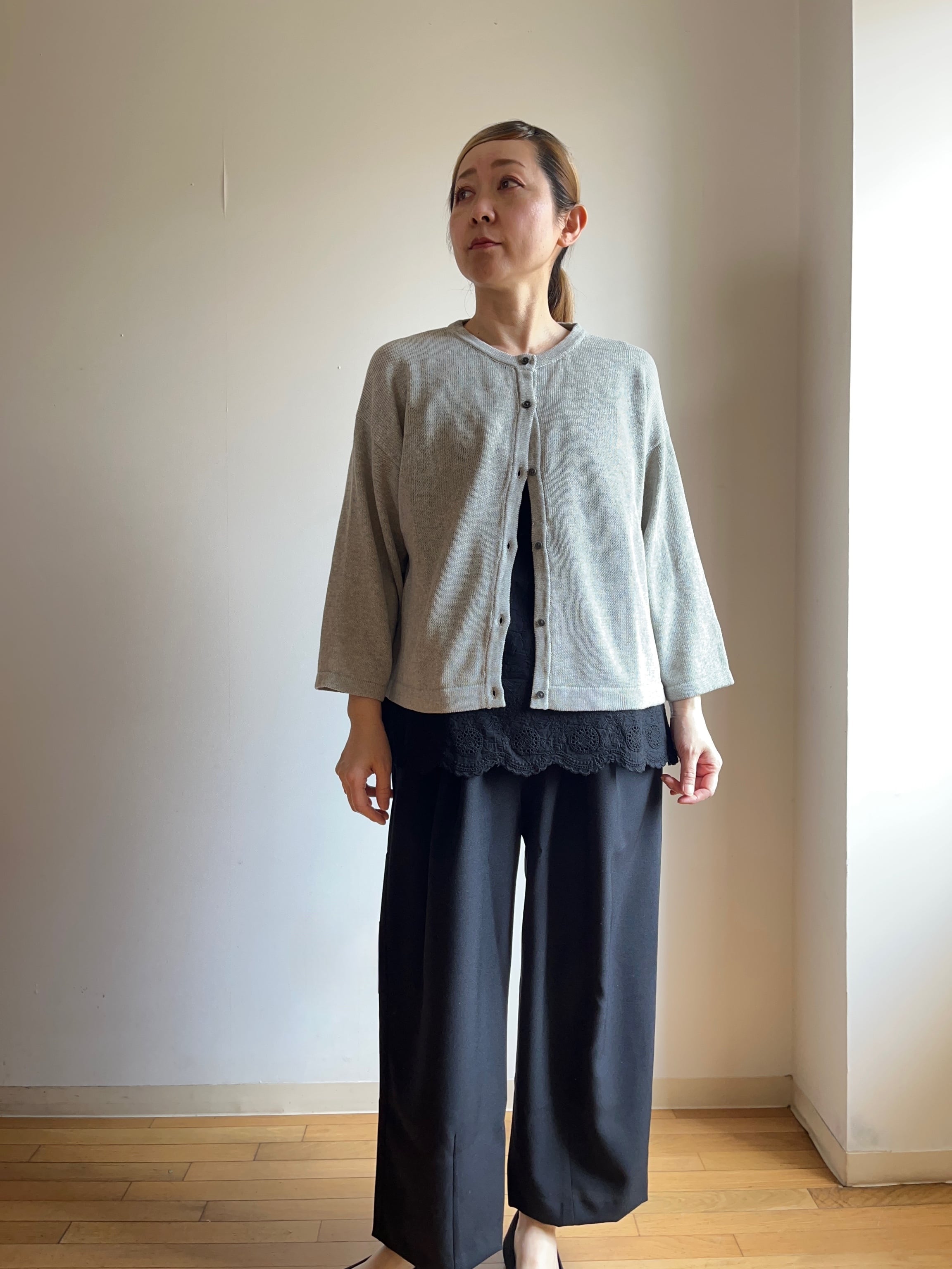滑らかな肌触りが魅力の強撚綿ニットカーデ。シンプルでありながら、洗練された印象を与えるデザインは、どんなスタイルにも合わせやすく、コーディネートを引き立てるアイテムです!