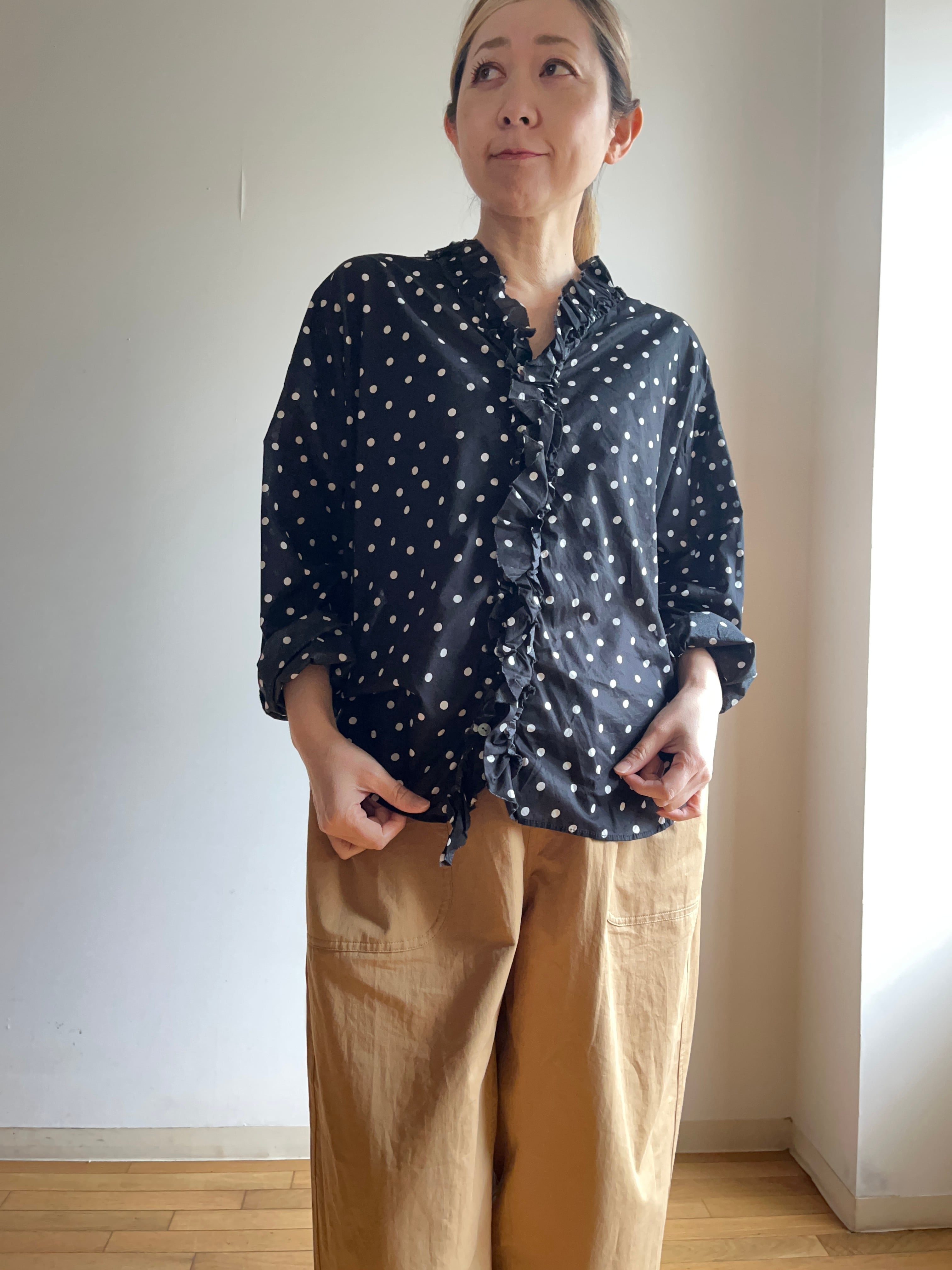 ランダムポルカドットフリルシャツ