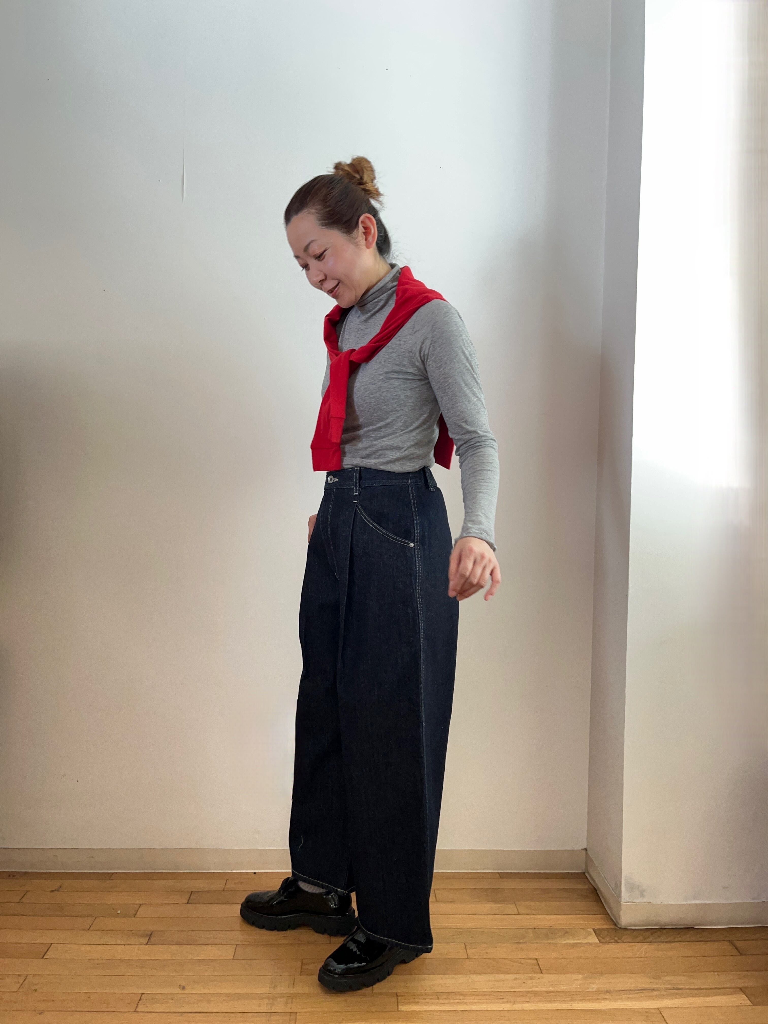 ウエストタック入りのワイドデニムは、トレンド感のあるデザインでおしゃれなスタイリングを楽しめるアイテムです。ウエスト部分に施されたタックが、ウエストラインをきれいに見せてくれます。程よいワイドシルエットで、足元から抜け感のあるスタイルが完成します。