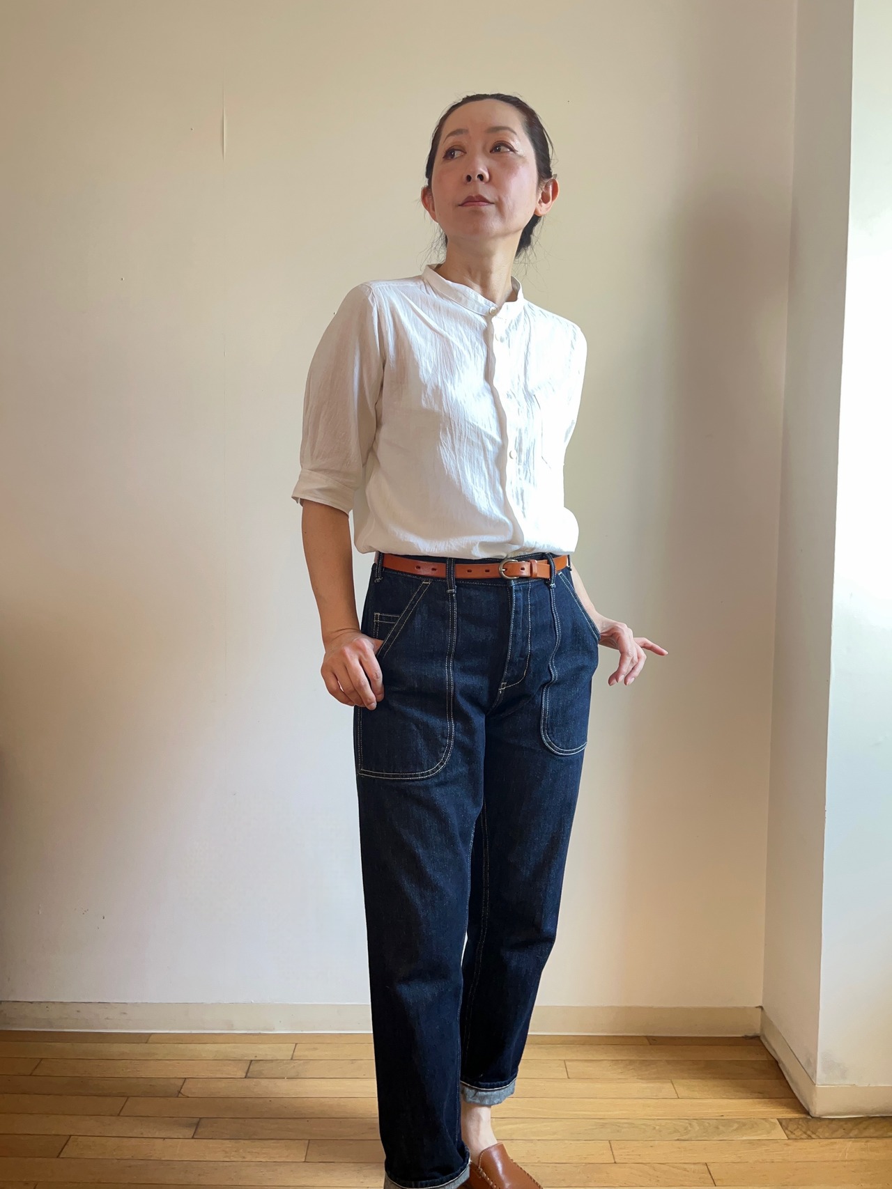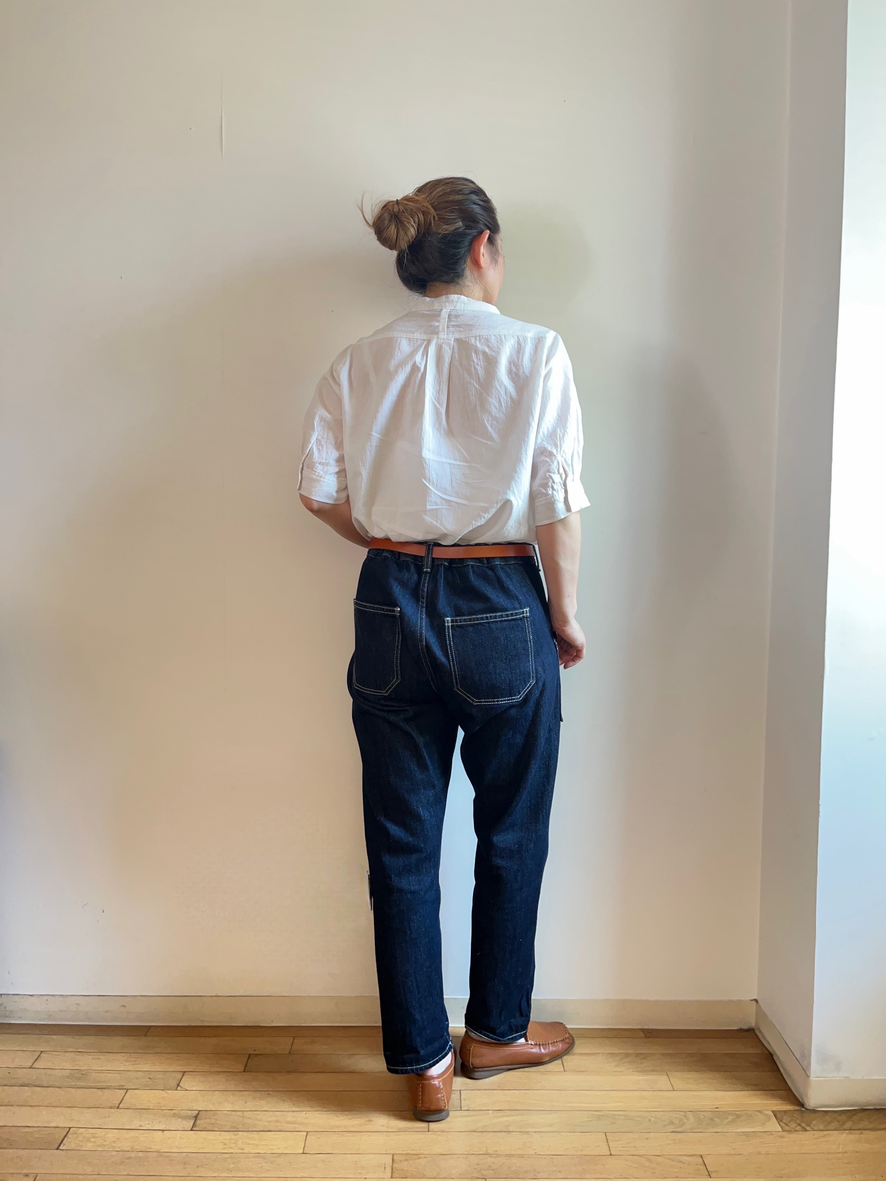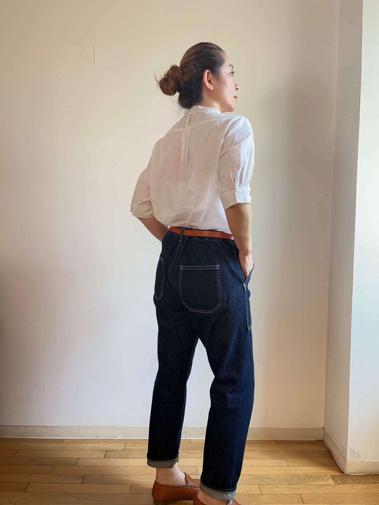 製品洗いを入れた大人っぽい仕上がりのINDIGOです。ワーク感のあるベイカーパンツながらポケットの角をカーブにすることでラフ感をプラス。