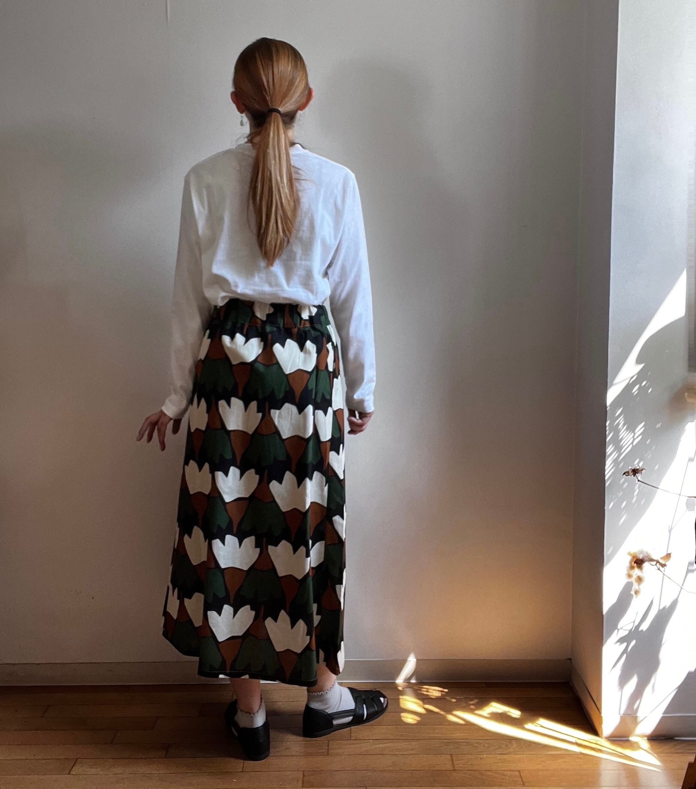 秋カラーの柄スカートは、この季節の装いにぴったりのアイテムです。深みのあるカラーリングと柄が、大人の女性にふさわしい上品さを演出してくれます。膝下のシルエットで、オフィスやデートなど様々なシーンで活躍してくれます。軽やかな素材で動きやすく、快適な着心地も魅力的。季節感を楽しむなら、この秋カラーの柄スカートがおすすめです。